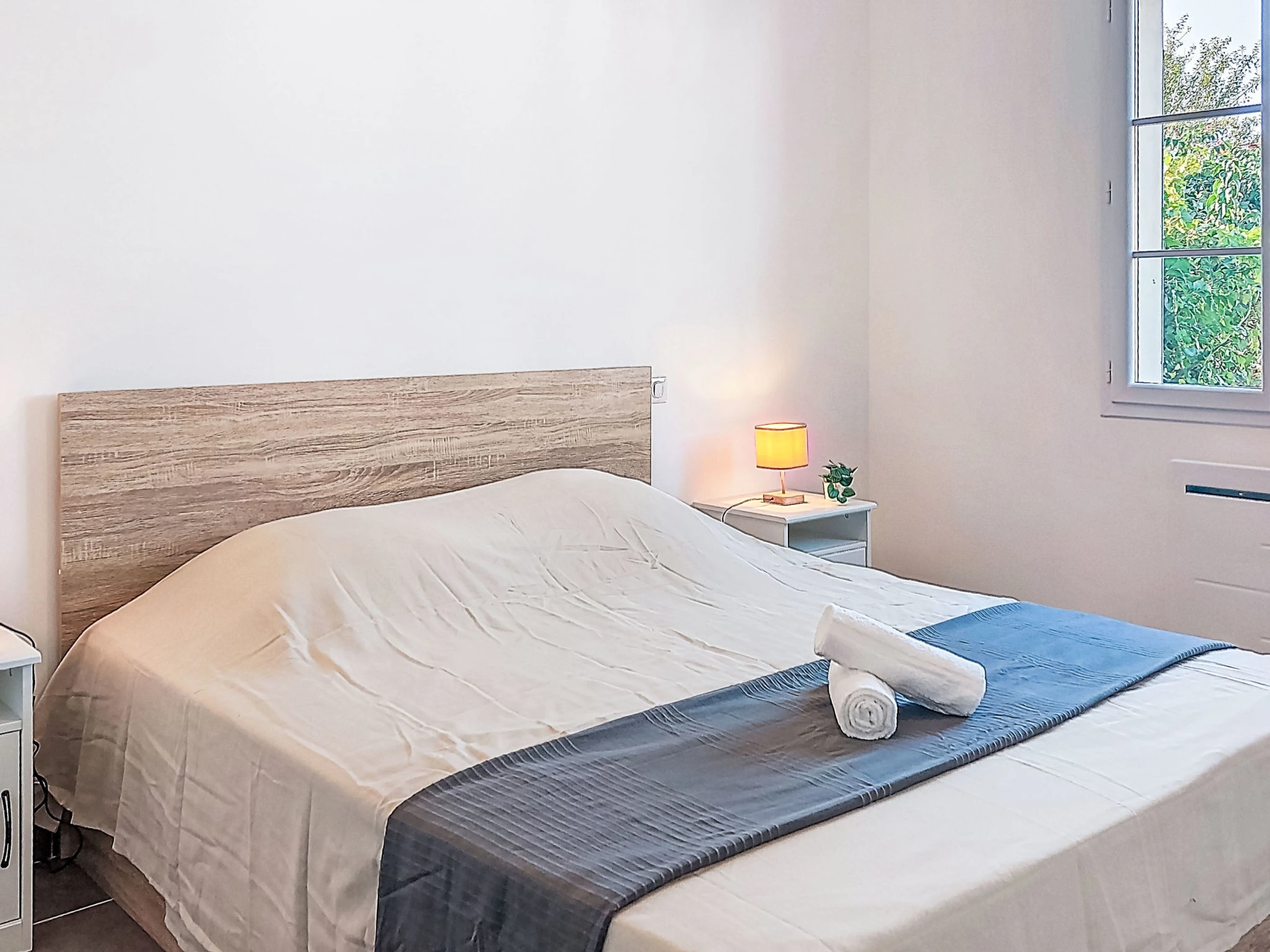"Les Loges", maison mitoyenne 4 pièces 90 m2. Aménagement agréable et moderne: grand séjour/salle à manger avec TV (écran plat). Sortie sur le jardin. 1 chambre avec 1 grand-lit (1 x 140 cm, longueur 190 cm). 1 chambre avec 1 grand-lit (1 x 160 cm, longueur 200 cm). 1 chambre avec 2 x 3 lits superposés (90 cm, longueur 190 cm). Cuisine ouverte (four, lave-vaisselle, 4 plaques à induction, grille-pain, bouilloire électrique, micro-ondes, congélateur). Sortie sur la terrasse. Bain/douche, WC séparé. Chauffage électrique, air-conditionné. Jardin 30 m2. Meubles de terrasse, barbecue. A disposition: lave-linge, sèche-cheveux. Internet (Connexion WIFI, gratuit). Place de parking (2 Voitures). Veuillez noter: maison non-fumeur. Maximum 1 animal/ chien autorisé. Détecteur de fumée. Annonce d'un particulier (art 155, IV du CGI). [hidden]