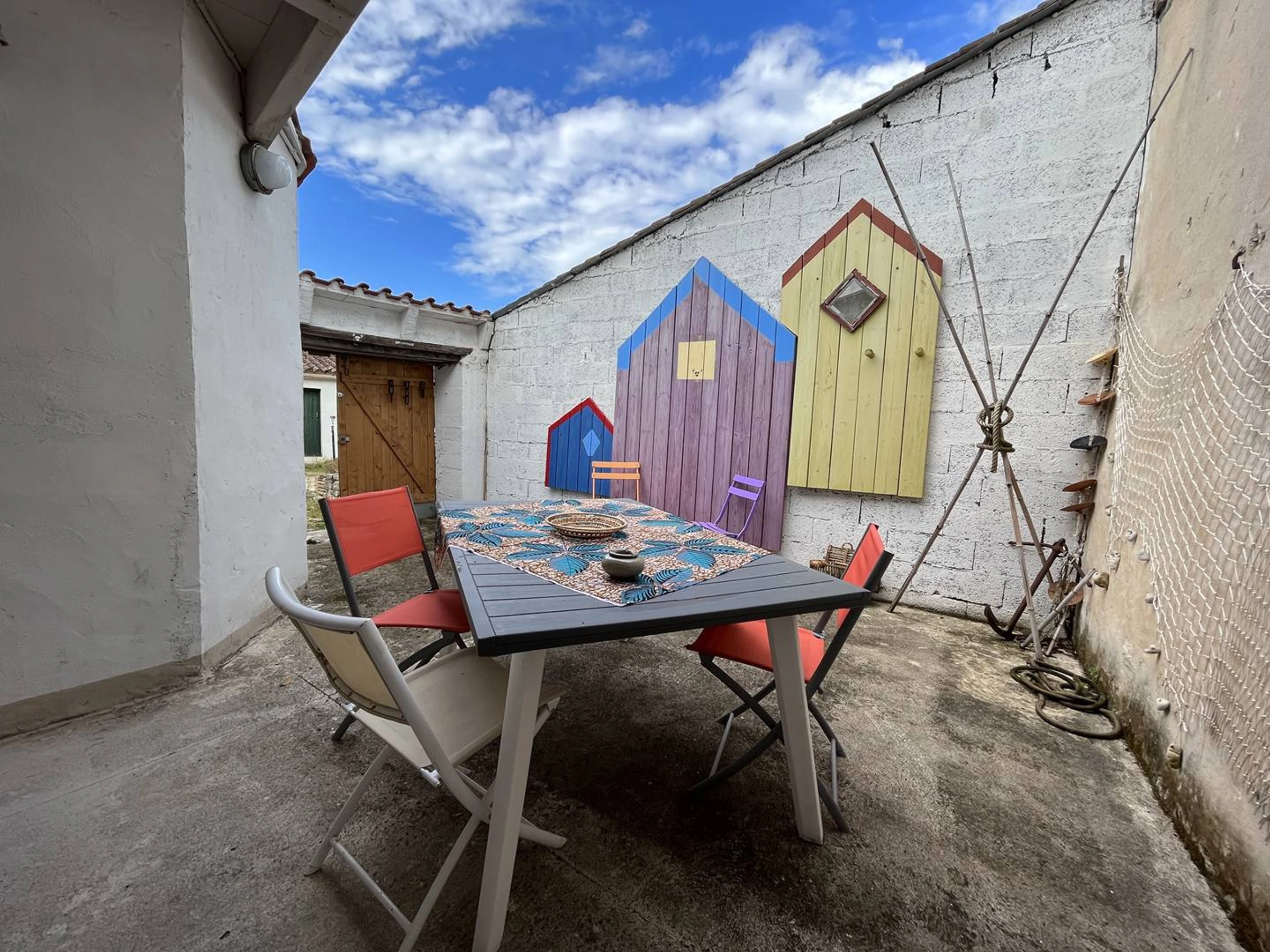 Vaste demeure typique oléronnaise en plein centre bourg. Elle se compose au rez de chaussée d'un grand séjour avec cuisine équipée ouverte sur espace salle à manger, d'un cellier avec lave-linge, d'un toilette indépendant, d'une salle d'eau avec douche à l'italienne. A l'étage, deux chambres avec lits 140, une troisième chambre avec un lit 90, et une quatrième chambre avec lit 90 et clic-clac en 140. En extérieur, un chai non attenant fermé de murs, en partie couvert, avec salon de jardin et barbecue. Une place de parking devant le chai.