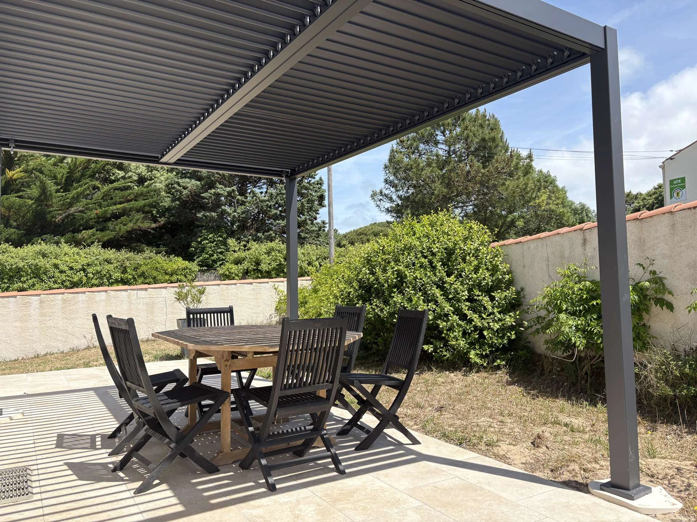 Jolie maison de vacances, dans une impasse au calme, se composant d’une pièce à vivre avec coin salon et cuisine ouverte sur le séjour, d’une première chambre deux couchages (140), d’une seconde chambre deux couchages (140), d’une troisième chambre quatre couchages (140 + lits superposés 90), d’un WC indépendant et d’une salle d’eau avec douche et WC, d’un garage à usage de cellier avec lave-linge. A l’extérieur, jardin clos avec terrasse, mobilier de jardin, stationnement sur le terrain.