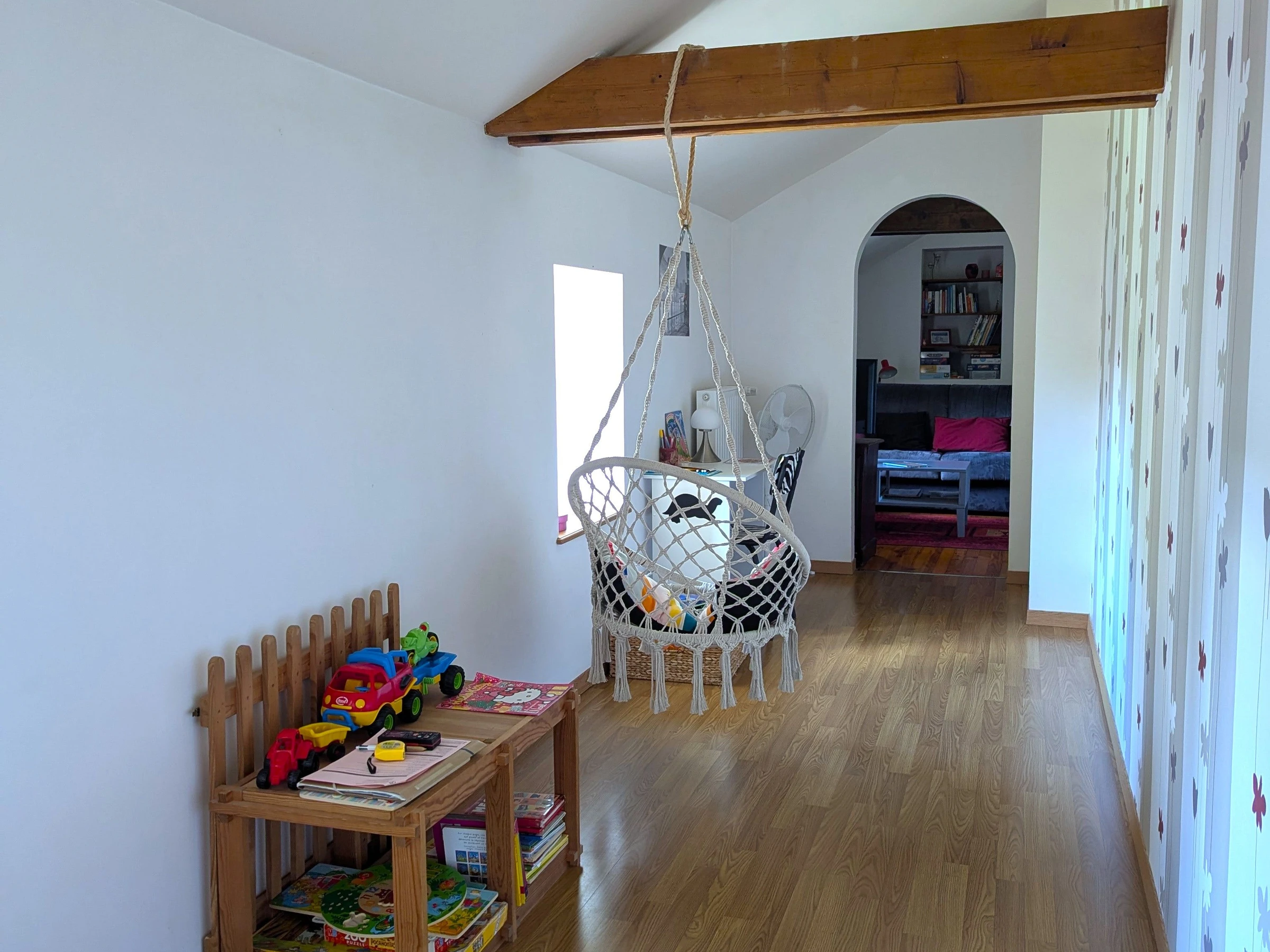 Équipement bébé : lit, draps, chaise haute, table à langer, poussette double, baignoire, cosy, vaisselle, réducteur WC, transat, porte bébé, barrières sécurité, vélos, jouets, livres, cheval bascule et jeux divers extérieur et intérieur.