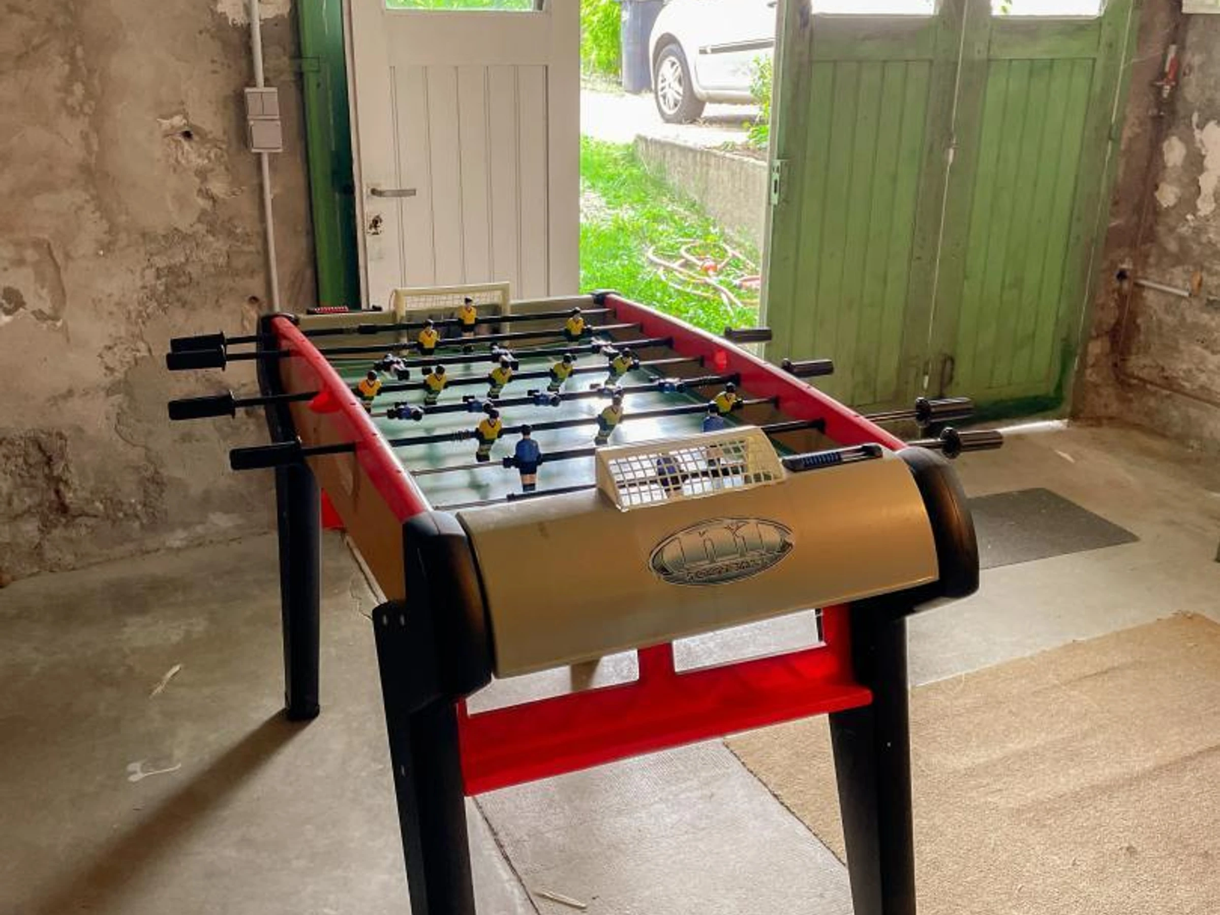 À l'extérieur : Parking privatif. Sous-sol pour stockage vélos, avec babyfoot.Jardin indépendant clos. Salon de jardin.