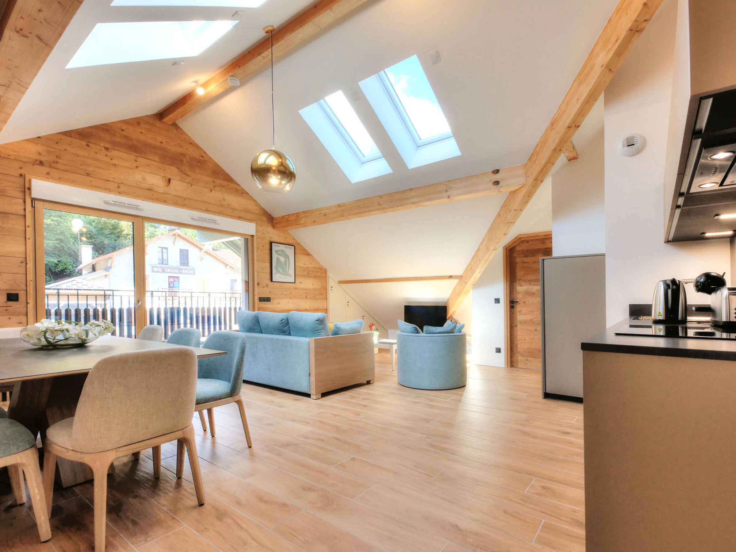 Cet appartement, perché au dernier étage d’une résidence élégante et situé à deux pas des télécabines, est pensé pour accueillir confortablement toute la famille. Vous pourrez rejoindre facilement les remontées mécaniques pour profiter pleinement des pistes de ski en hiver ou des sentiers de randonnée en été. En fin de journée, profitez de l’ambiance chaleureuse du centre-ville, admirez la vue et savourez un véritable moment de détente.