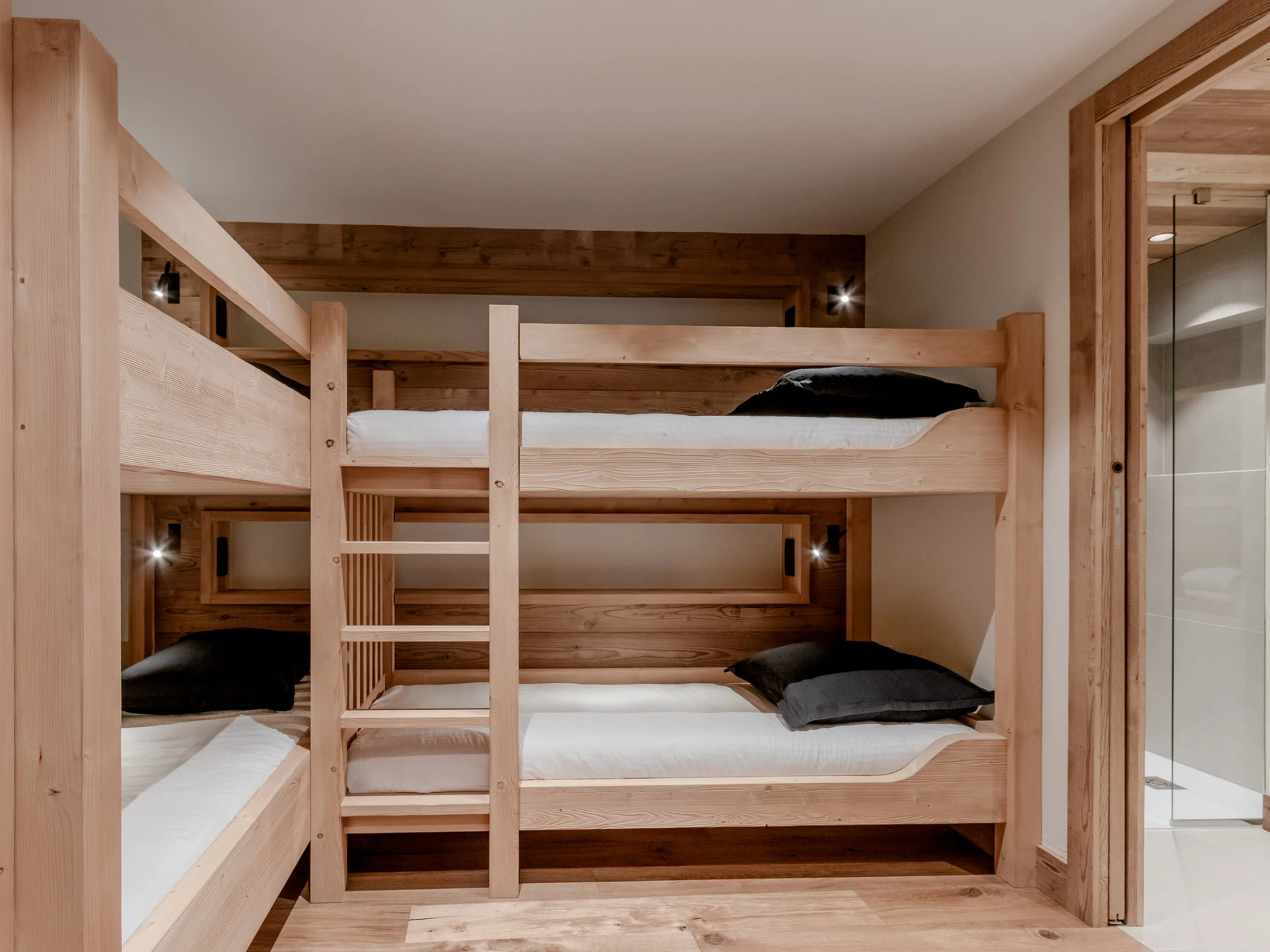 - Une chambre pour 4 personnes avec 2 lits superposés et se salle de douche (lits en 90x190).
