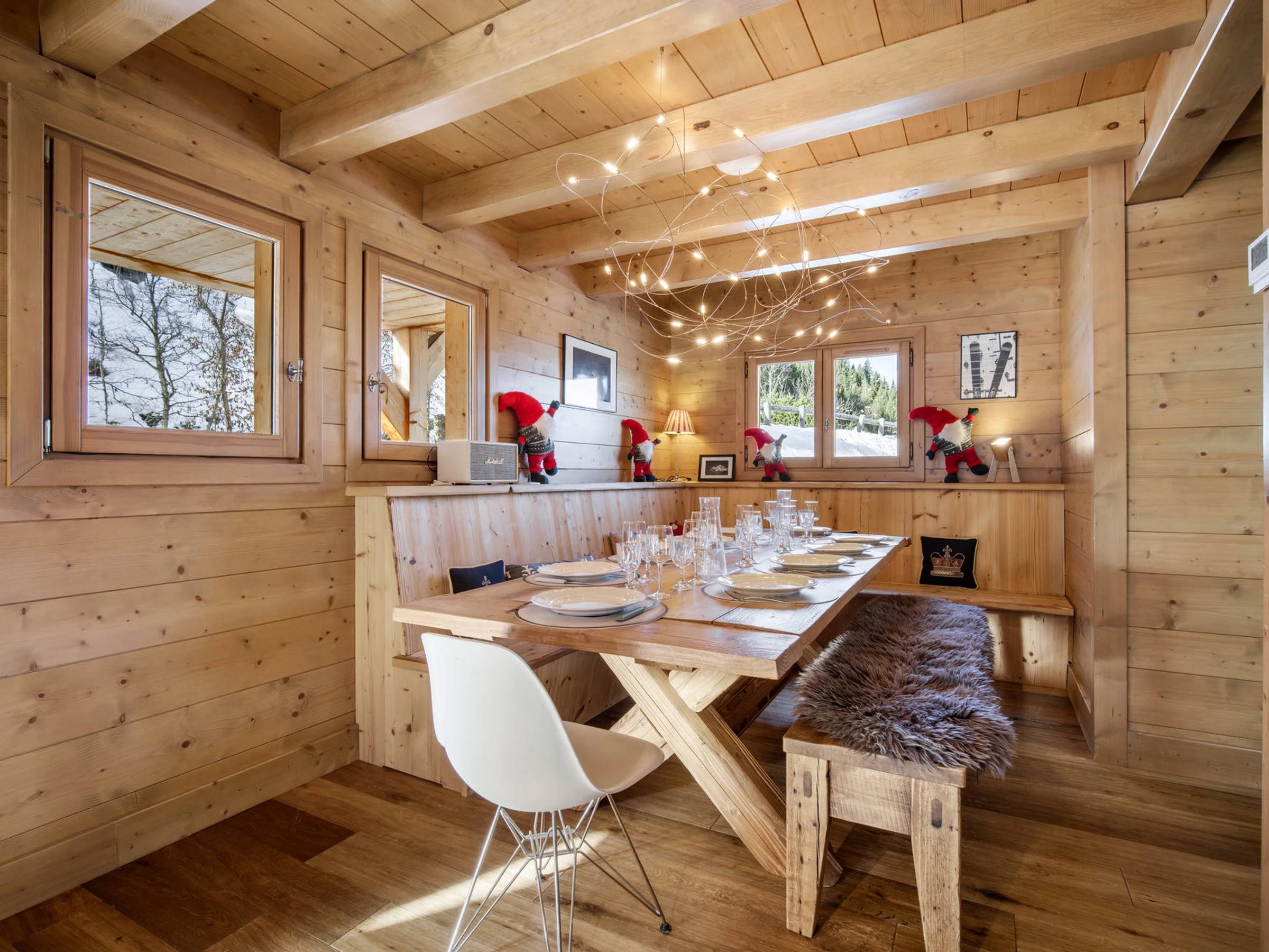 Découvrez un chalet d’exception idéalement situé près du centre du village de Saint-Nicolas de Véroce, à quelques pas d’un télésiège offrant un accès direct au domaine skiable Evasion Mont-Blanc. Ce bien de prestige, parfaitement équipé, a été pensé pour vous offrir des séjours d’exception. Il séduit par sa vue panoramique à couper le souffle sur le massif du Mont-Blanc, son jacuzzi privatif accessible depuis la terrasse et sa somptueuse cheminée centrale à 360°, véritable pièce maîtresse de l’espace de vie.
