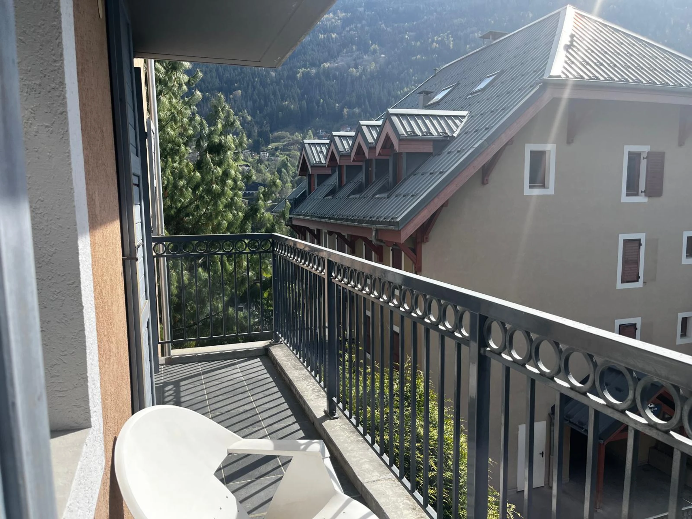 - Balcon avec table et chaises offrant une vue imprenable sur les montagnes