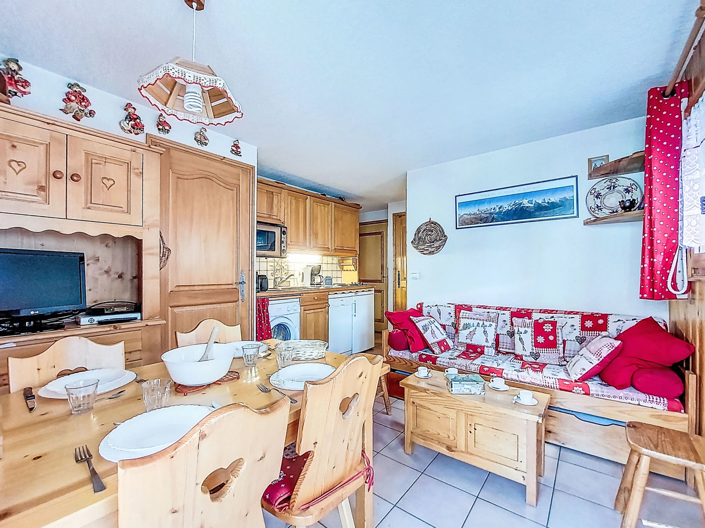 "Jardins Alpins", apt 2 pièces 32 m2 au 2ème étage. Séjour/salle à manger avec TV (écran plat). Sortie sur le balcon. 1 petite chambre avec 1 grand-lit (1 x 140 cm, longueur 190 cm). Cabine avec 1 x 2 lits superposés (80 cm, longueur 190 cm). Cuisine ouverte (4 plaques de cuisson, four, lave-vaisselle, grille-pain, bouilloire électrique, cafetière électrique, Capsules pour machine à café (nespresso) (NON INCLUSES), appareil à raclette). Salle de bains, WC séparé. Chauffage électrique. Petit balcon, situation nord-ouest. A disposition: lave-linge. Internet (Connexion WIFI, gratuit). Garage No 4 (1 Voiture). Adapté(e) aux familles. Au lieu d'une chambre fermée, des espaces de couchage sont situés dans une zone ouverte (galerie, alcôve...).