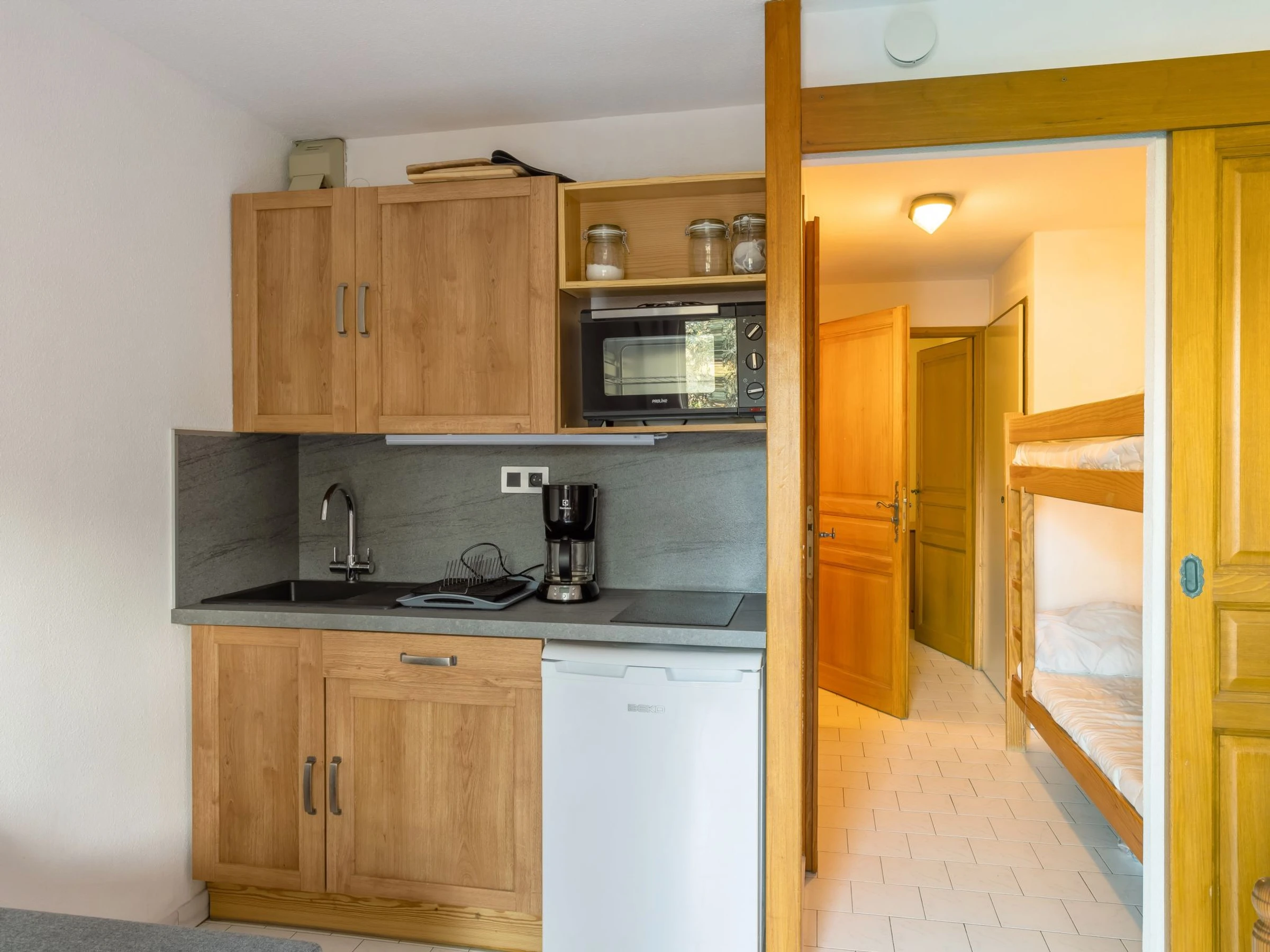 "Le Martagon 007", apt 2 pièces 26 m2, au rez-de-chaussée. Logement idéal pour 2 adultes + 2 enfants. Aménagement agréable: entrée avec 1 x 2 lits superposés (80 cm, longueur 190 cm). Séjour/salle à manger avec TV (écran plat). Sortie sur le balcon. 1 petite chambre avec 1 grand-lit (140 cm, longueur 190 cm). Coin cuisine (mini-four, 2 plaques vitrocéramiques, grille-pain, bouilloire électrique, cafetière électrique, combiné micro-ondes). Salle de bains, WC séparé. Chauffage électrique. Petit balcon 4 m2, situation ouest. Mobilier de balcon. Belle vue sur les montagnes. A disposition: Internet (Connexion WIFI, en sus). Veuillez noter: logement non-fumeur. TV seulement FR. Détecteur de fumée, sans ascenseur.