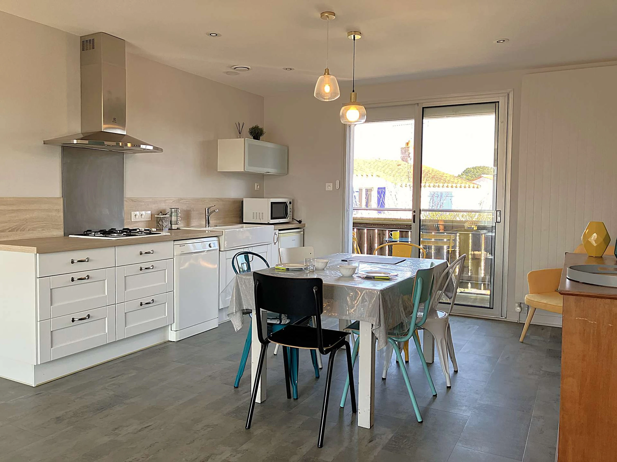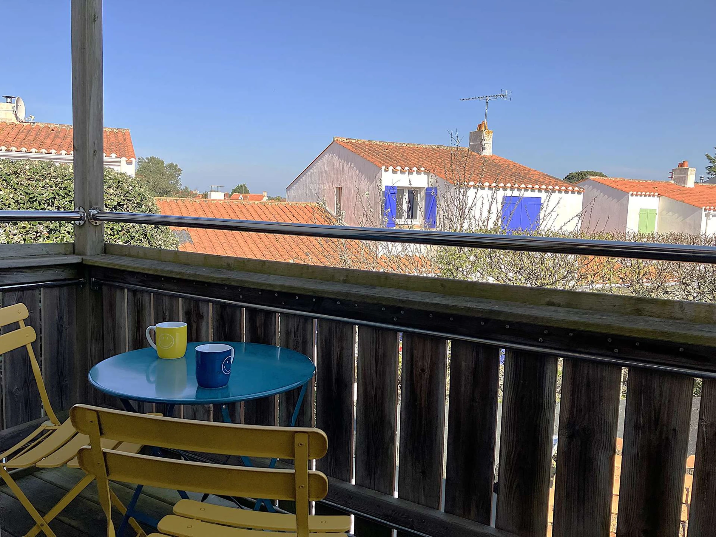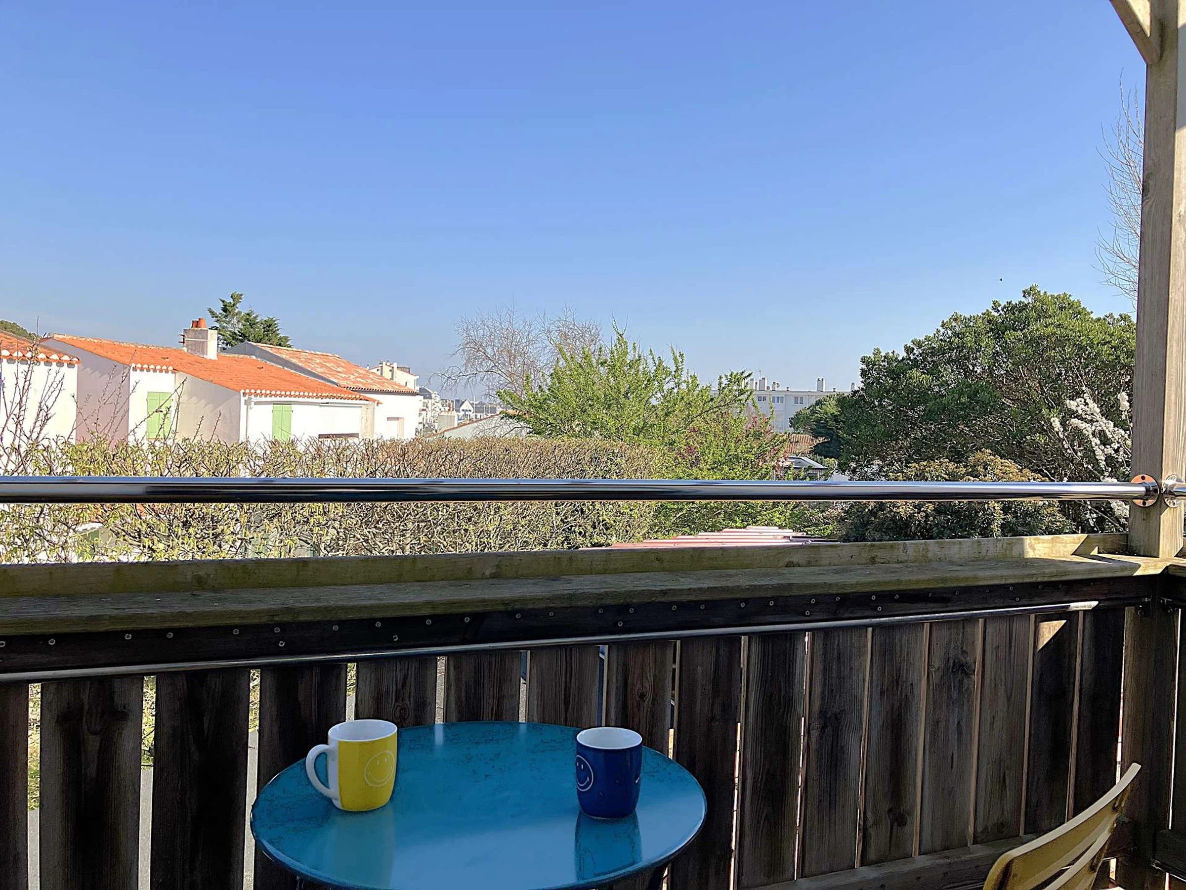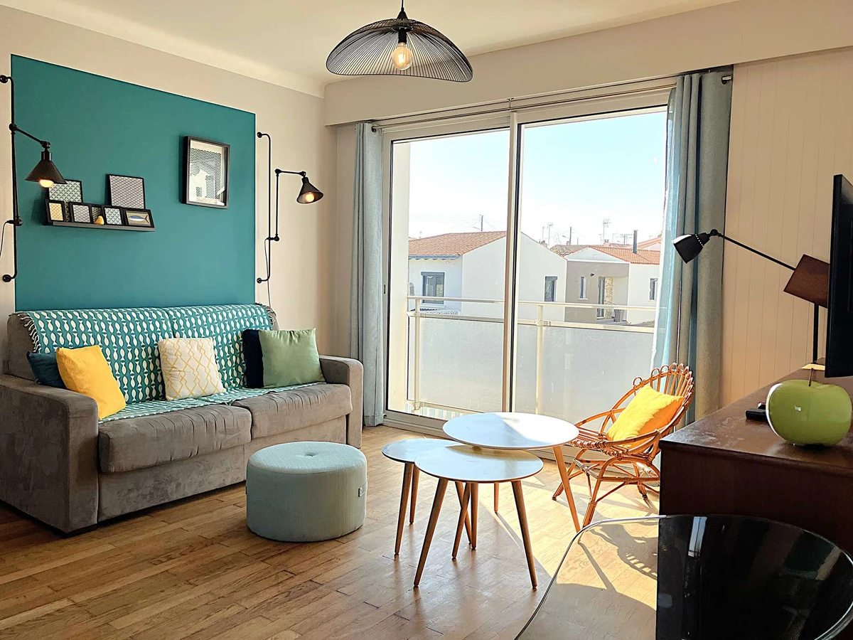 Située dans le quartier de Boisvinet, à deux pas de la plage, cette maison mitoyenne est assez particulière. L'ensemble est accueillant et la décoration est tendance. A l'étage, la pièce principale se distingue par son salon très cosy, sa cuisine et son espace repas, adaptés pour accueillir jusqu'à 3 personnes. Elle s'ouvre sur un petit balcon offrant une vue sur Croix de Vie. La chambre est indépendante et se compose d'un grand lit double. Pour accéder à la cour extérieure, sa terrasse et son cabanon, il faudra redescendre. La voie ferrée, tout proche, n'empêchera pas de profiter du calme du quartier. (Réf Crevette)
