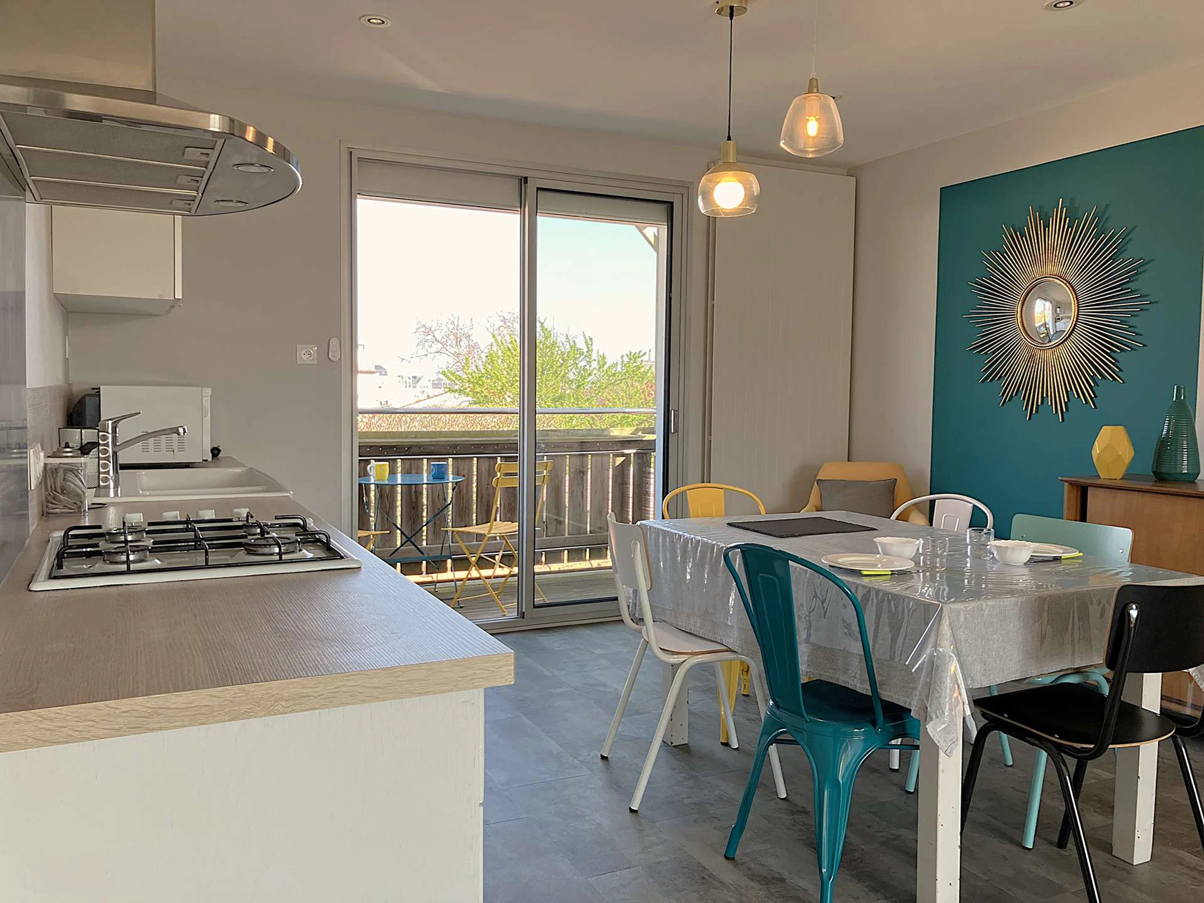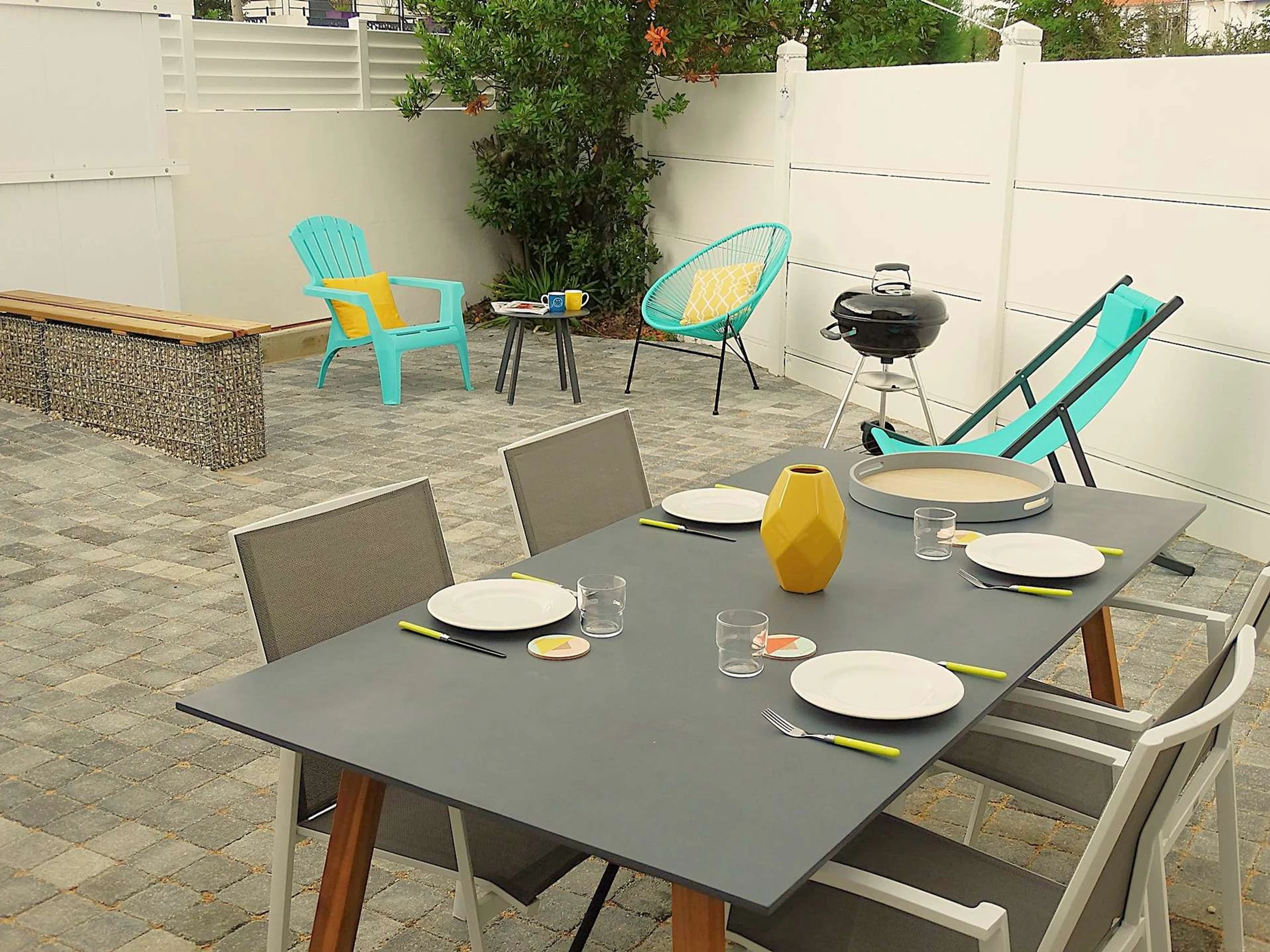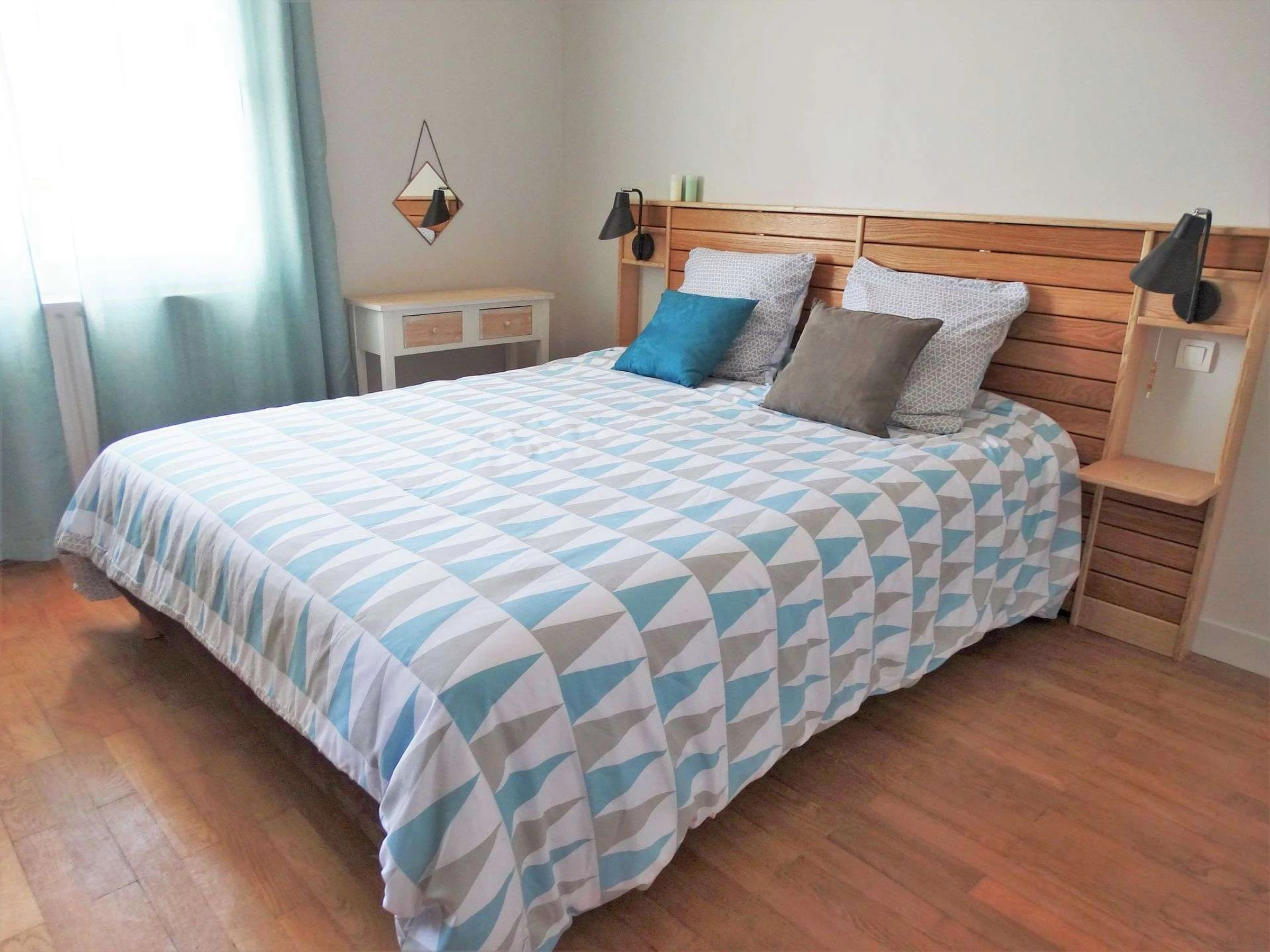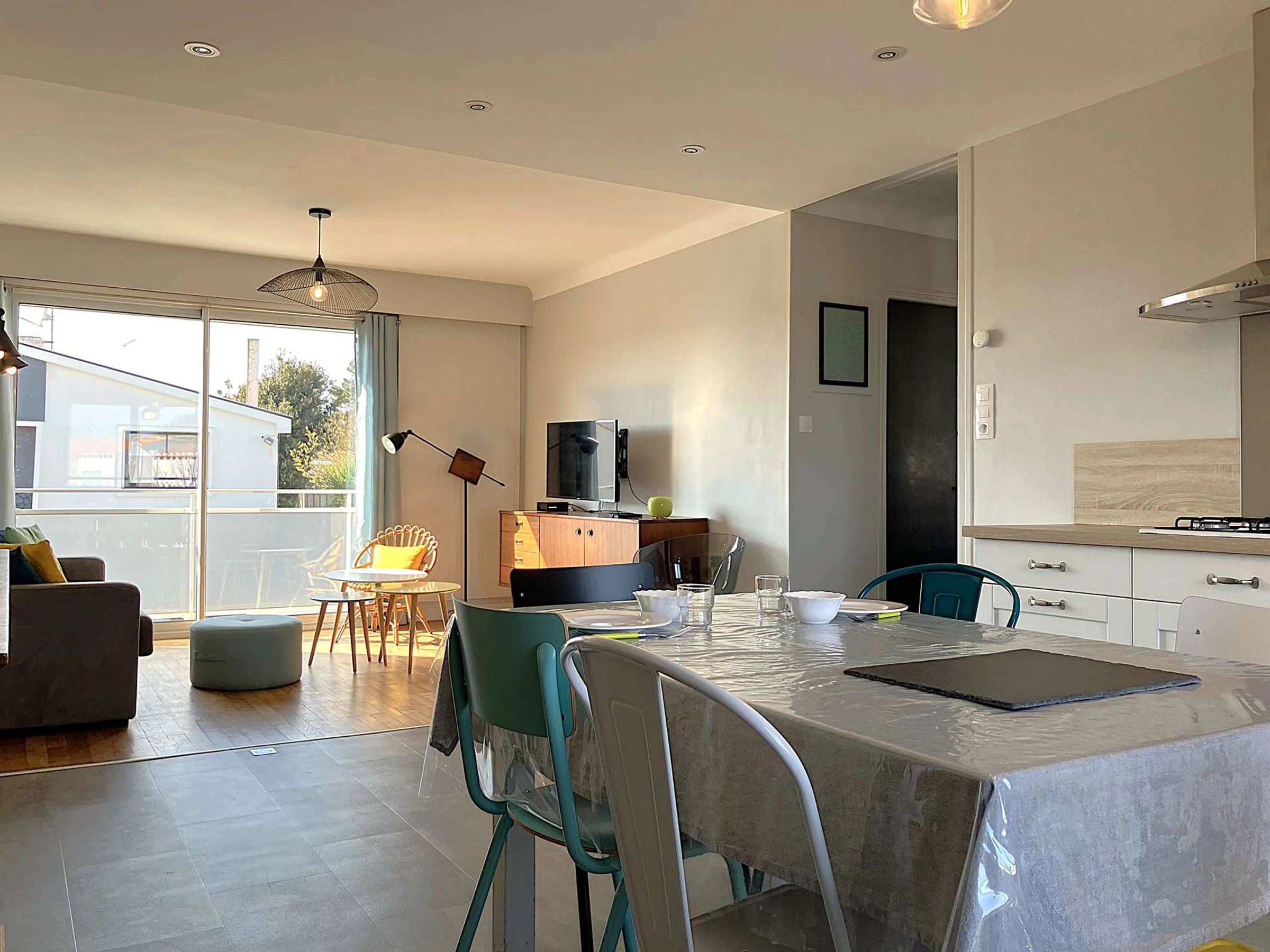 Située dans le quartier de Boisvinet, à deux pas de la plage, cette maison mitoyenne est assez particulière. L'ensemble est accueillant et la décoration est tendance. A l'étage, la pièce principale se distingue par son salon très cosy, sa cuisine et son espace repas, adaptés pour accueillir jusqu'à 3 personnes. Elle s'ouvre sur un petit balcon offrant une vue sur Croix de Vie. La chambre est indépendante et se compose d'un grand lit double. Pour accéder à la cour extérieure, sa terrasse et son cabanon, il faudra redescendre. La voie ferrée, tout proche, n'empêchera pas de profiter du calme du quartier. (Réf Crevette)