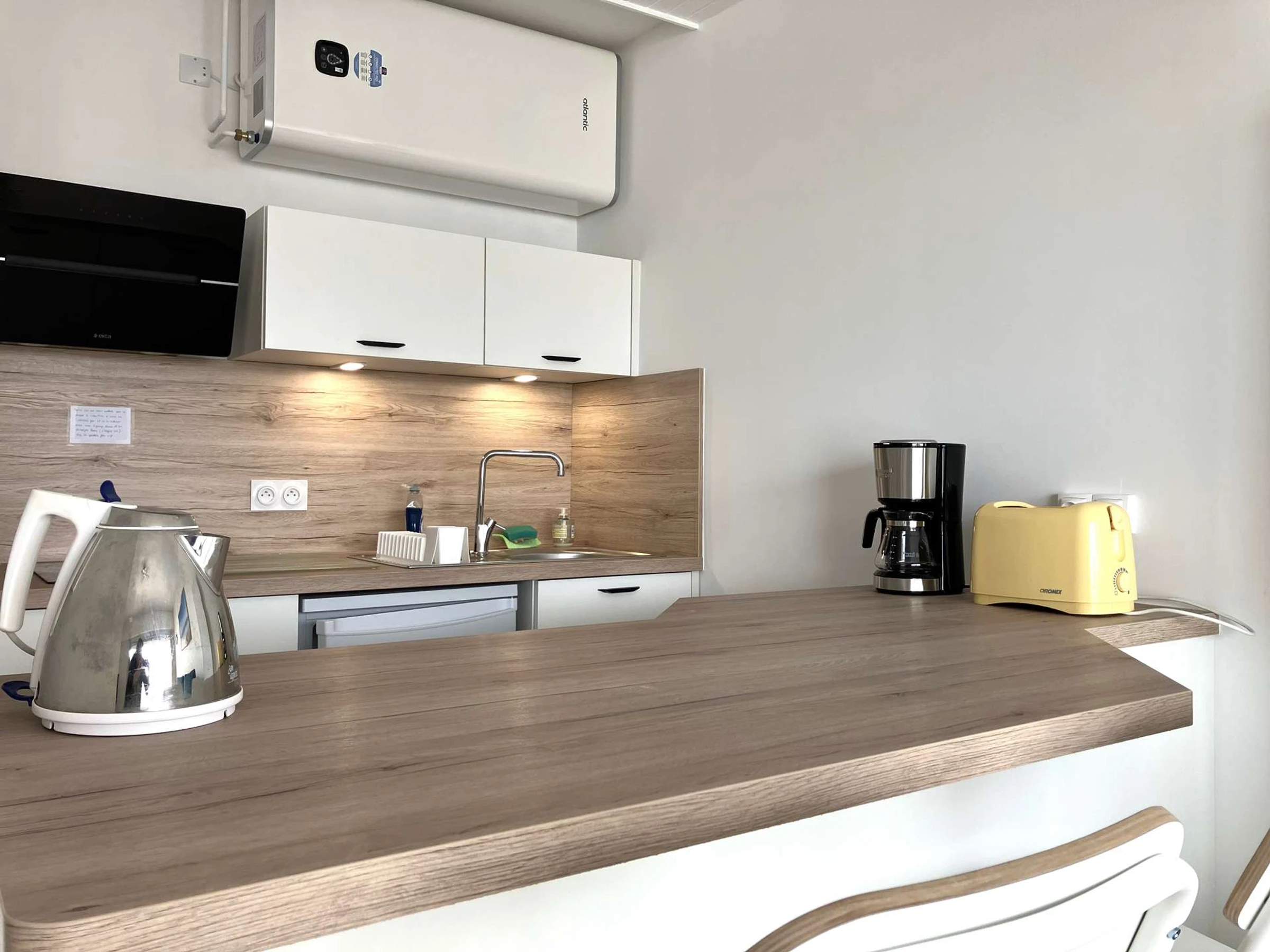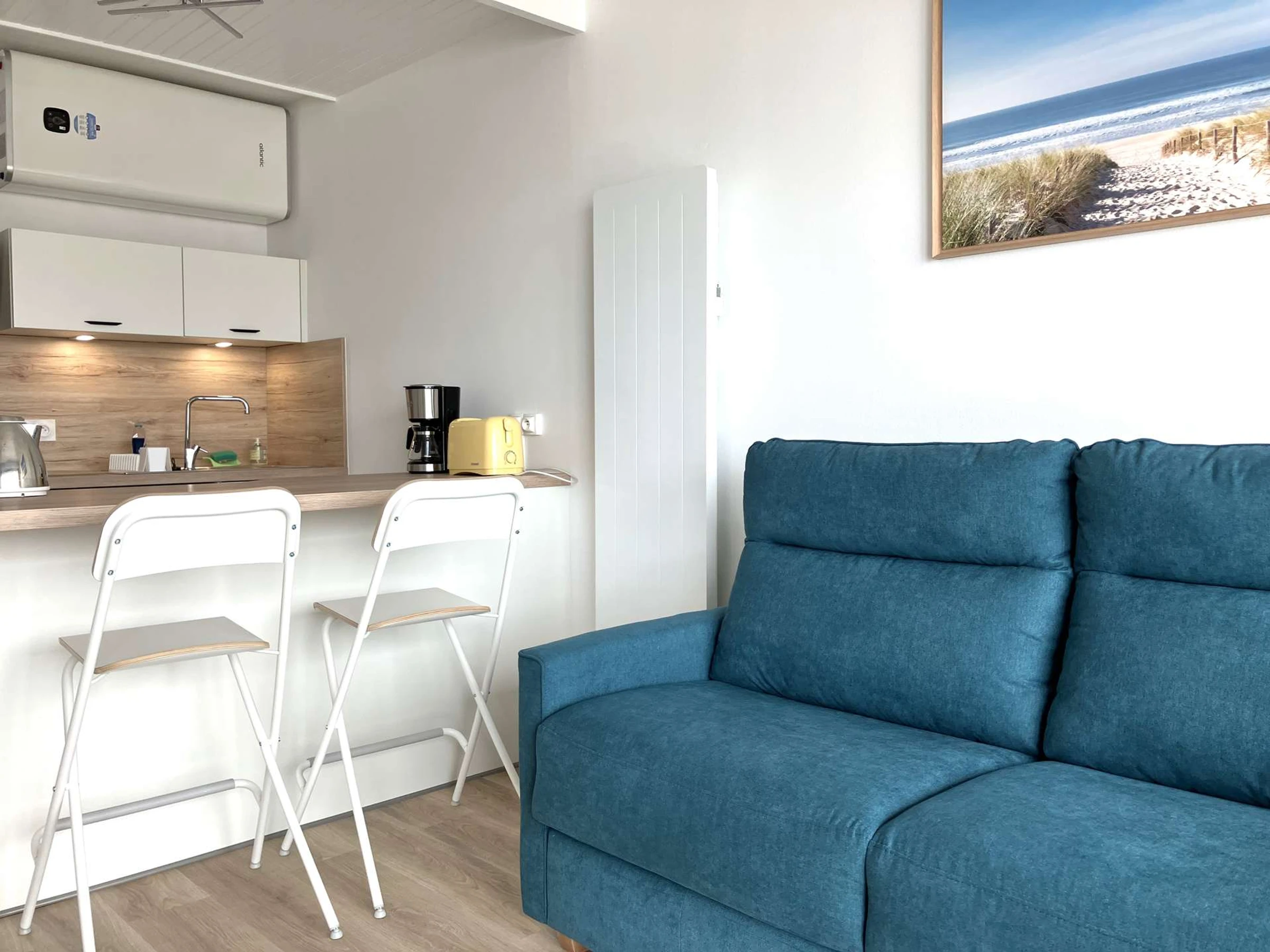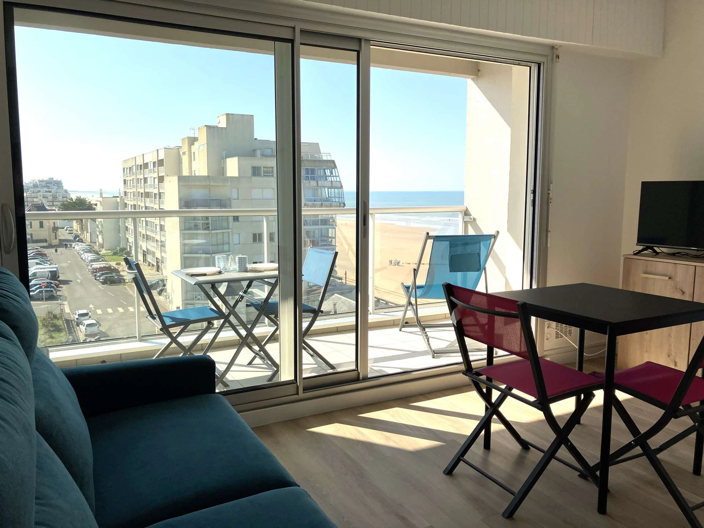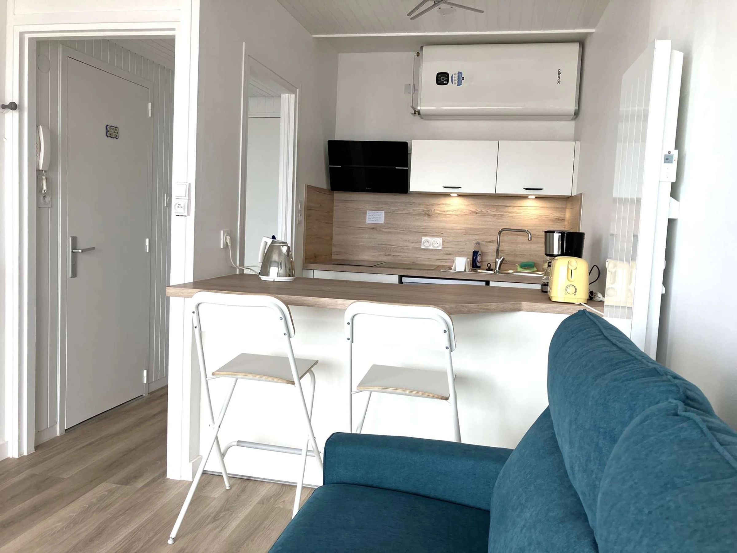 Ce studio rénové, situé au 5? étage d'une résidence récente sur le remblai de la Grande Plage, bénéficie d’un emplacement privilégié. Depuis le séjour et le balcon couvert, vous profiterez d’une belle vue mer latérale, véritable atout qui permettra de profiter de l'extérieur toute la journée. La pièce de vie se compose d'un canapé convertible confortable et le coin cuisine moderne est parfaitement aménagé pour répondre à tous vos besoins. Sur le remblai, tout en bas, les restaurants, commerces et animations estivales vous attendent pour des vacances sans voiture, les pieds dans l'eau.