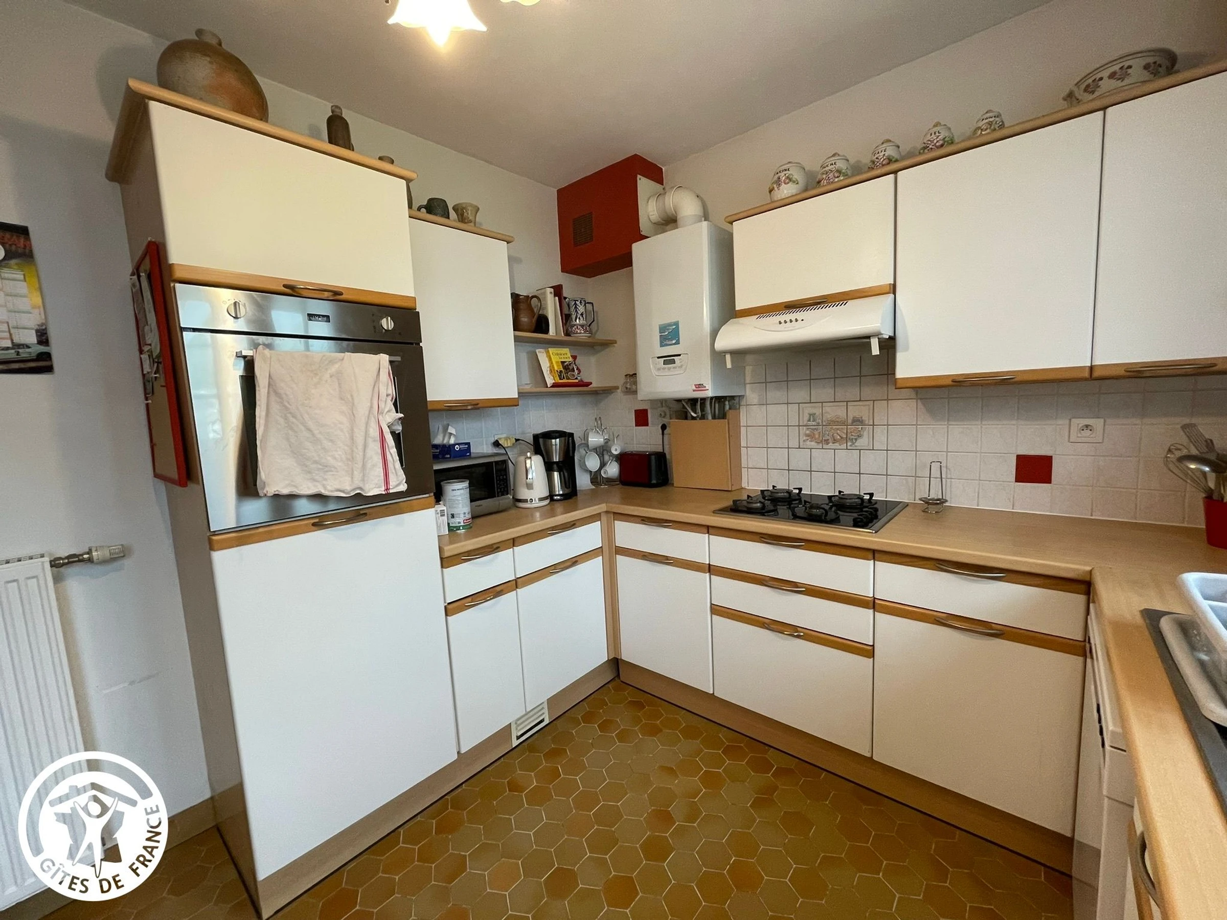 Vous disposerez également d’un garage à vélos avec lave-linge et sèche-linge, ainsi que d’un jardin clos avec salon de jardin, transats et barbecue. Un parking privé est situé devant le logement avec également la possibilité de se garer dans la cour. Le gîte est mitoyen avec une résidence secondaire.