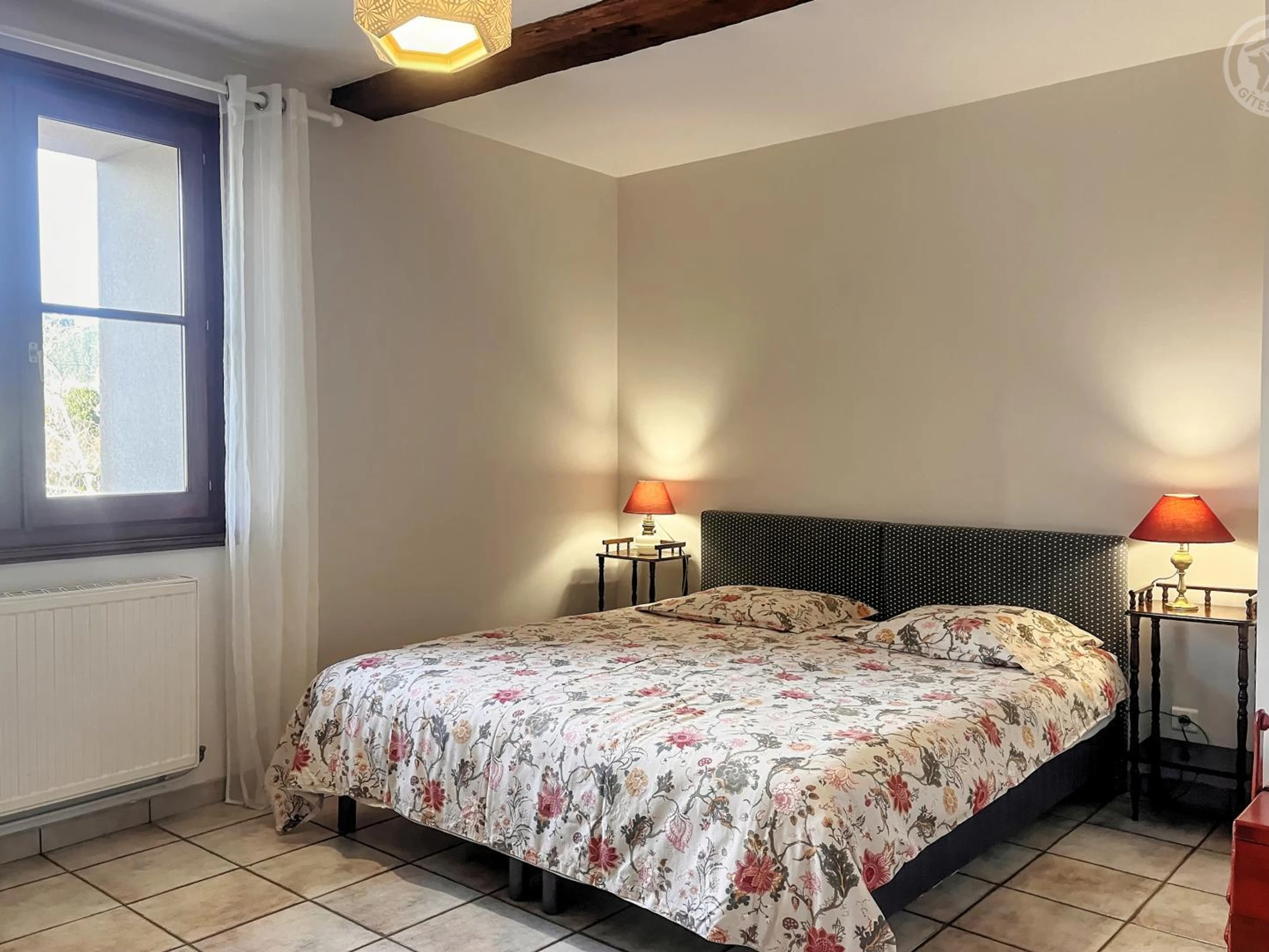 Gîte de 165m² (Rc + et.) comprenant une grande cuisine - salle à manger, une buanderie, un salon confortable, 3 chambres avec dressing commun, une salle de bain (baignoire et douche), 2 wc. Sur la propriété, il y a un 2ème gite (N°3201). Belle maison spacieuse avec murs en pierres et poutres apparentes, décoration raffinée mêlant mobilier ancien et objets design. Pour votre confort, les lits sont faits à votre arrivée . Vos devez apporter vos draps de bain et [hidden] hôtes sont priés de défaire les lits et plier les draps à leur départ. Piscine commune réservée aux seuls occupants (pas d'invités) des 2 gîtes ainsi qu'aux propriétaires... (environ de juin à septembre selon la météo). Cour gravillonnée et espaces verts privatifs. salon de jardin et parasol, barbecue.