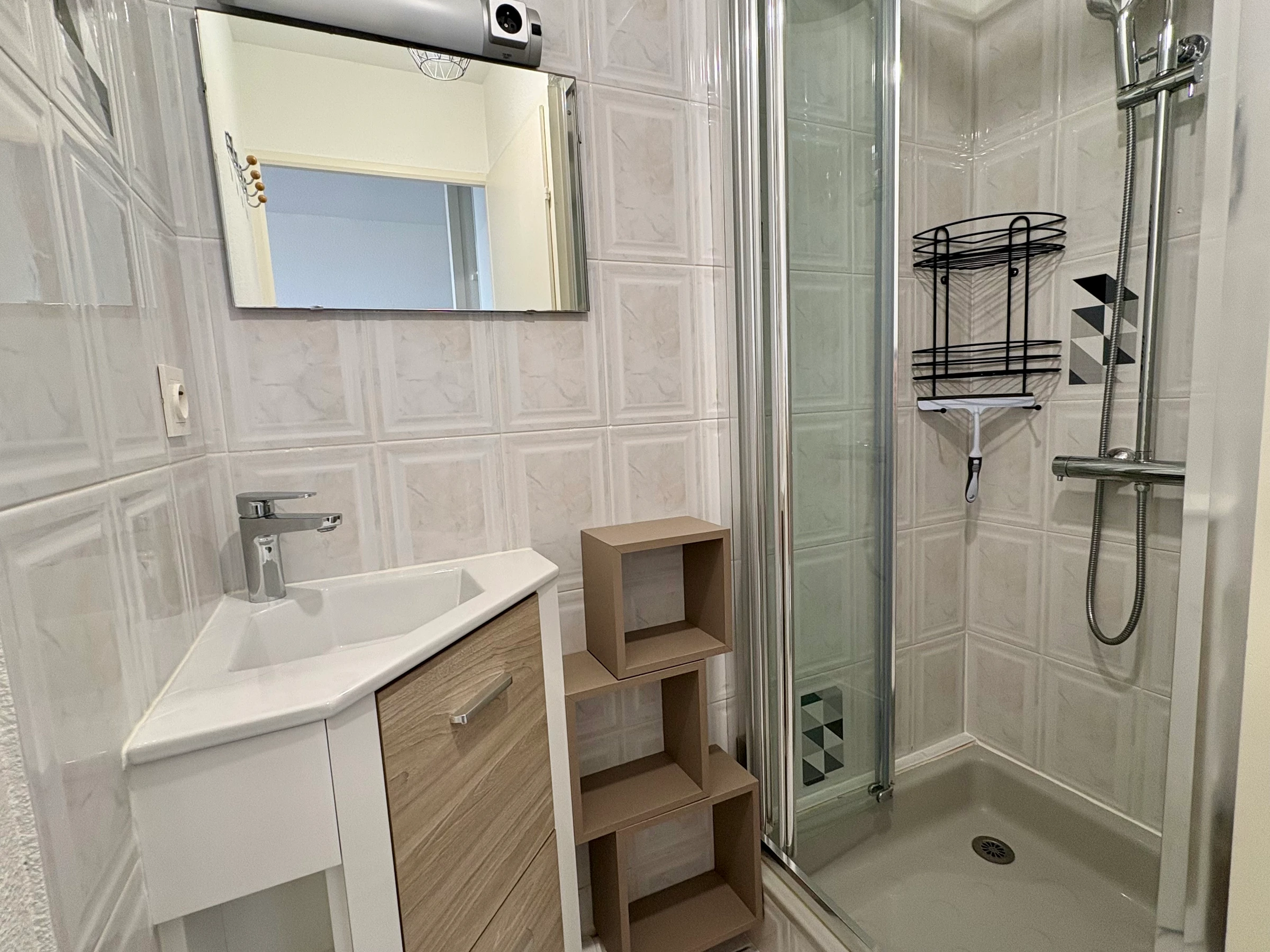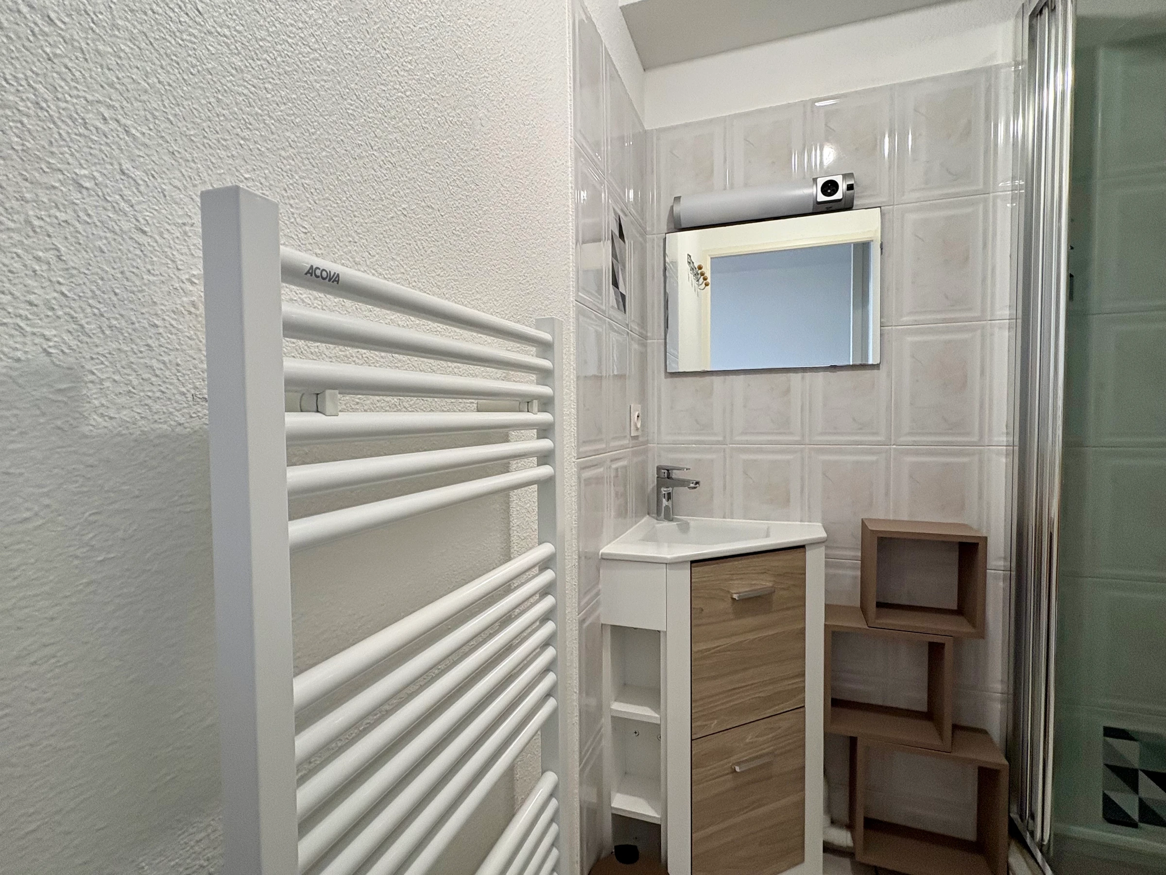 - Salle eau : vasque sur meuble - douche cabine - LAVE-LINGE - sèche serviette