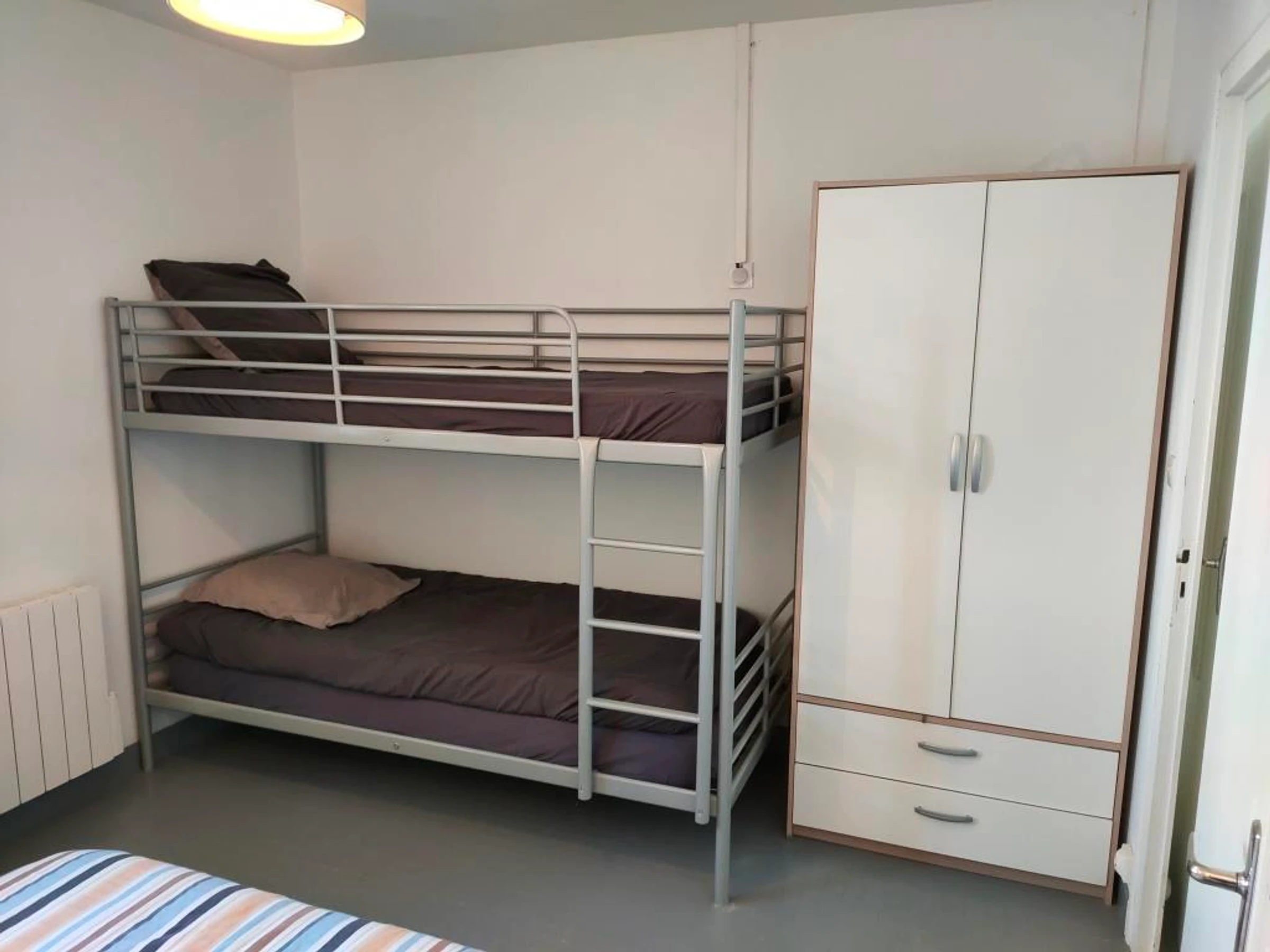 une chambre composée d'un lit en 140 et de deux lits en 90 superposés
