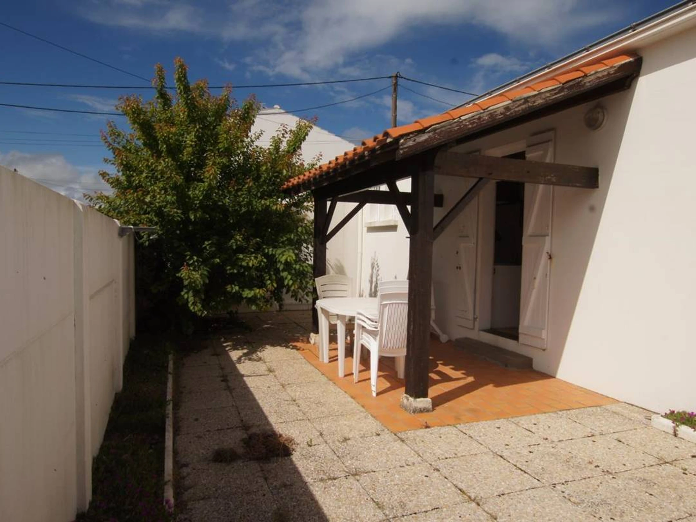 Elle comprends un séjour avec TV lecteur DVD, WIFI, cuisine donnant sur auvent et terrasse (gazinière avec 3 feux gaz, 1 plaque électrique, four électrique, réfrigérateur-congélateur, MO, LV), une chambre 1 lit 140, 1 chambre avec 1 lit 140 et 1 lit 0.90, salle d'eau (lavabo, douche, WC et LL). Garage pour vélos. Jardin clos. Auvent à l'arrière de la maison avec terrasse et salon de jardin idéal pour déjeuner. Aménagement simple. Animaux admis.