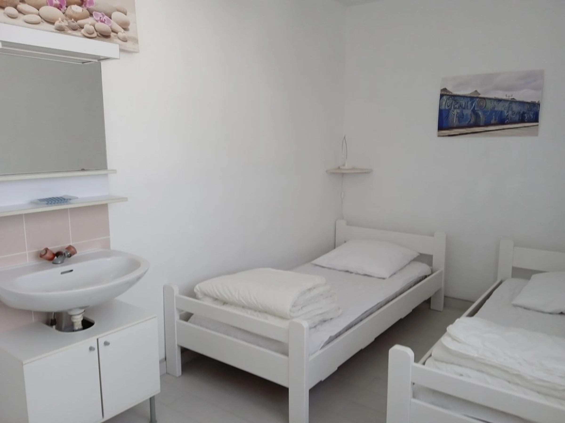 Deux chambres avec deux lits 90 et un lit 160.