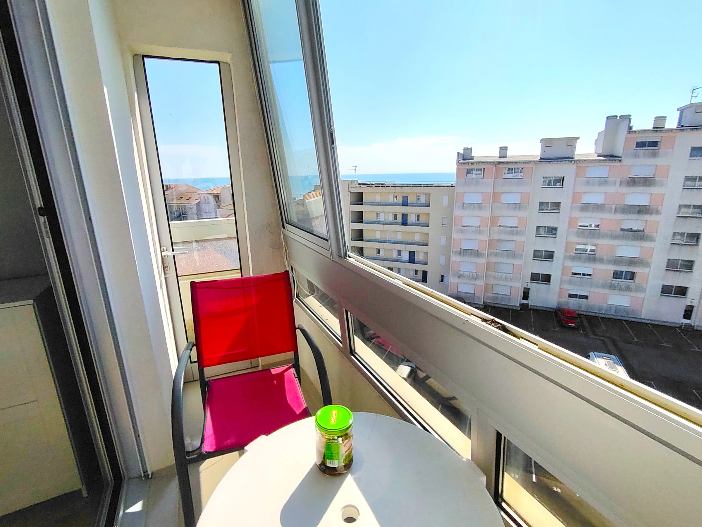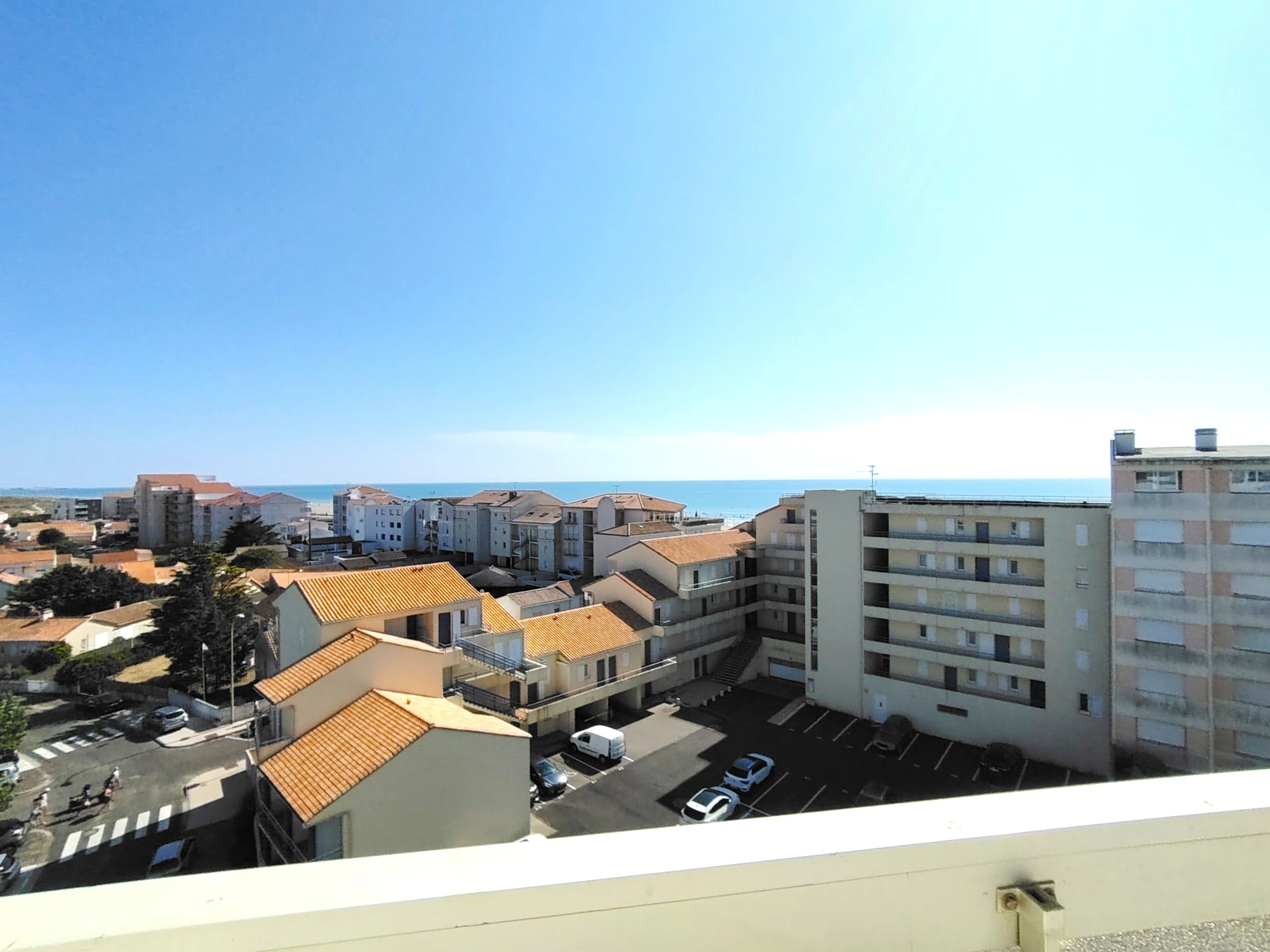 A Saint Jean de Monts, idéalement situé quartier des Demoiselles dans une résidence proche de la longue plage de sable fin et des commerces, au 7ème étage avec ascenseur, appartement offrant une entrée, un beau séjour lumineux (canapé convertible) avec grand balcon, une cuisine équipée et aménagée ouverte, une chambre avec un lit 2 personnes (140 cm), une salle d'eau avec WC. Parking public gratuit proche de la résidence.