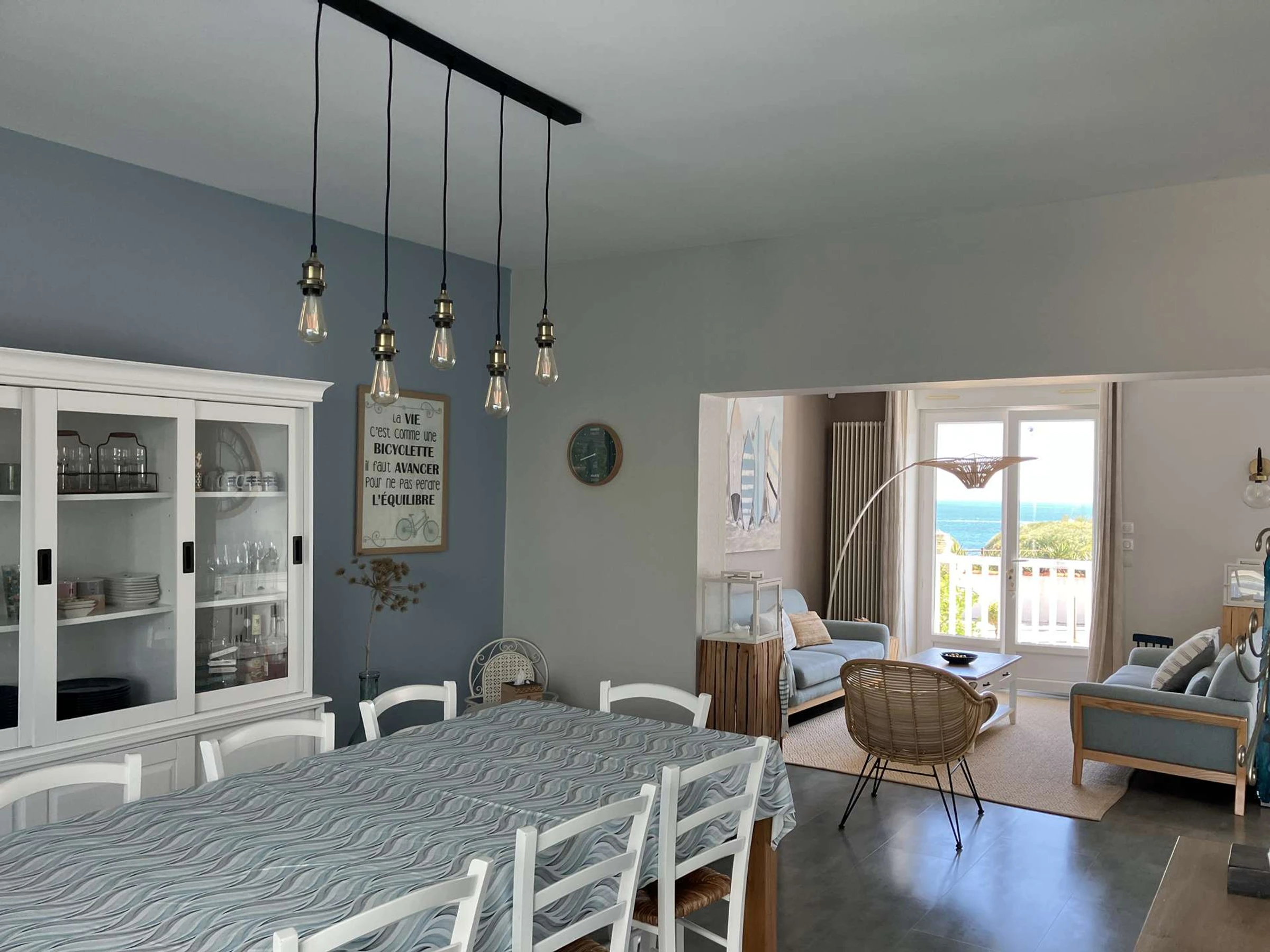 Cette magnifique villa familiale typique du bord de mer est située sur la Corniche Vendéenne. Rénovée, son architecture, des années 20 a conservé son charme et son authenticité. Sa pièce de vie de 48 m² est lumineuse. La cuisine est équipée d'un lave vaisselle et s'ouvre sur une magnifique verrière, véritable jardin d'hiver. Le balcon, côté sud, offre une très belle vue sur la mer, tout comme la chambre parentale, à l'étage. La seconde chambre a une salle d'eau privative et la 3ème est idéale pour les enfants. En rez de jardin, se trouve une grande pièce de 26 m² accessible depuis l'extérieur ainsi que 2 chambres, une salle d'eau avec WC & une lingerie. Le jardin, situé à l'arrière de la maison, vous offrira du calme, à l'ombre des grands arbres. (Réf Quatre Vents)