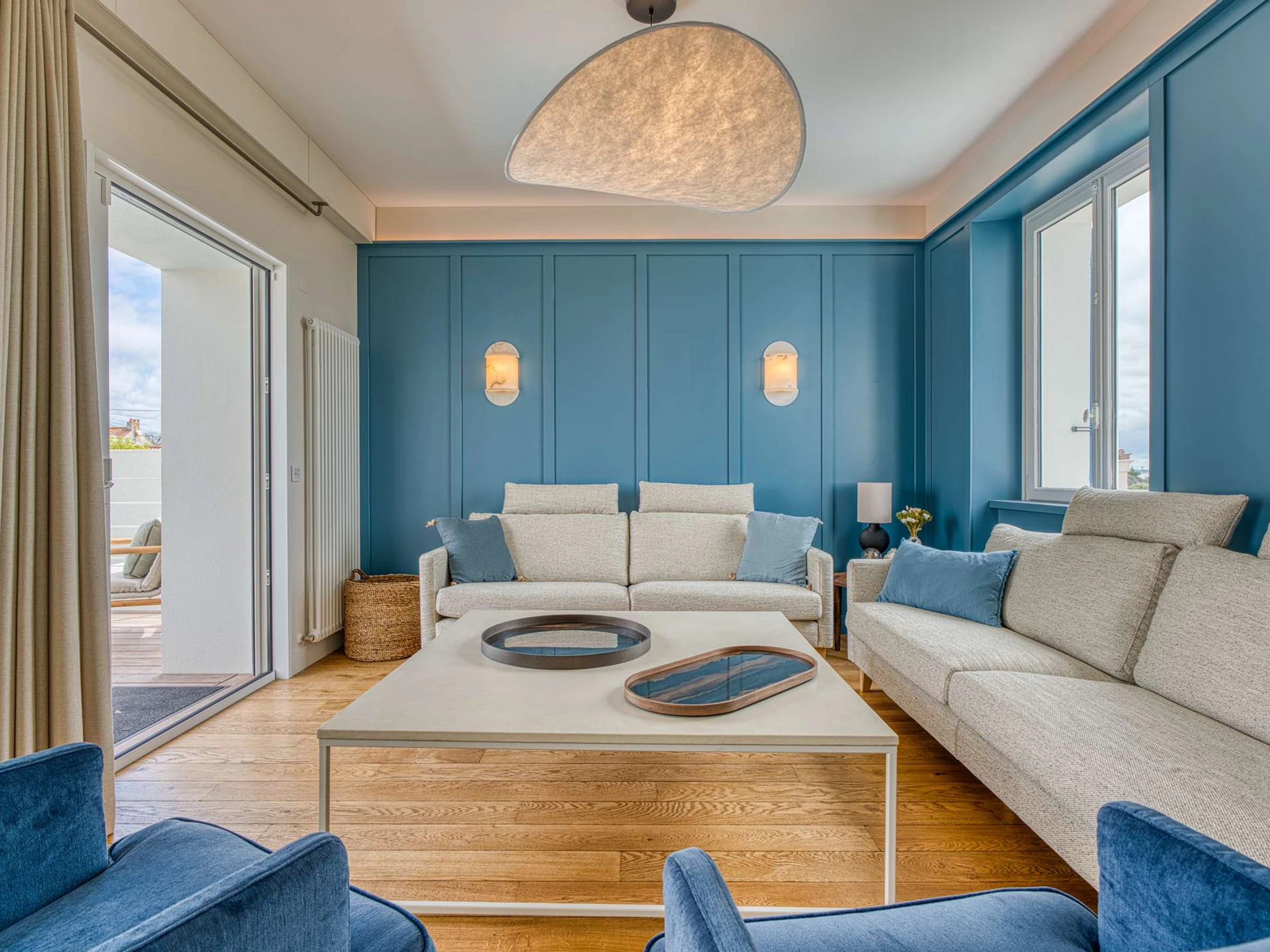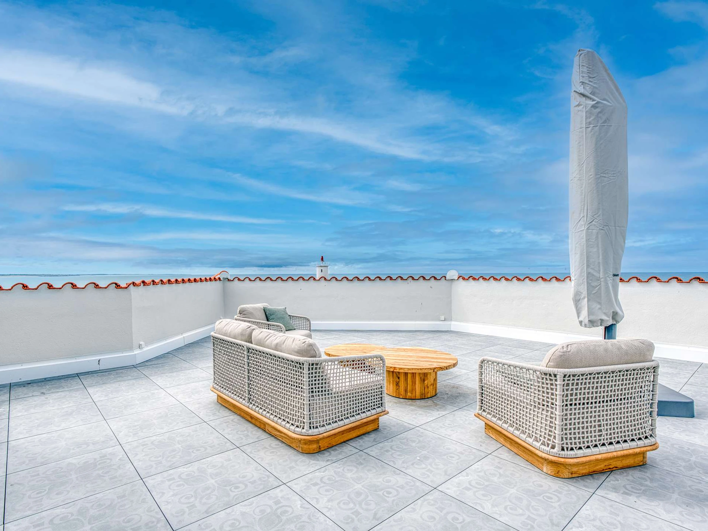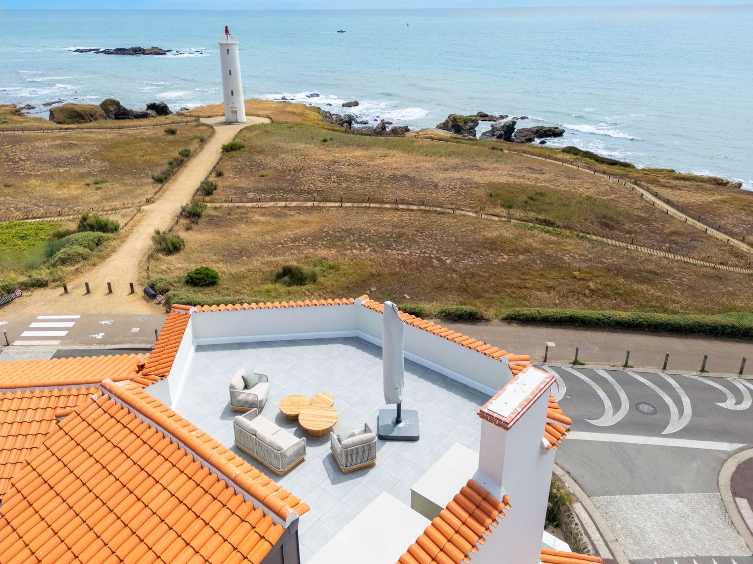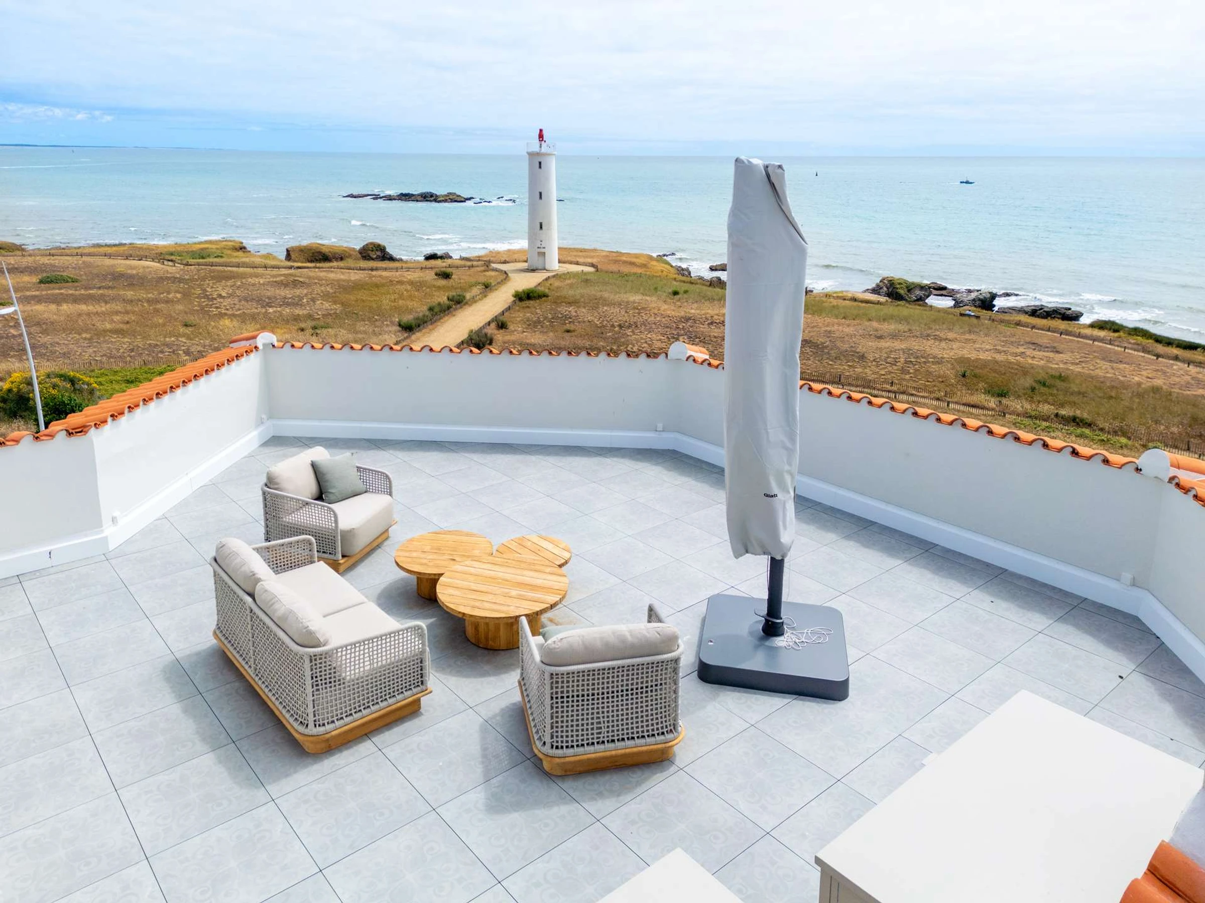 Et tout en haut de la villa, se cache l’un des lieux les plus incroyable de cette maison ; un roof-top panoramique avec une vue imprenable sur Saint-Gilles-Croix-de-Vie, ses plages et l’Atlantique à perte de vue. Aménagé avec un petit salon, cet espace est parfait pour savourer un café au lever du soleil, un verre au coucher du soleil, ou simplement admirer le paysage en toute quiétude.