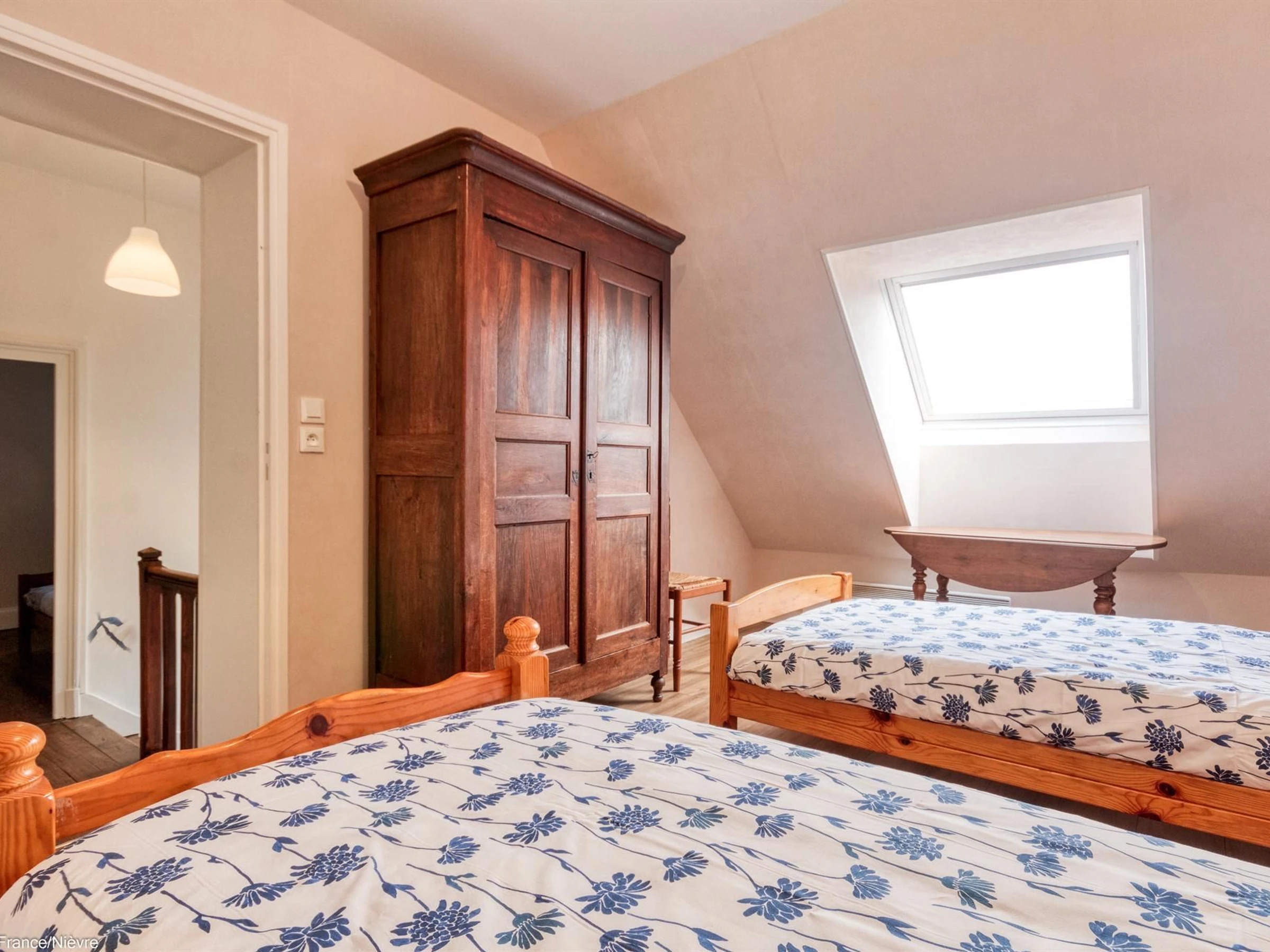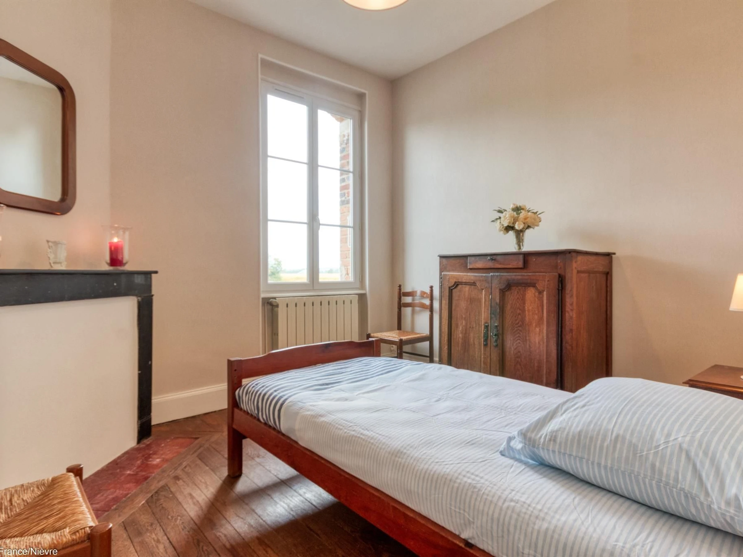 Au centre d'un village au calme, venez profiter de ce gîte idéalement situé sur la véloroute et à quelques centaines de mètres de la Loire. Idéal à découvrir à vélo ou à pied en balade ou pour pêcher. Le terrain est entièrement clos permettant d'accueillir en toute sécurité des enfants et également un animal. Un garage est à votre disposition. L'entrée dans le gîte se fait par la cuisine fonctionnelle (lave-vaisselle, four et micro-ondes, 3 plaques au gaz + 1 électrique); une pièce à vivre avec espace détente et télé; un wc indépendant; une salle de bain (baignoire); à l'étage 3 chambres : 1 avec 1 lit 90x190, la 2ème avec 1 lit 160x200 et la dernière avec 2 lits 90x190. Attention l'escalier pour accéder à l'étage n'est pas sécurisé par une barrière pour les enfants en bas age.