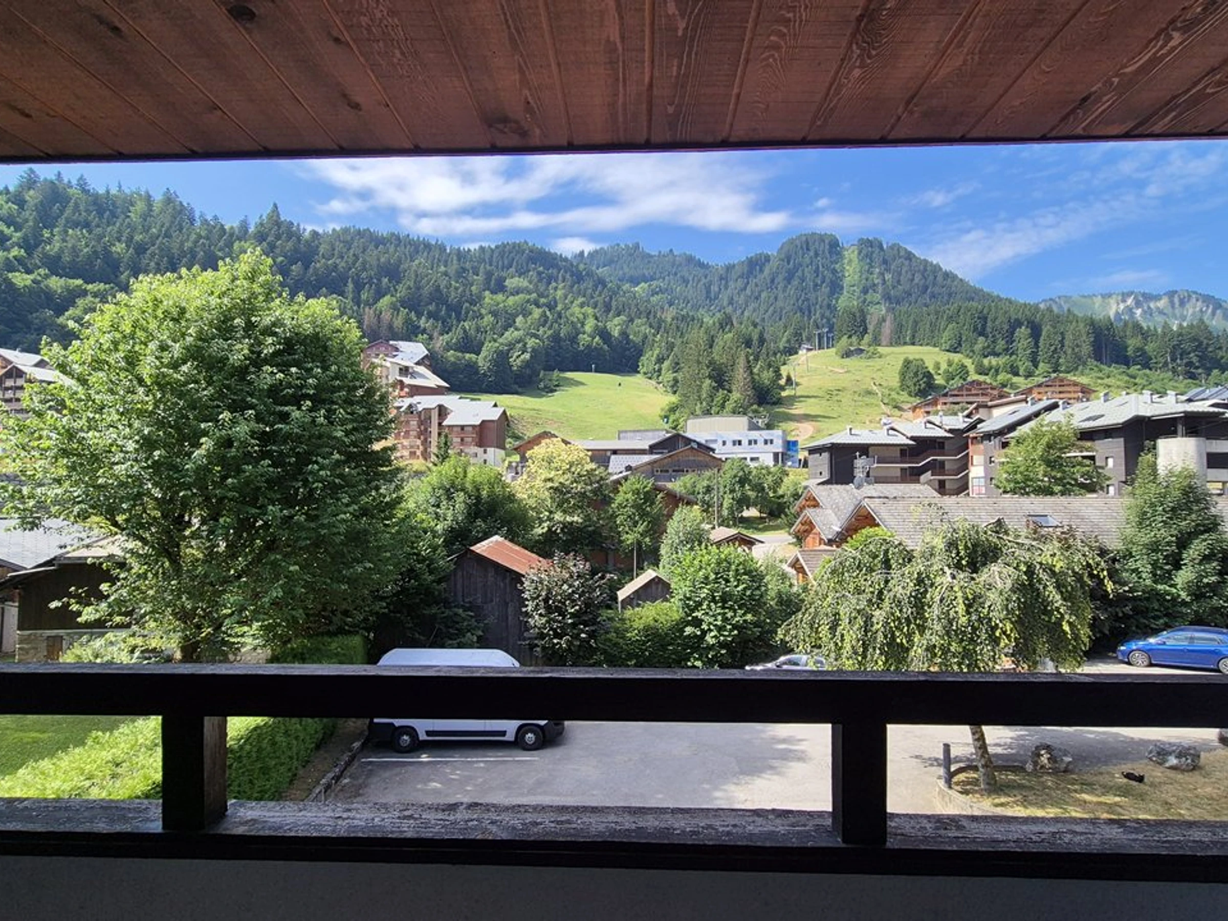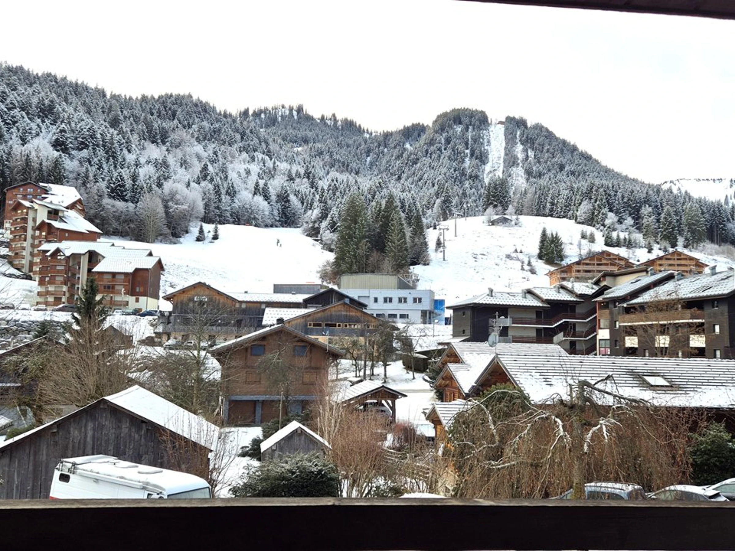 - un coin repas avec une table, 3 chaises, un banc en angle. Cet espace donne sur un balcon exposé sud offrant une vue sur les pistes et le centre de la station