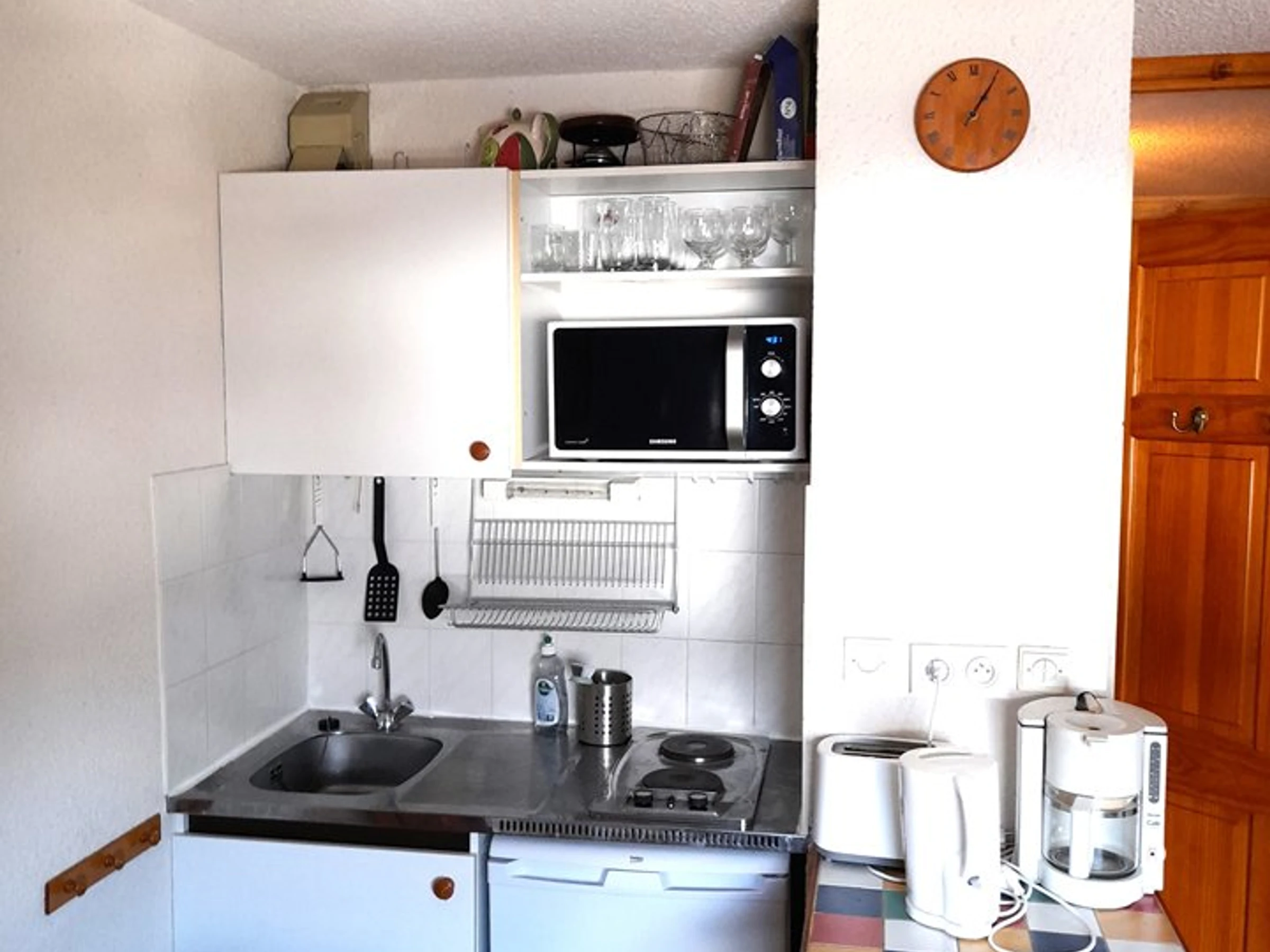 - une kitchenette équipée avec placards, 2 plaques électriques, mini four, réfrigérateur et micro-ondes.