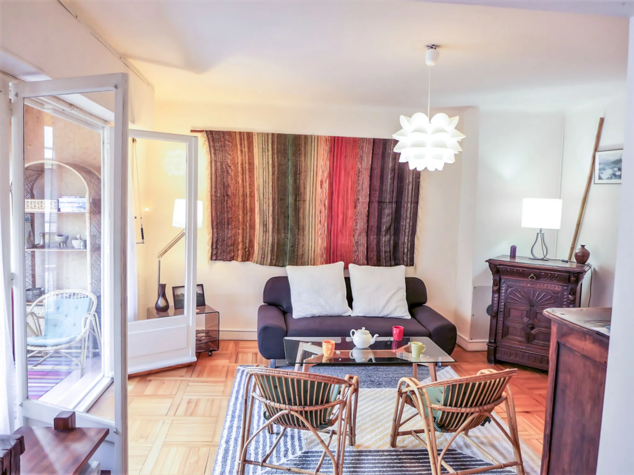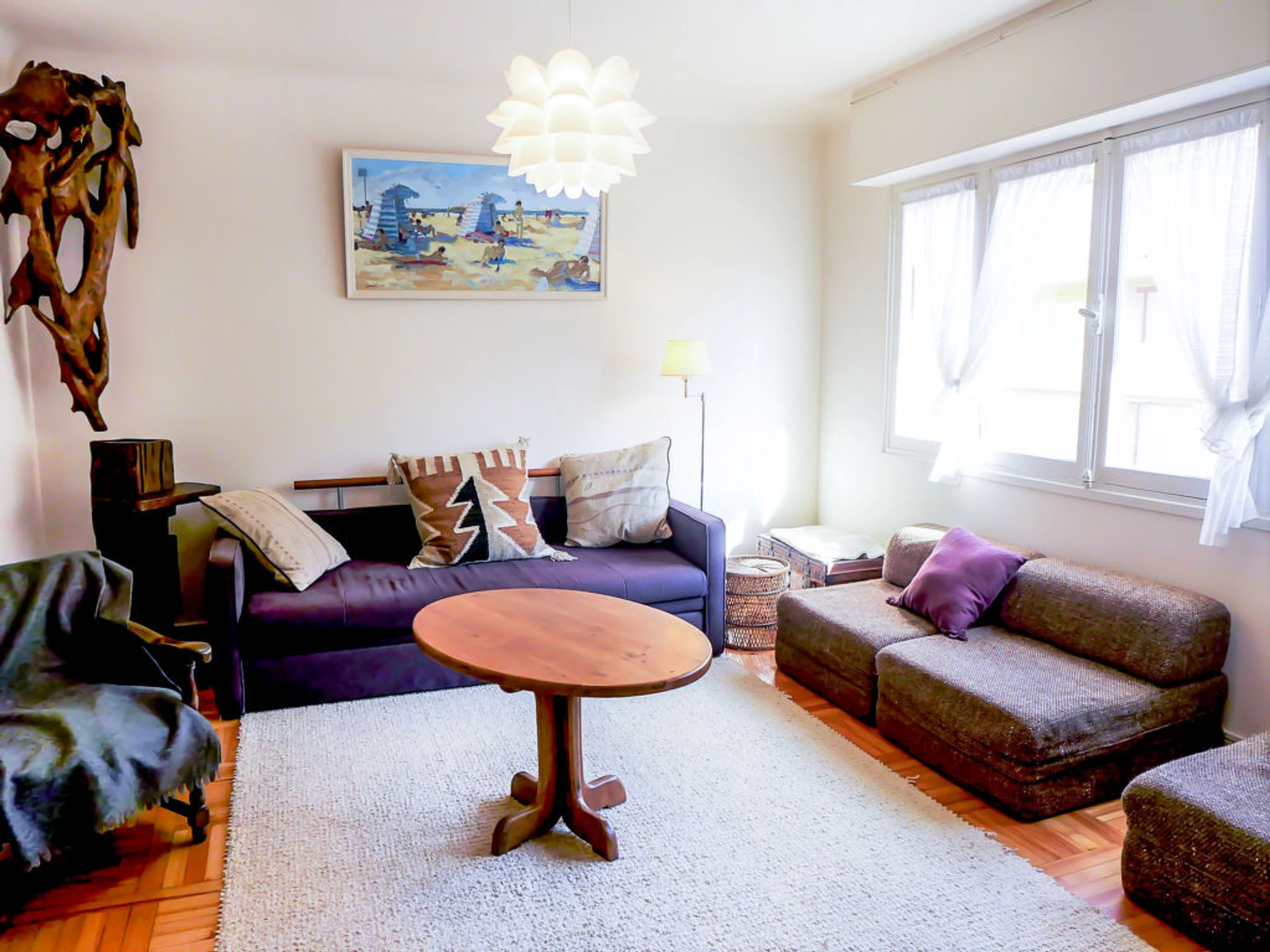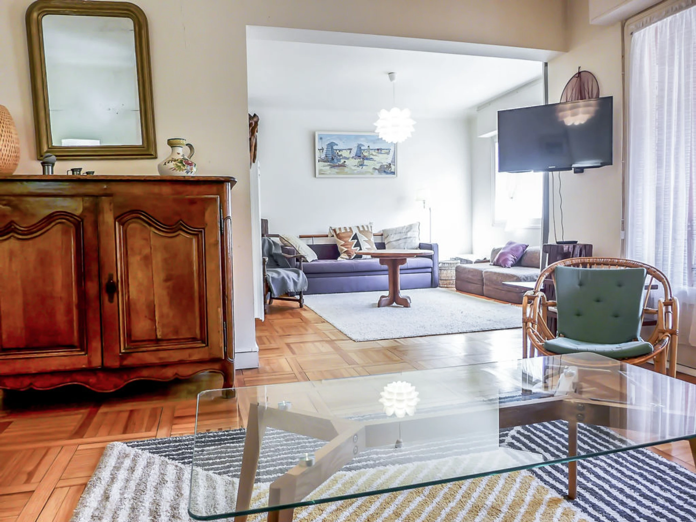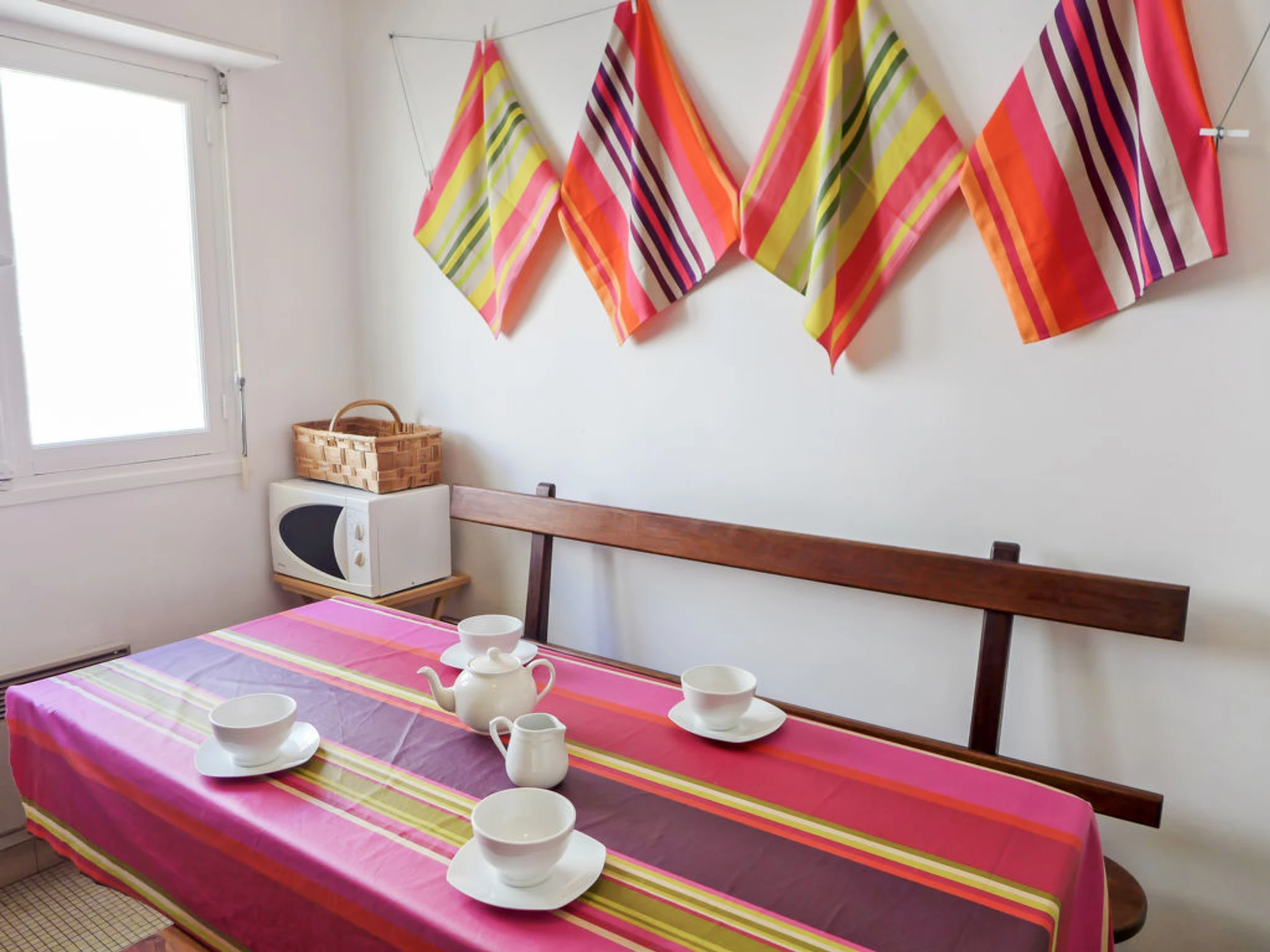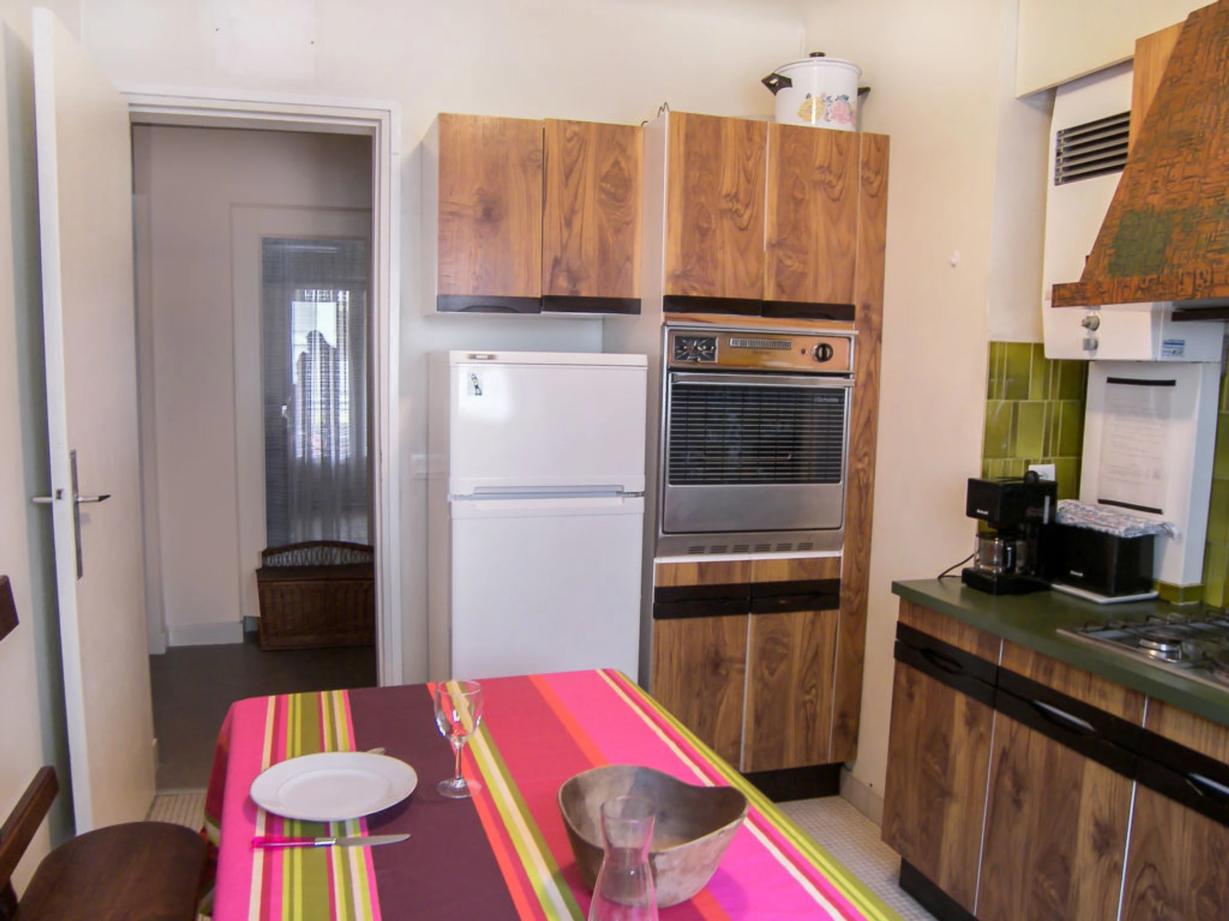 Apt 2 pièces 65 m2 au 3ème étage. Partiellement rénové en 2013, aménagement simple et confortable: séjour avec 1 lit gigogne (2 pers. 2 x 90 cm, longueur 190 cm), TV. 1 chambre avec 1 grand-lit (1 x 140 cm, longueur 190 cm). Sortie sur le balcon. Cuisine (4 plaques de cuisson, four, lave-vaisselle, four micro-ondes, cafetière électrique) avec table pour les repas. Douche, WC séparé. Chauffage électrique. A disposition: lave-linge. Internet (Connexion WIFI, en sus). Place de parking. Veuillez noter: 1 animal/ chien autorisé. Détecteur de fumée.