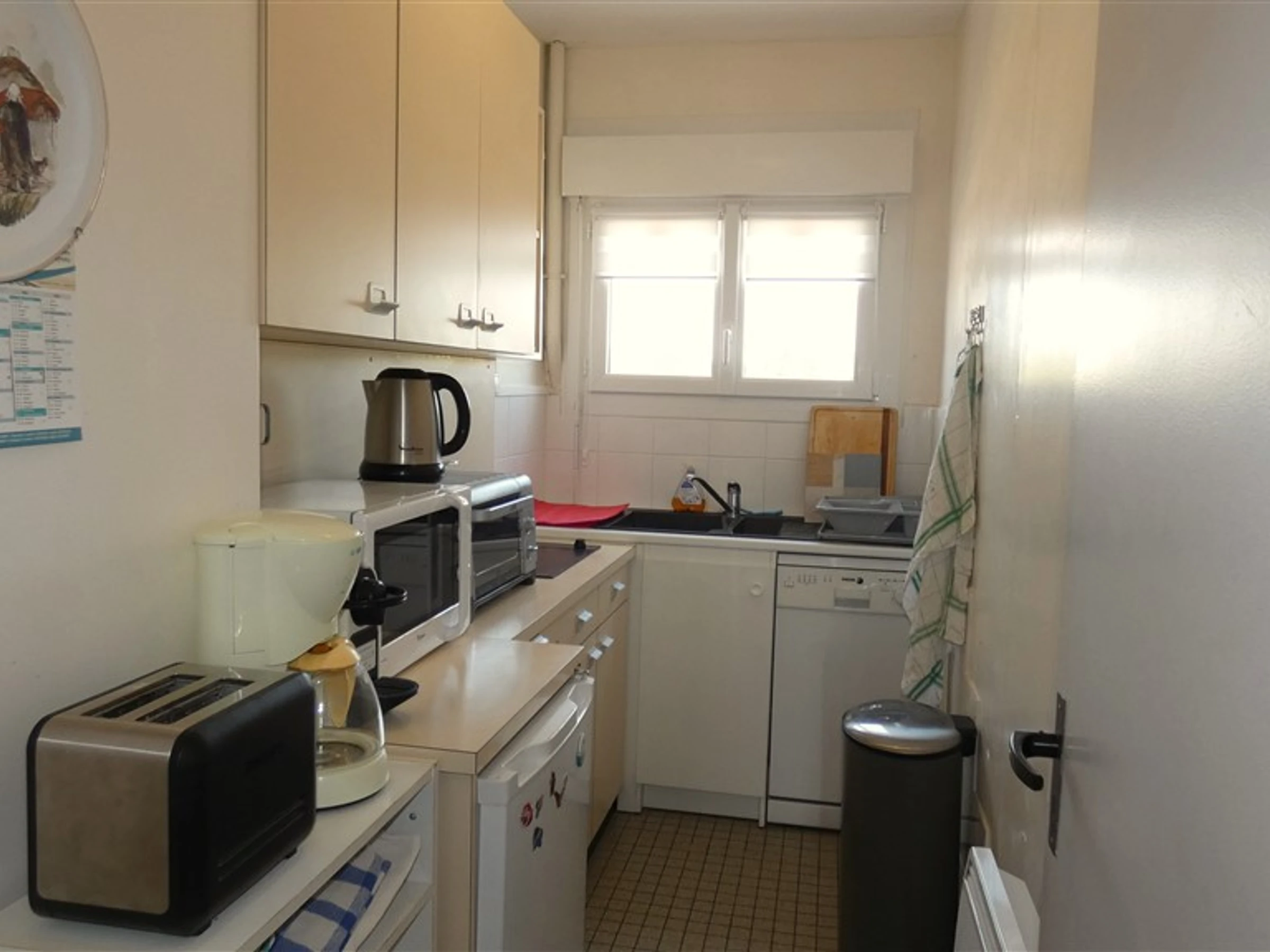 - Cuisine de 4.60m² avec fenêtre : 2 plaques vitrocéramiques - mini-four électrique - réfrigérateur 100l - MICRO-ONDES - LAVE-VAISSELLE (6 couverts) - Revêtement de sol plastifié - cafetière - grille pain - bouilloire