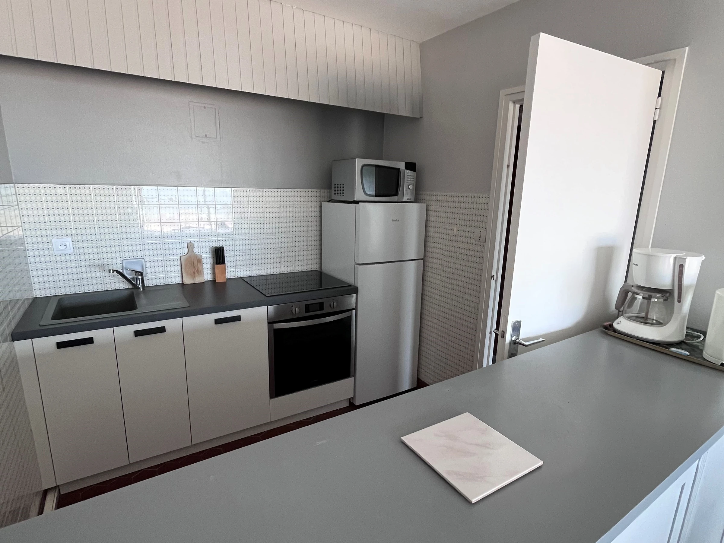 COIN CUISINE ouvert sur le séjour : PLAQUE INDUCTION, réfrigérateur /congélateur 2025, placard, LAVE VAISSELLE, carrelage, murs peints,
