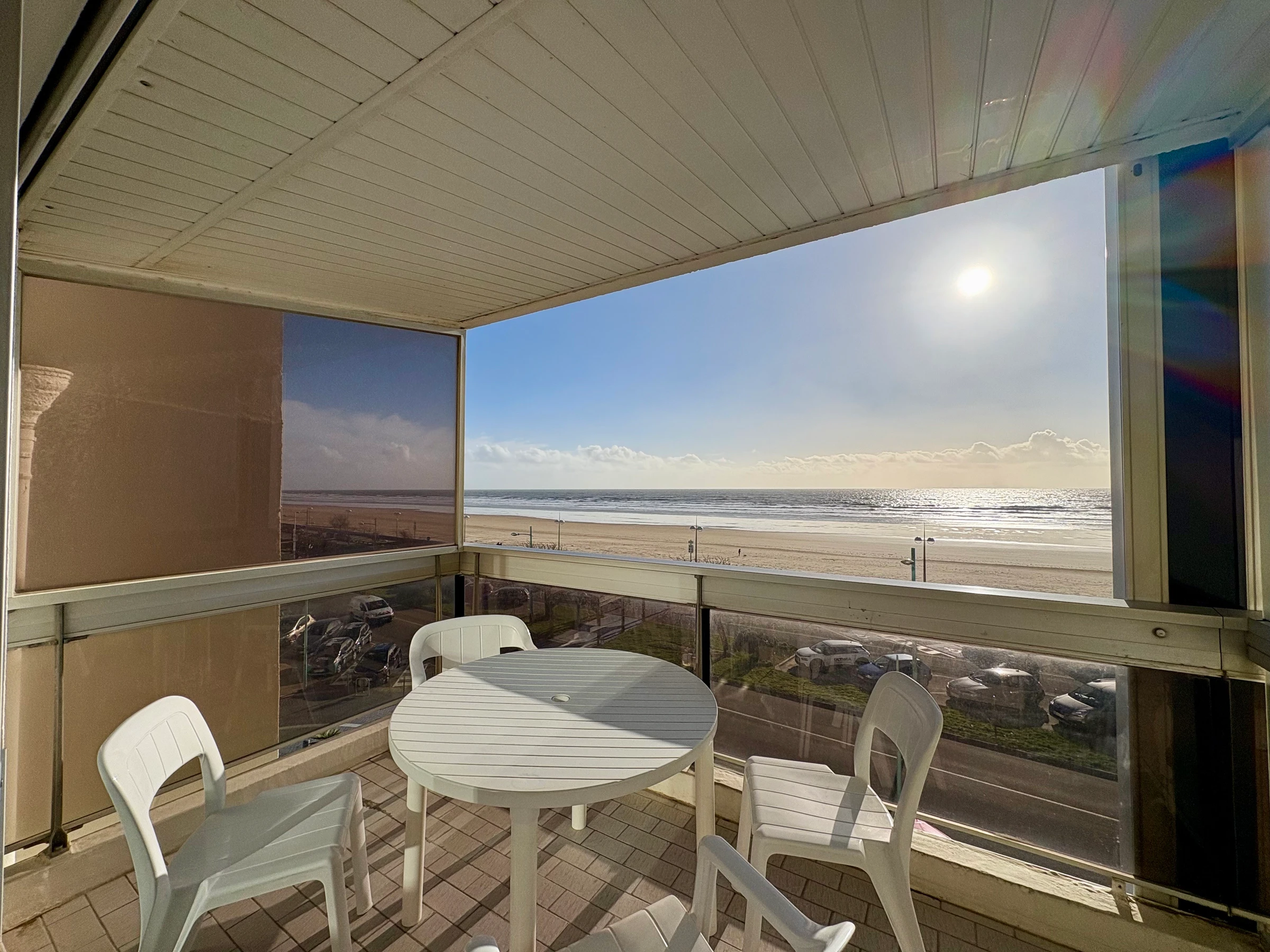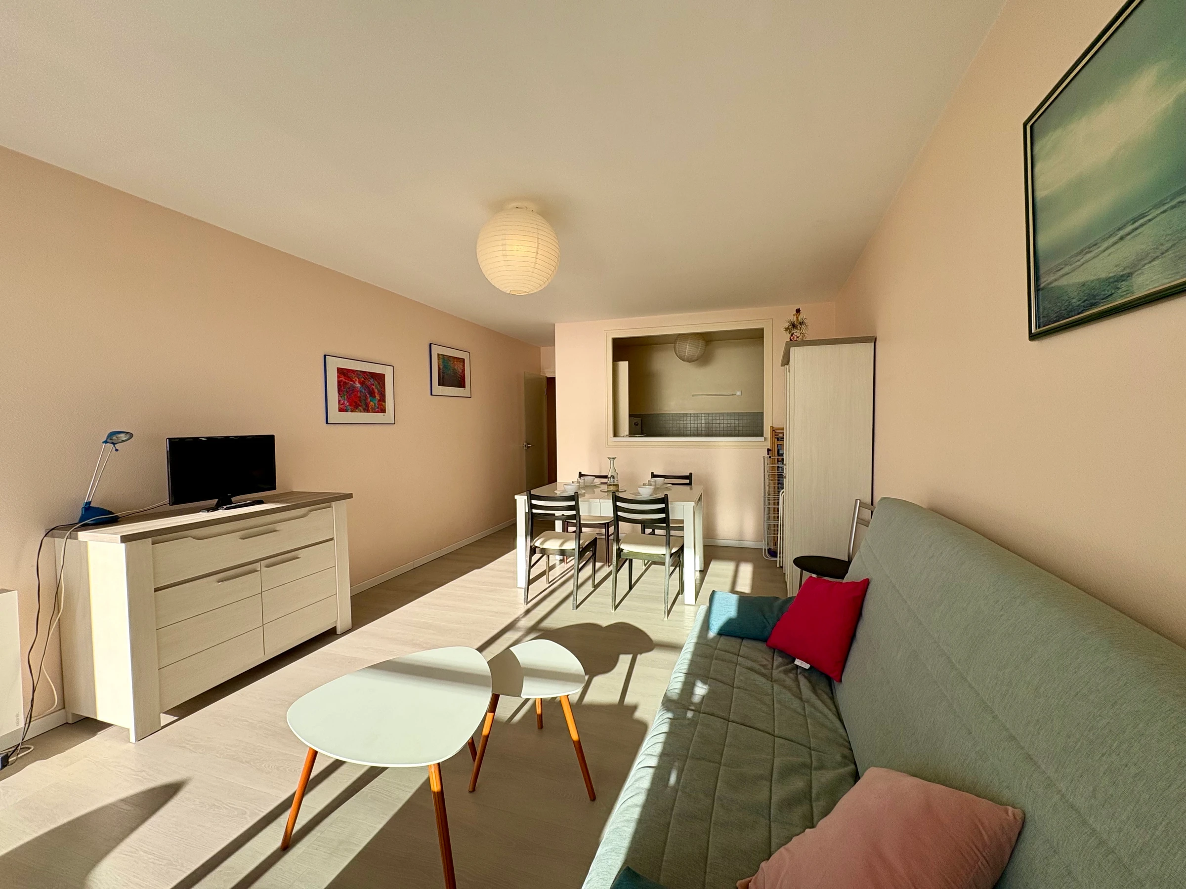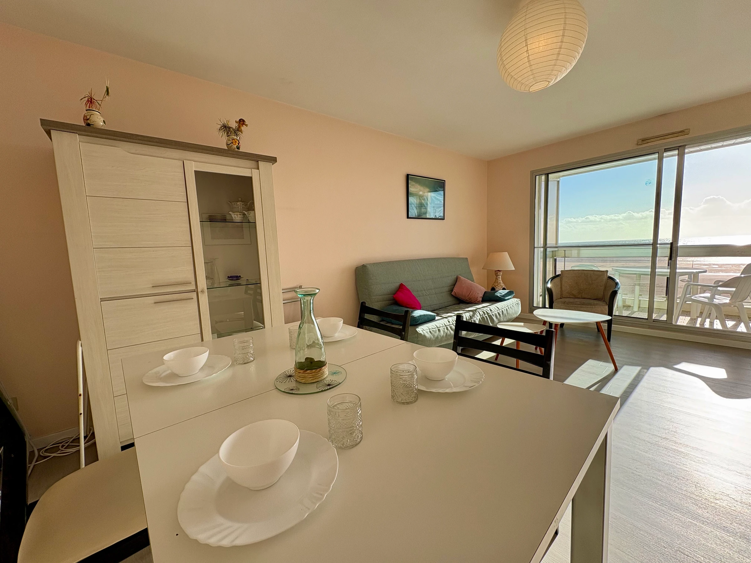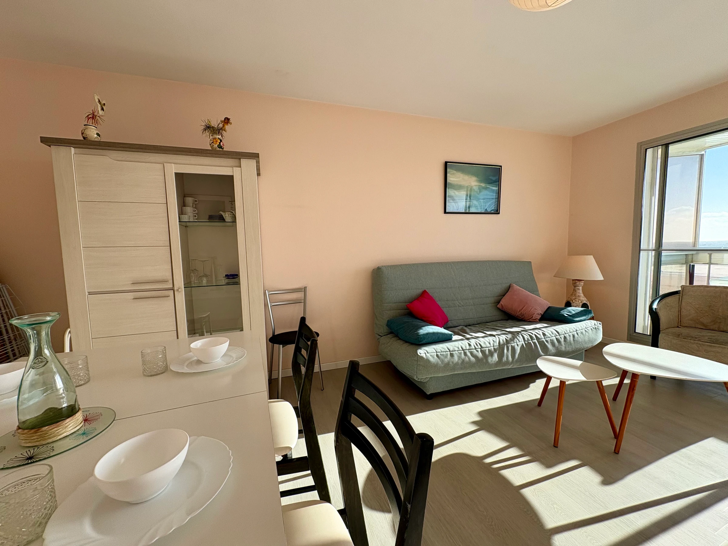 Baie sur balcon face mer, TV, Convertible 2 pers - Fauteuils - Dalles plastiques au sol - Murs tapissés