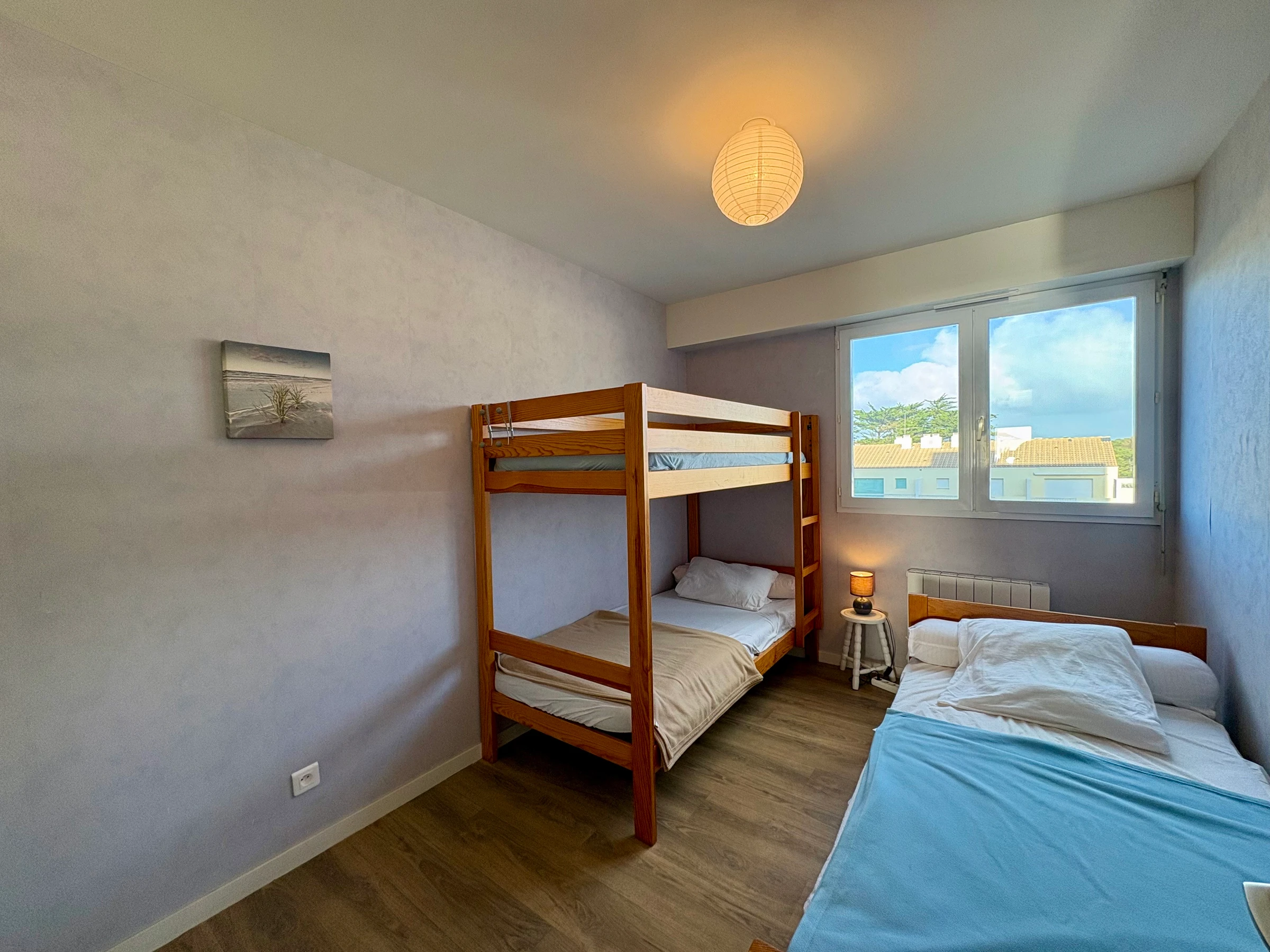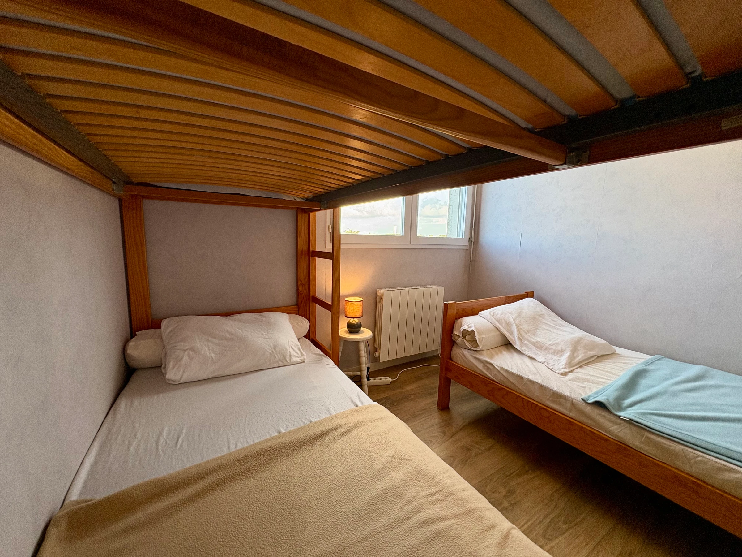 3 lits 1 pers dont 2 superposés (le lit du haut ne convient pas pour enfant moins de 6 ans) - 1 lit simple