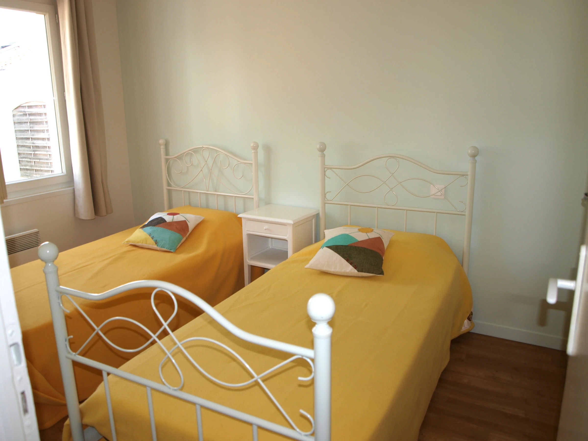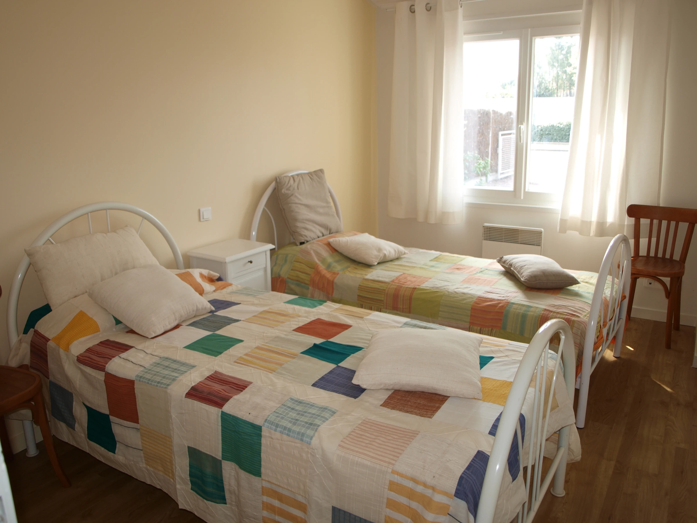 Chambre 2 8.76 m² fenêtre N/O 2 lits 1 personne en 0.90 - 1 chevet + 1 lampe - placard penderie