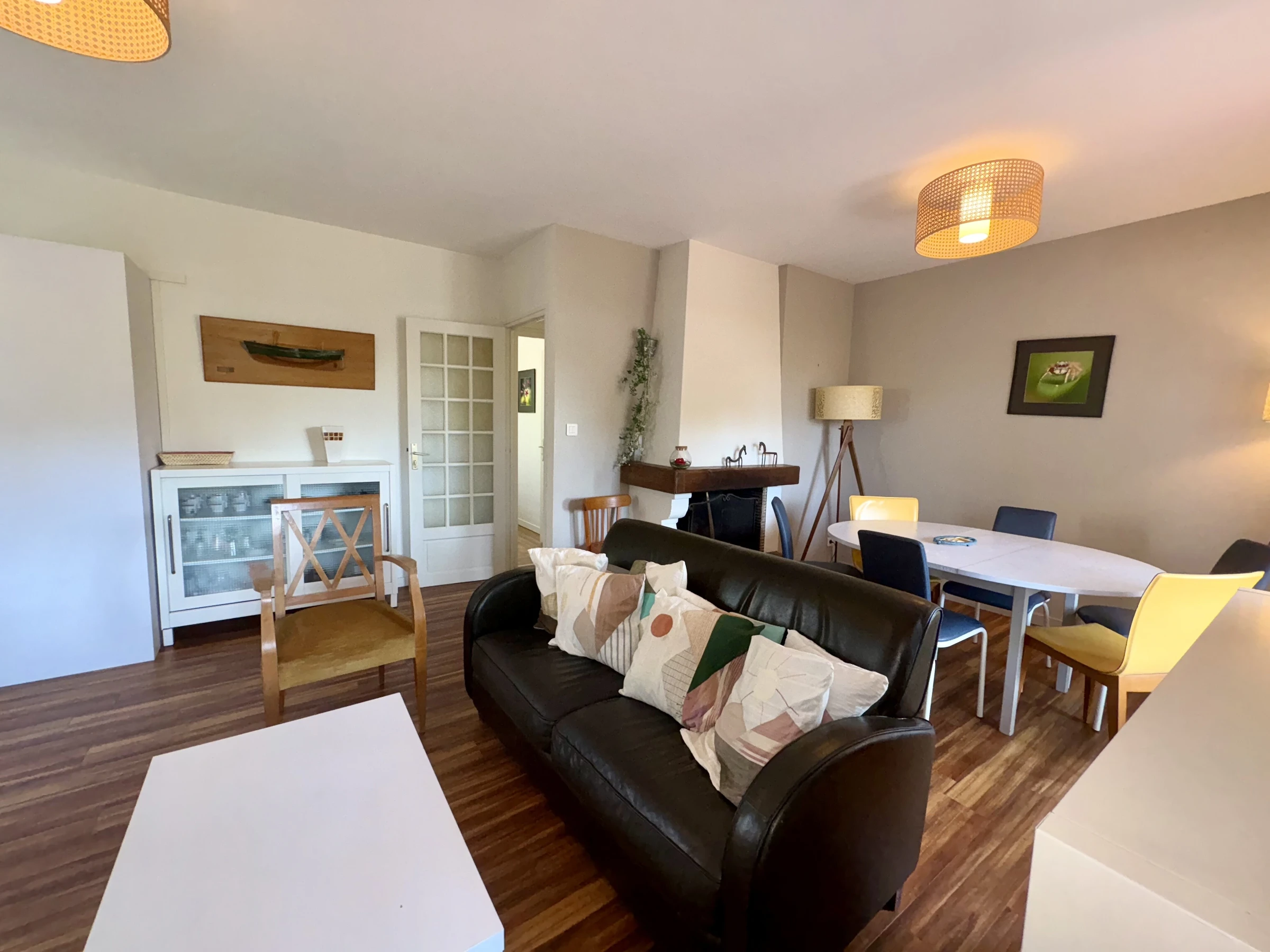Séjour Salon 30 m² avec baies ouvrant sur la terrasse + 1 fenêtre - table et chaises - meuble rangement - télé écran plat - canapé non convertible
