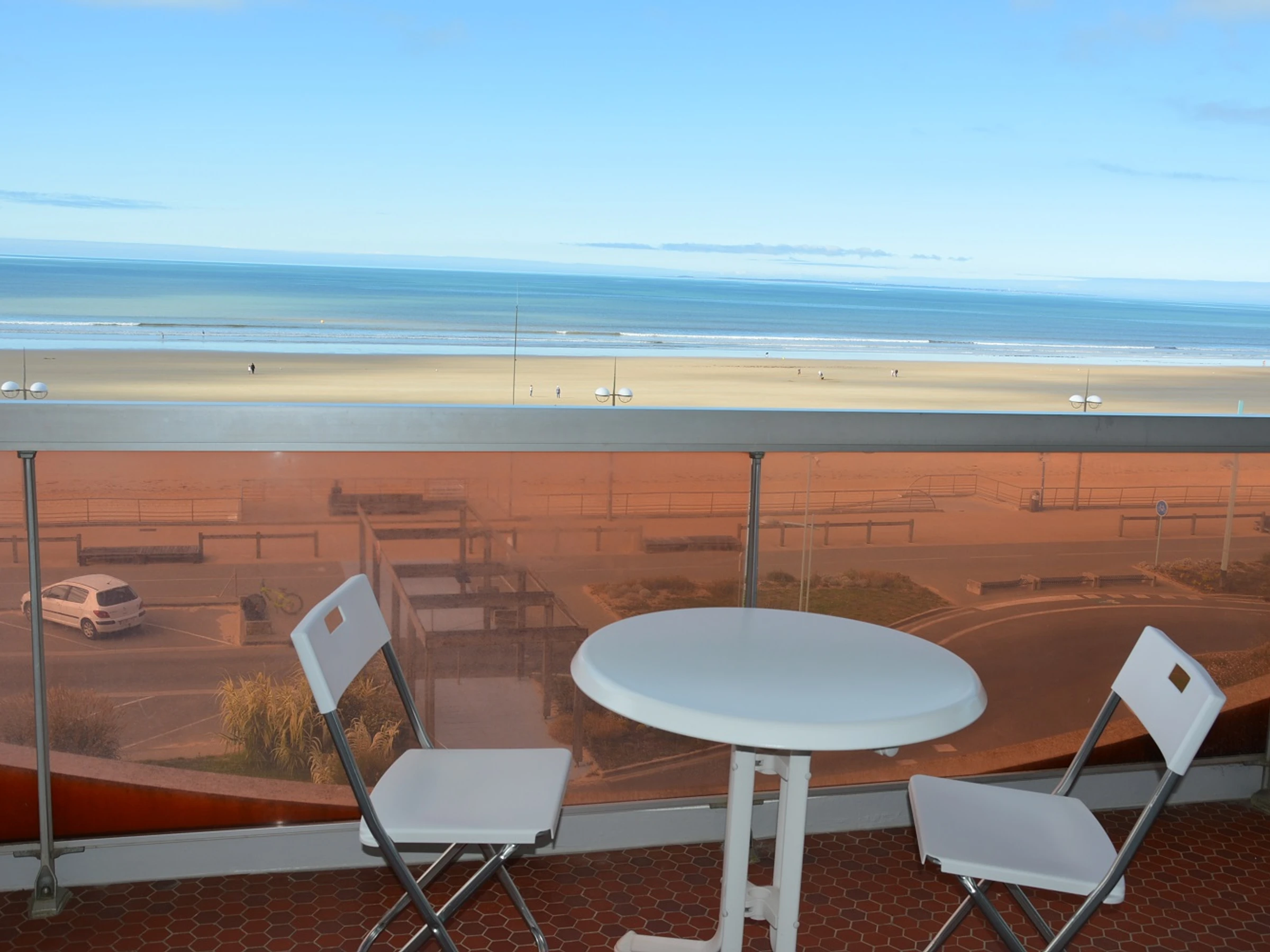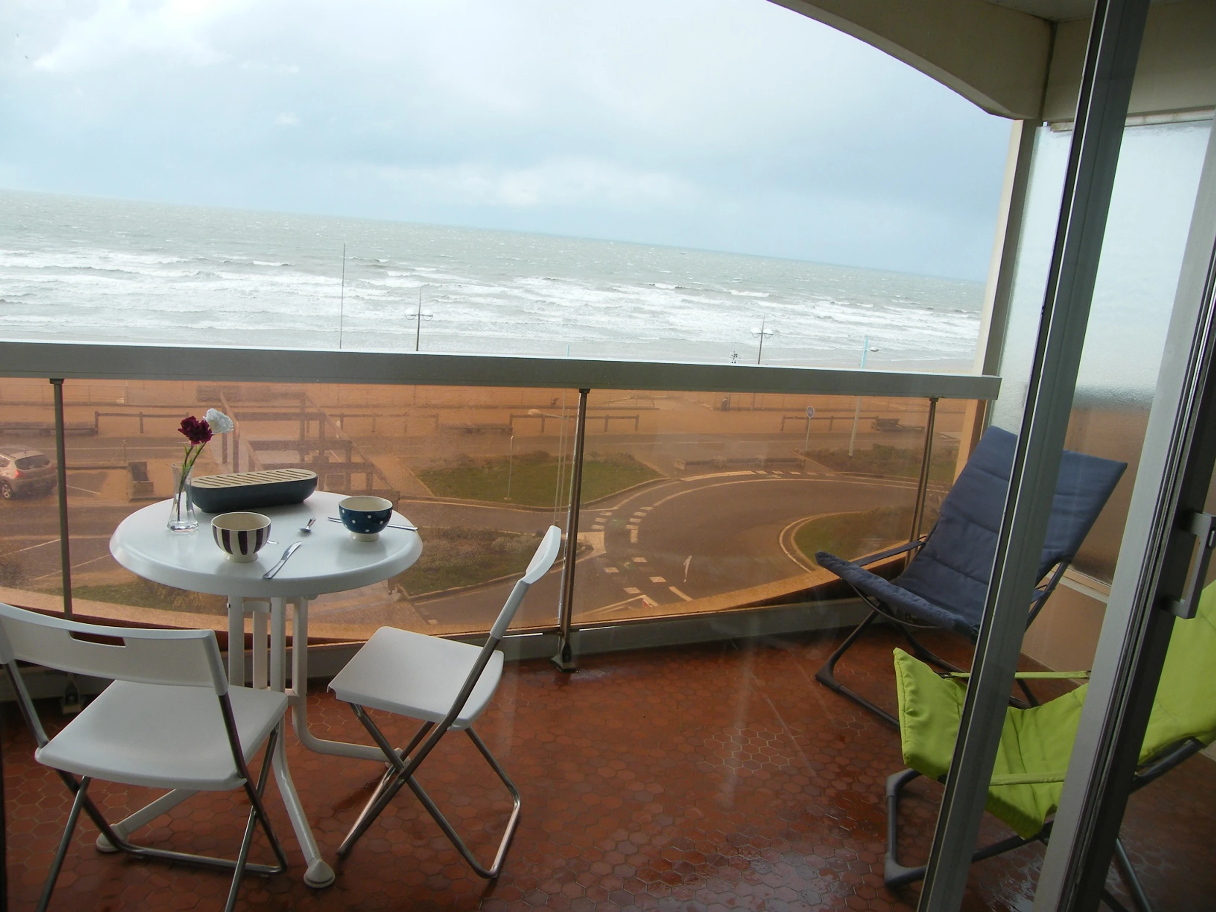 - beau balcon face à la mer avec du mobilier de terrasse pour prendre vos petits déjeuners