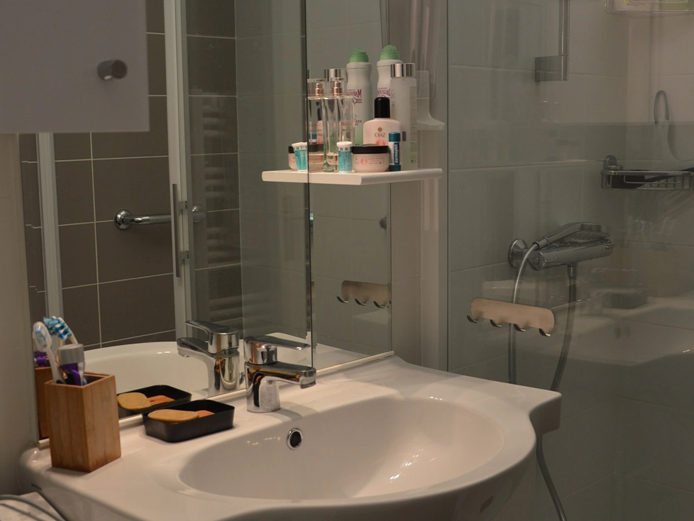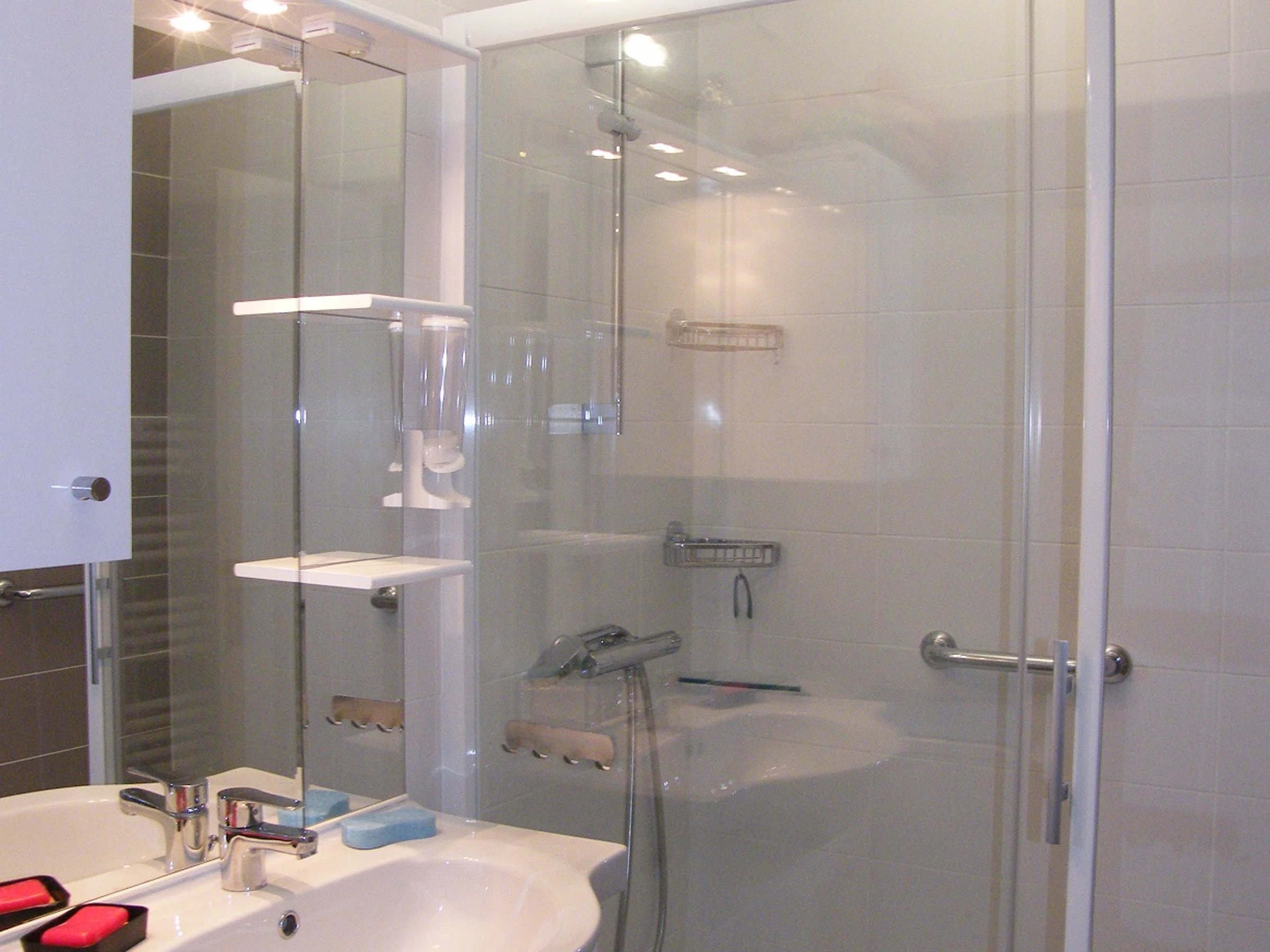 - Salle d'eau avec douche spacieuse et un lavabo et 1 lave linge