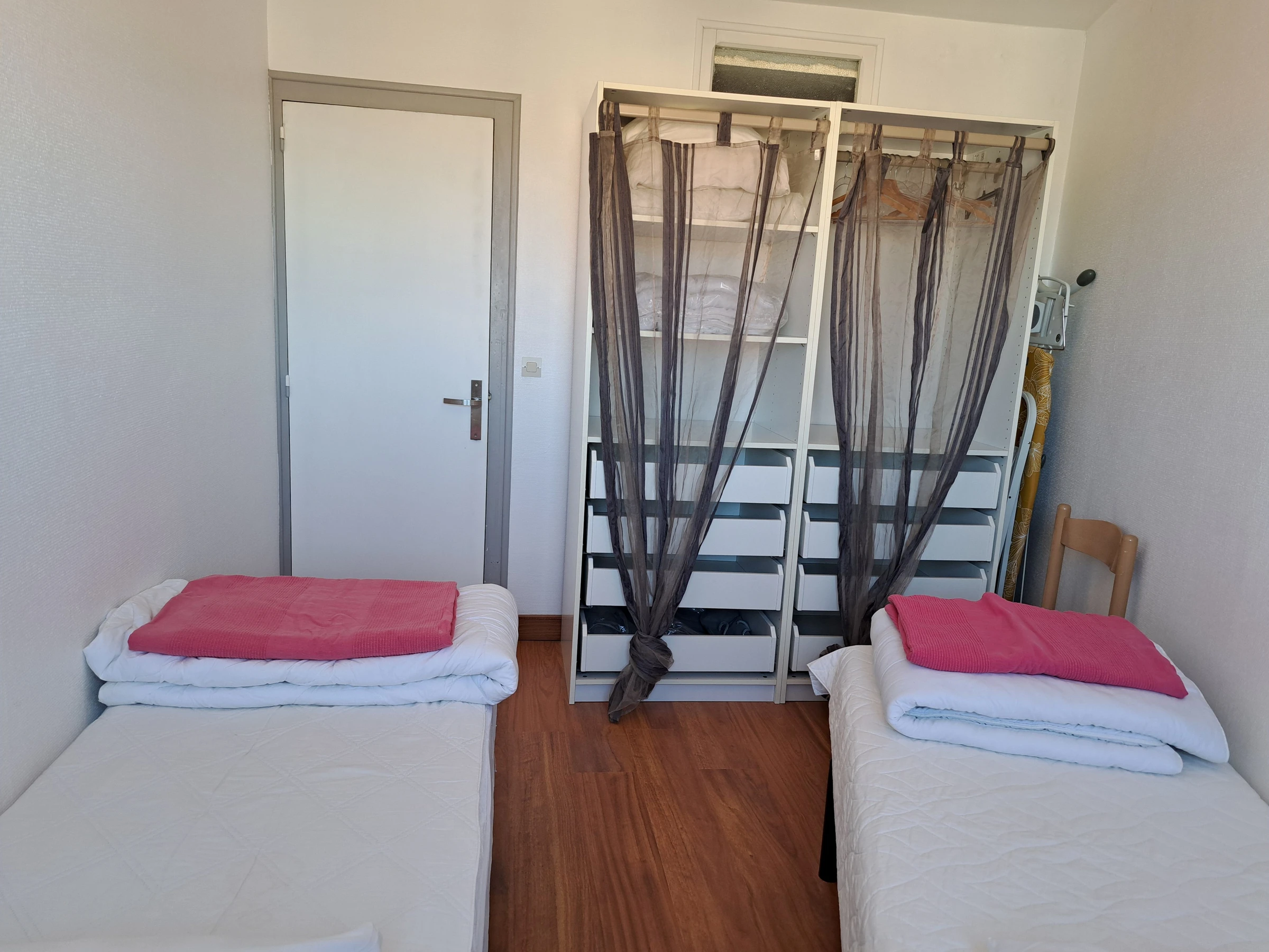 - une chambre avec 2 lits en 90*90 et une armoire (penderie, étagères)