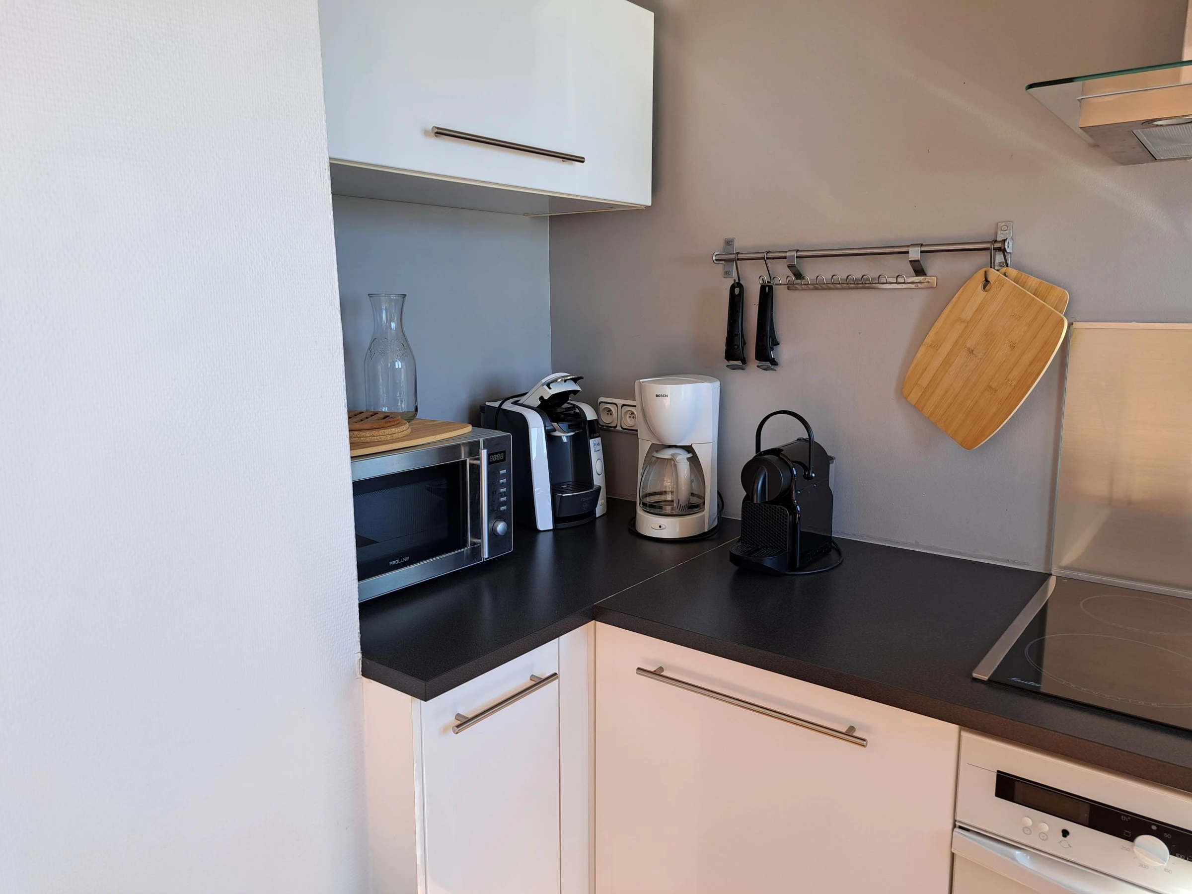 - une cuisine moderne et toute équipée ouverte sur la salle à manger (réfrigérateur/congélateur, four, micro-ondes, ...)