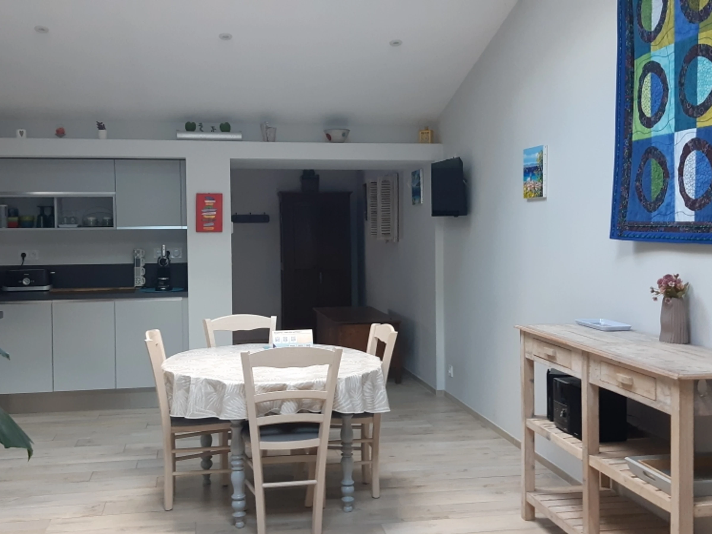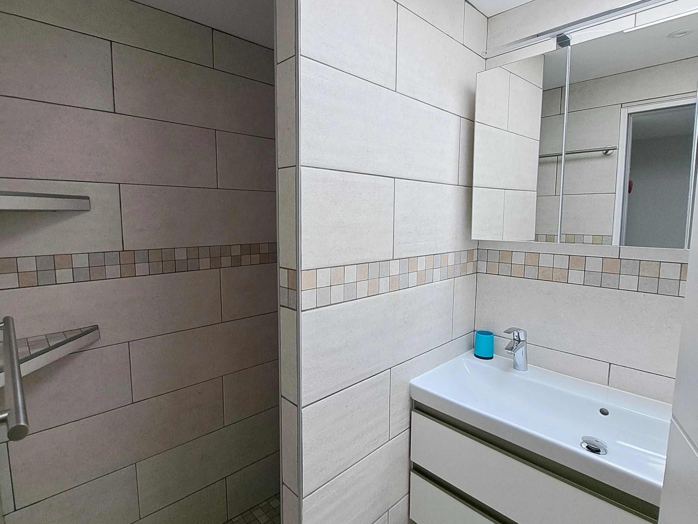 - Salle d'eau: Équipée d'une douche moderne, un lavabo et un WC, conçue pour votre confort.