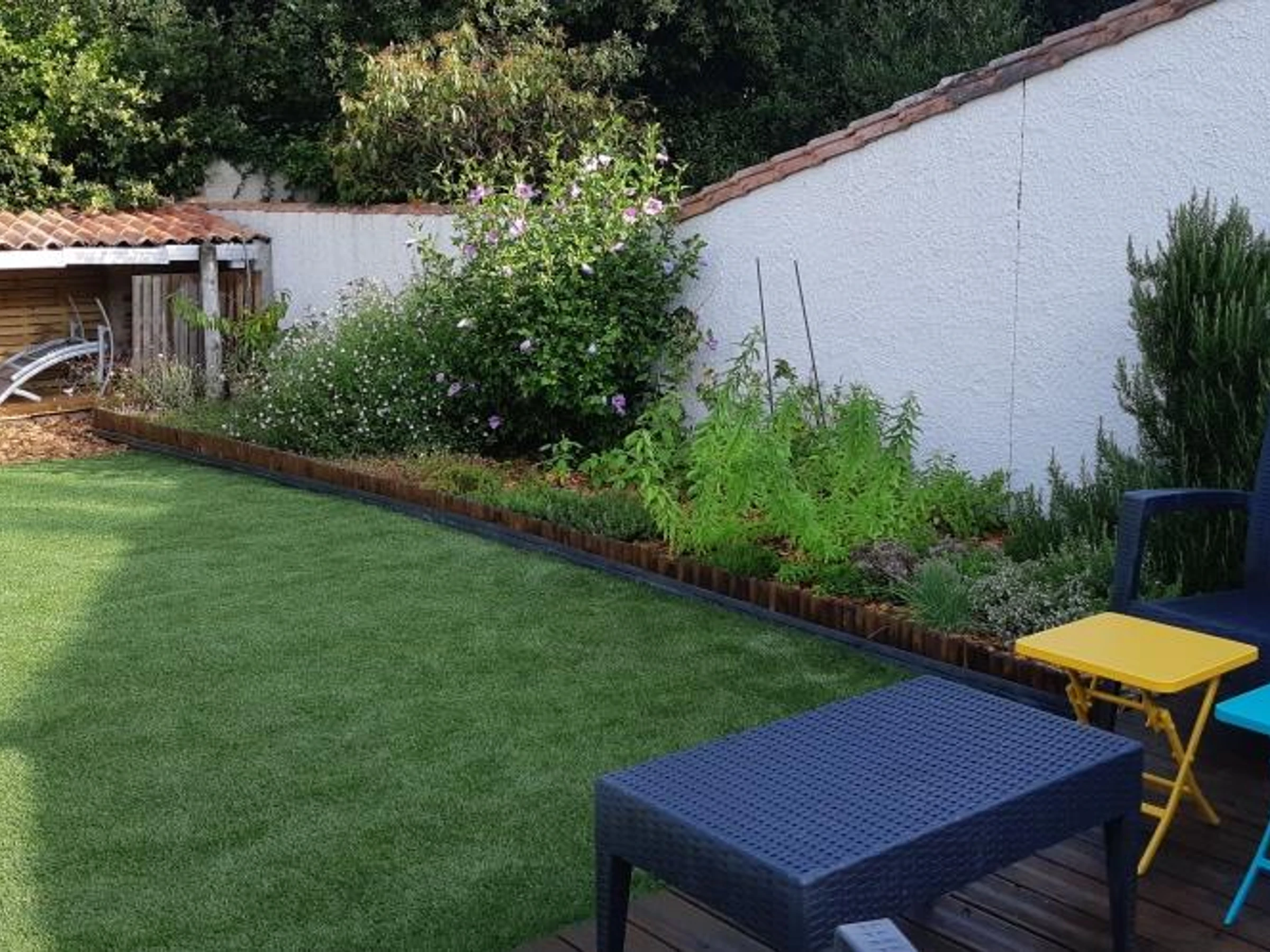 Détendez vous dans le jardin clos avec son mobilier de jardin, bain de soleil, grill plancha et parking privatif.