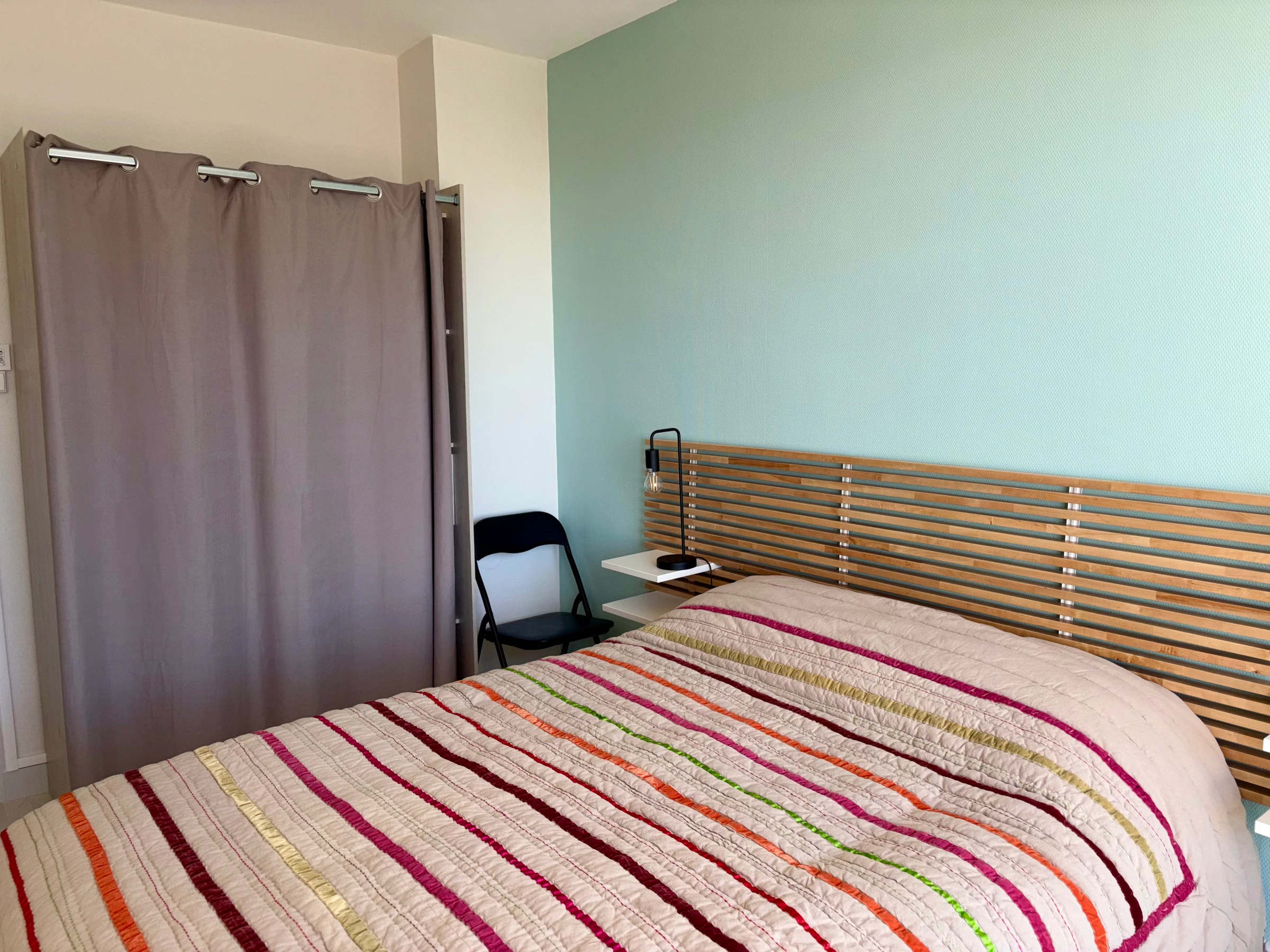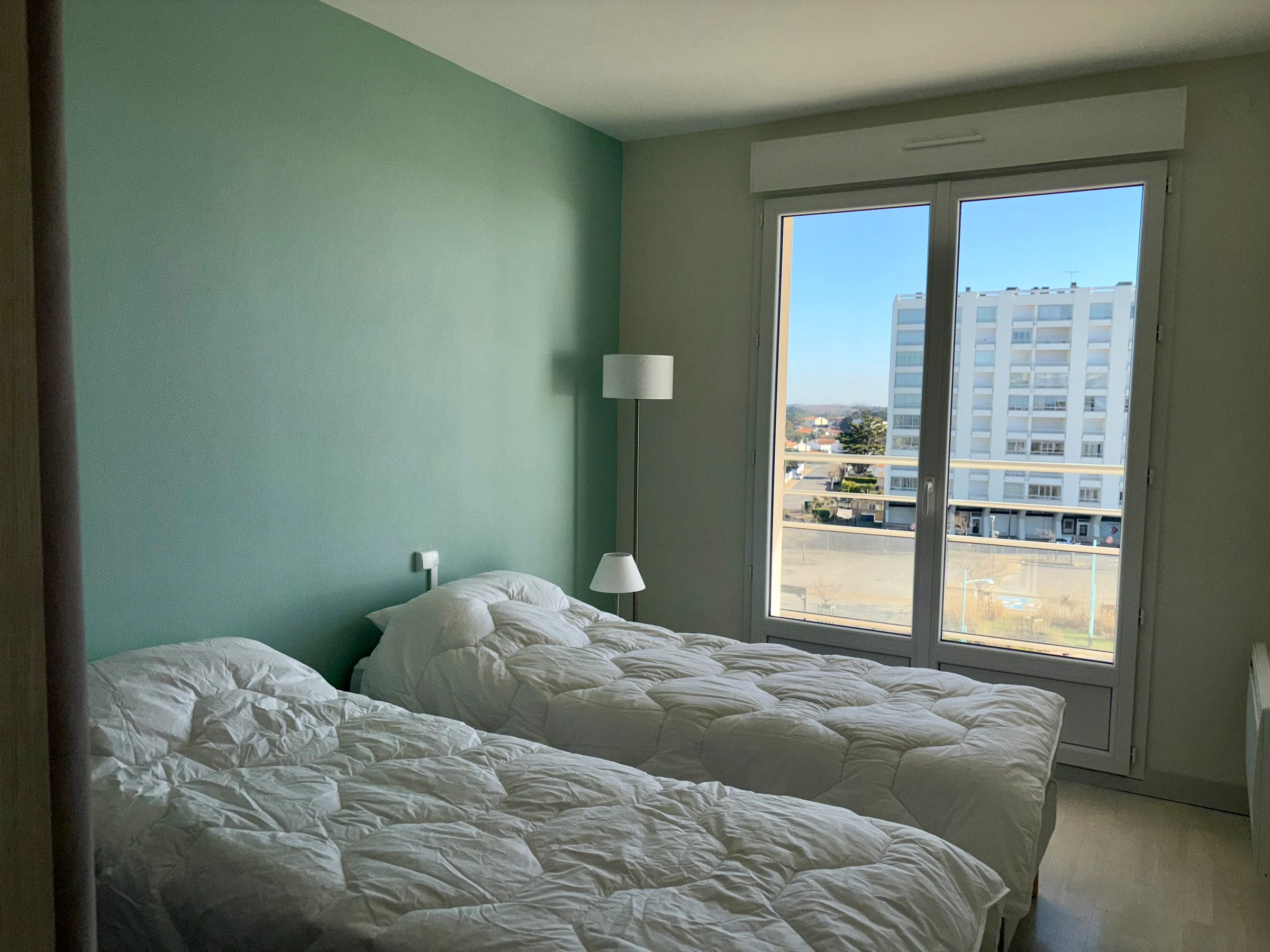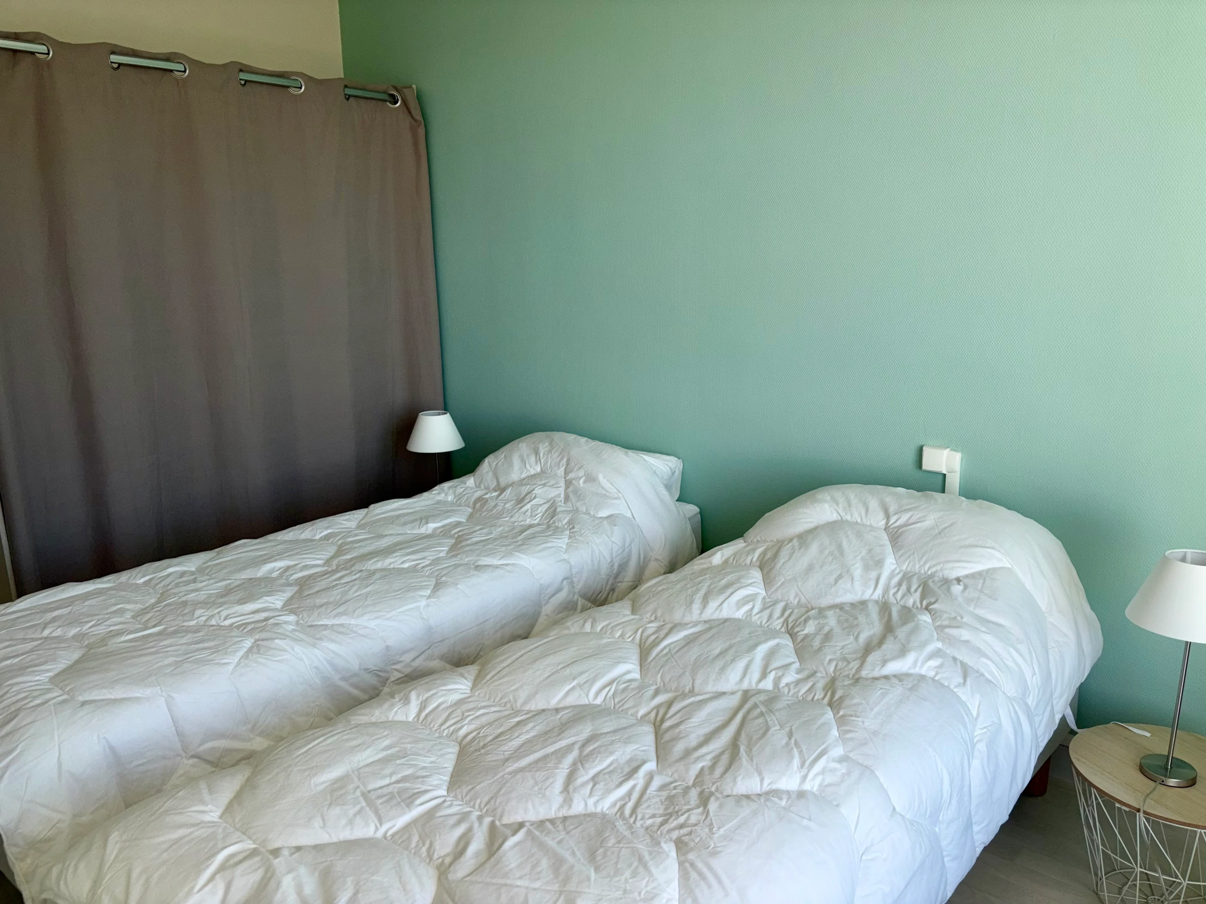 - une deuxième chambre avec deux lits en 80 chevets et lampes de chevet, placard et penderie
