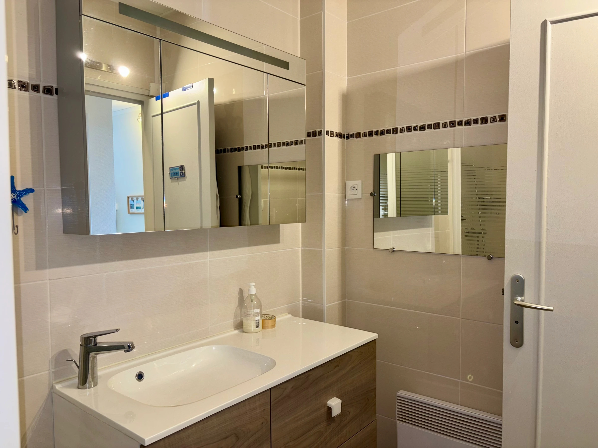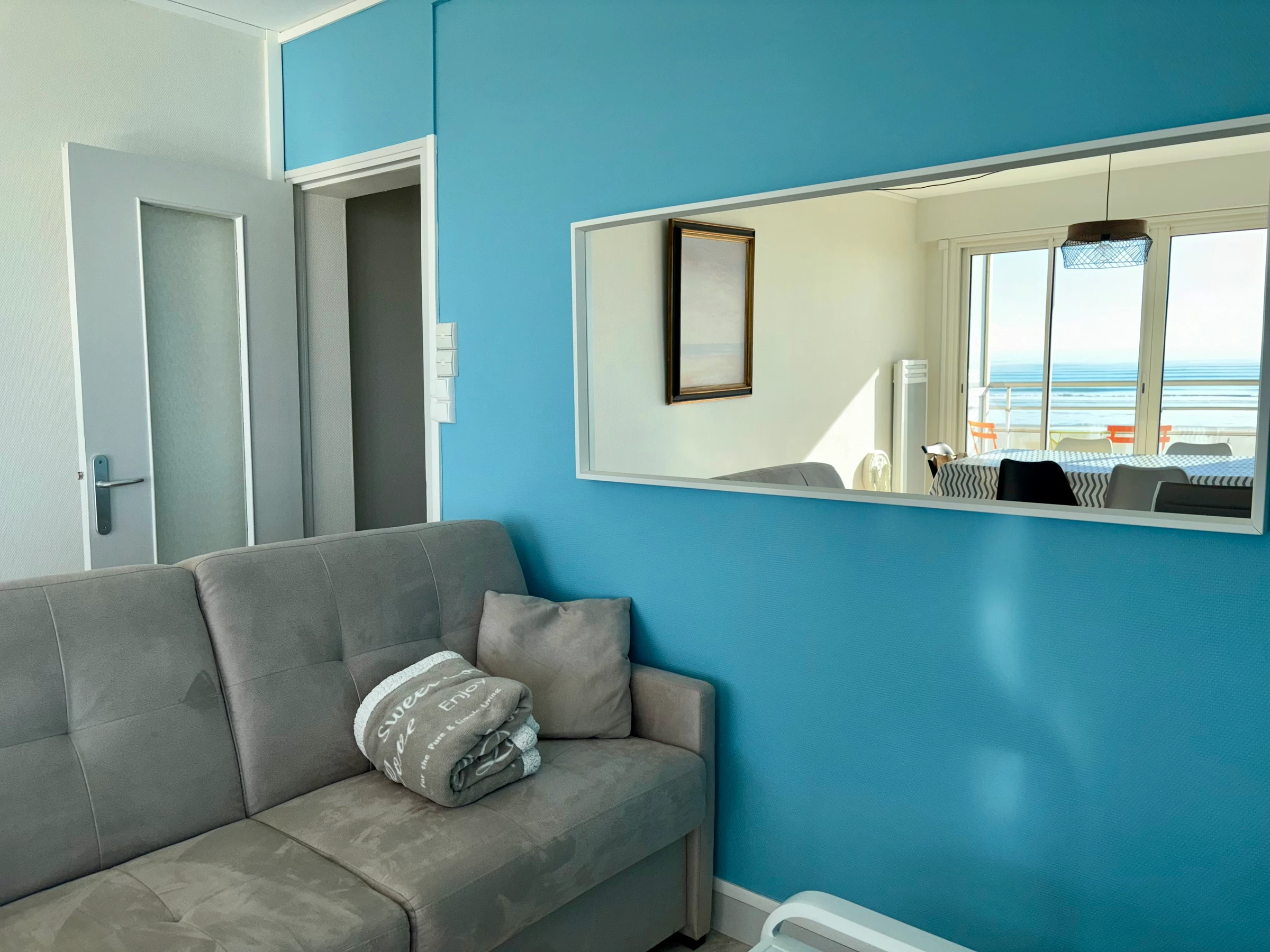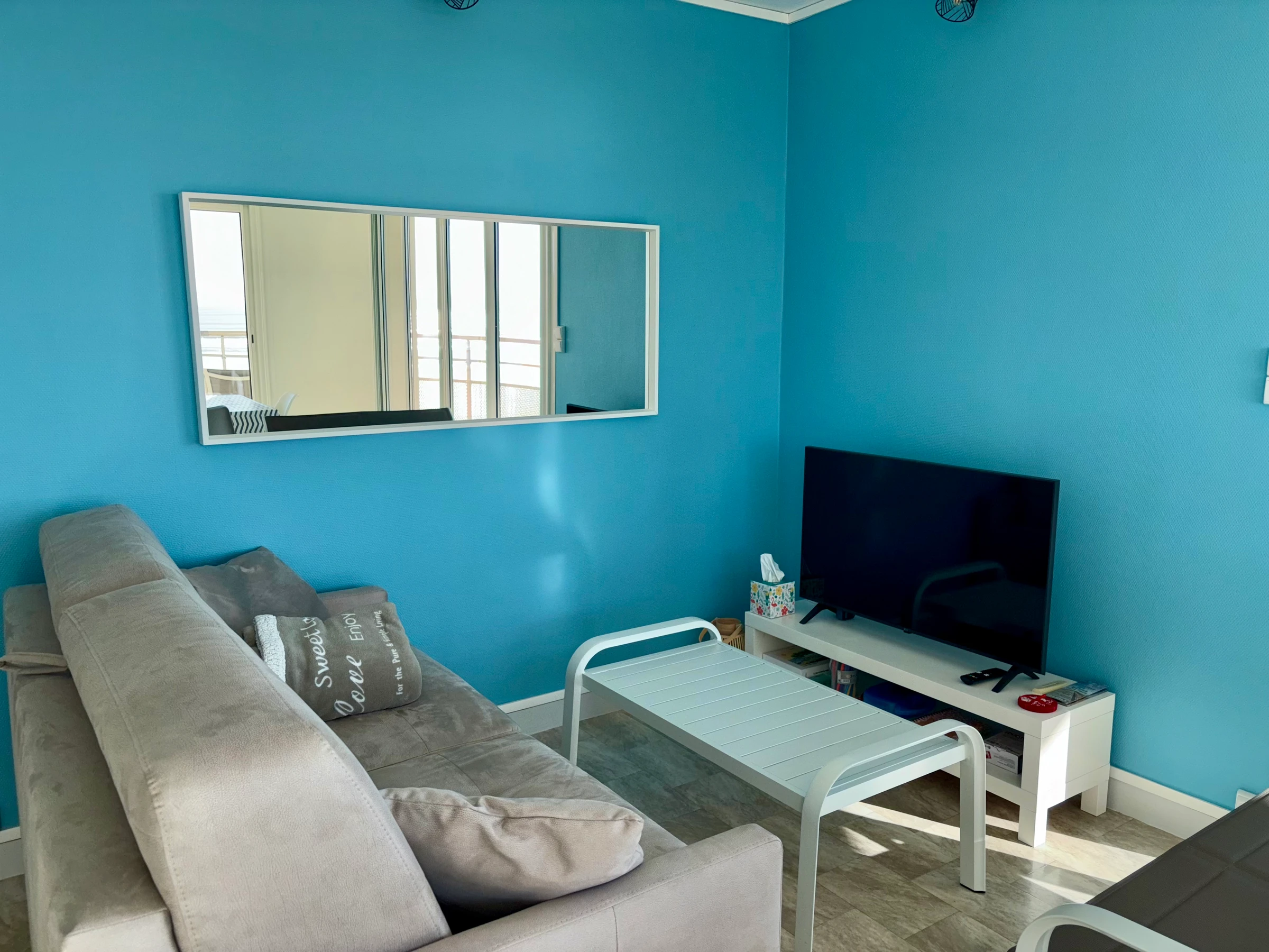 - espace dinatoire ( table et 6 chaises) avec vue sur l'océan et la plage, un canapé convertible 2 couchages (type rapido avec matelas le tout neuf)