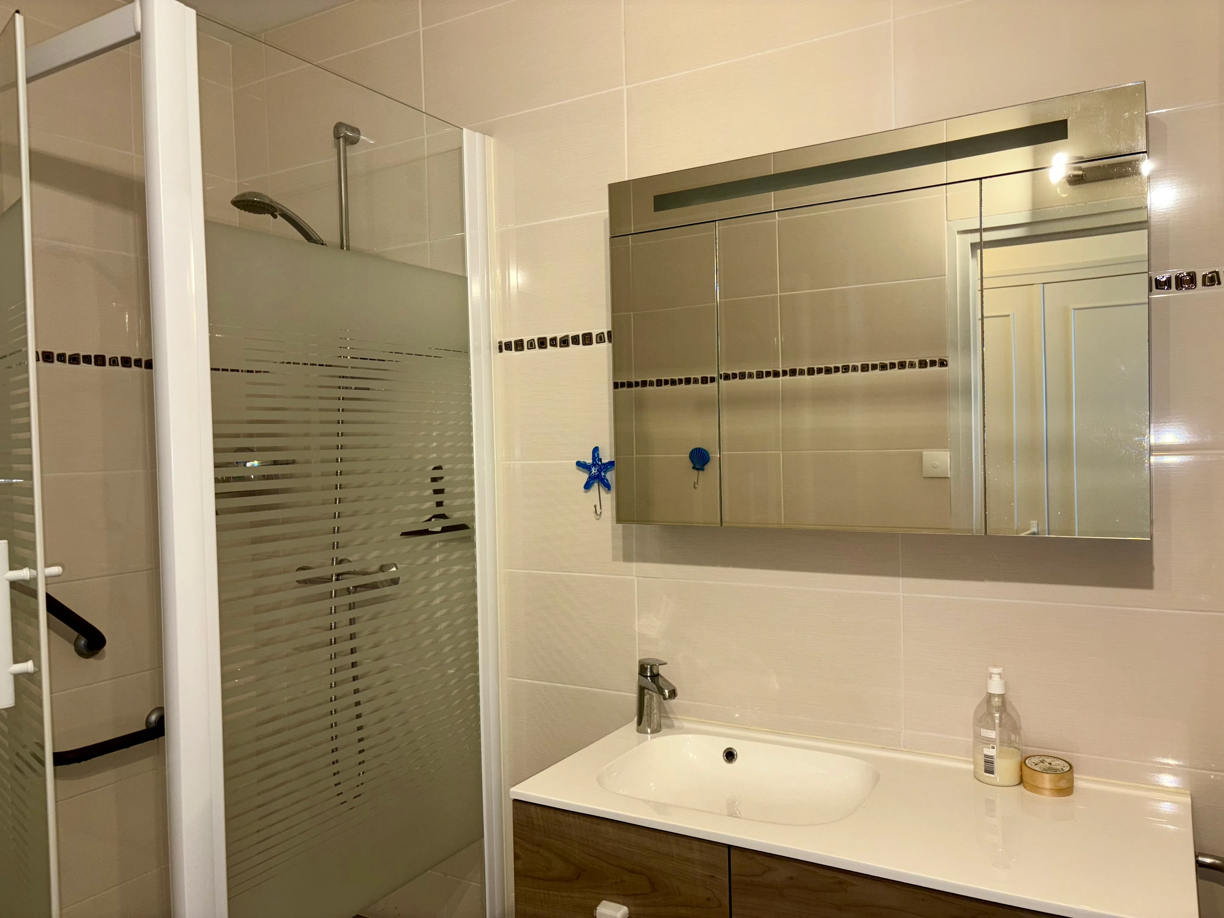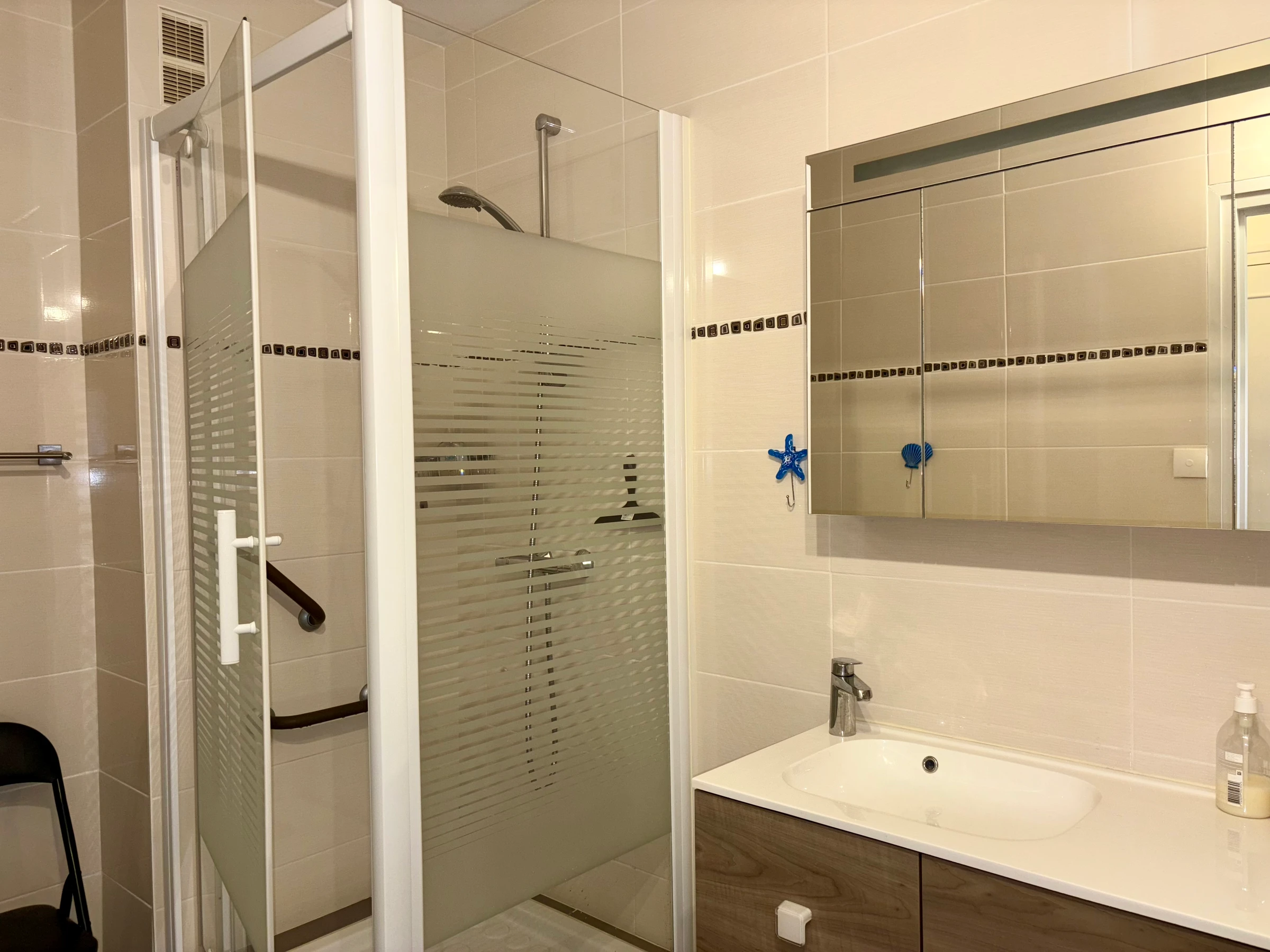 Grandes baies vitrées avec double vitrage et volets roulants électriques. Tout est neuf dans ce logement, avec des prestations de qualité.