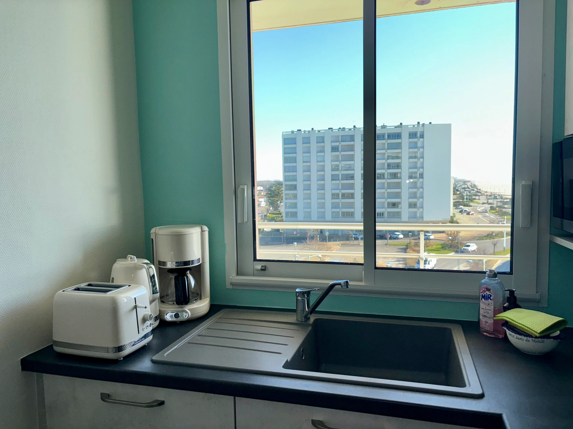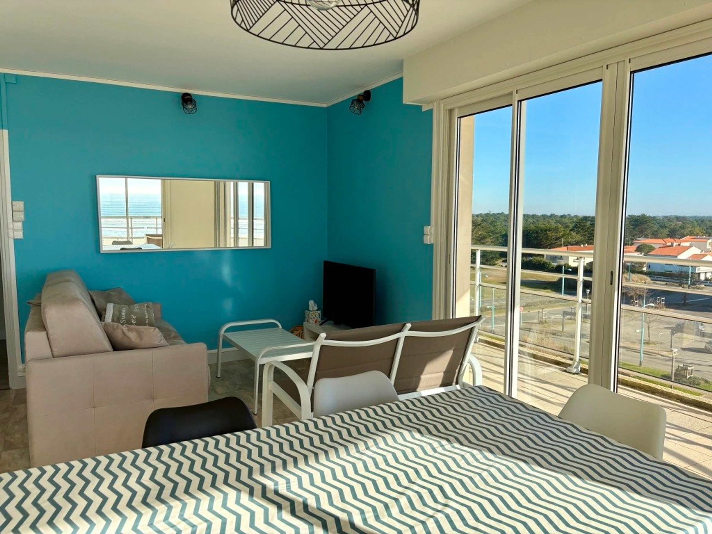 Vue impressionnante sur le large, l'ile d'Yeu et la grande plage de sable fin qui s'étend de St Jean de Monts à St Hilaire jusqu'à la cote de St Gilles Croix de vie, pour cet appartement de 6 personnes refait à neuf avec gout et confort, pour des vacances réussies en famille ou entre amis.