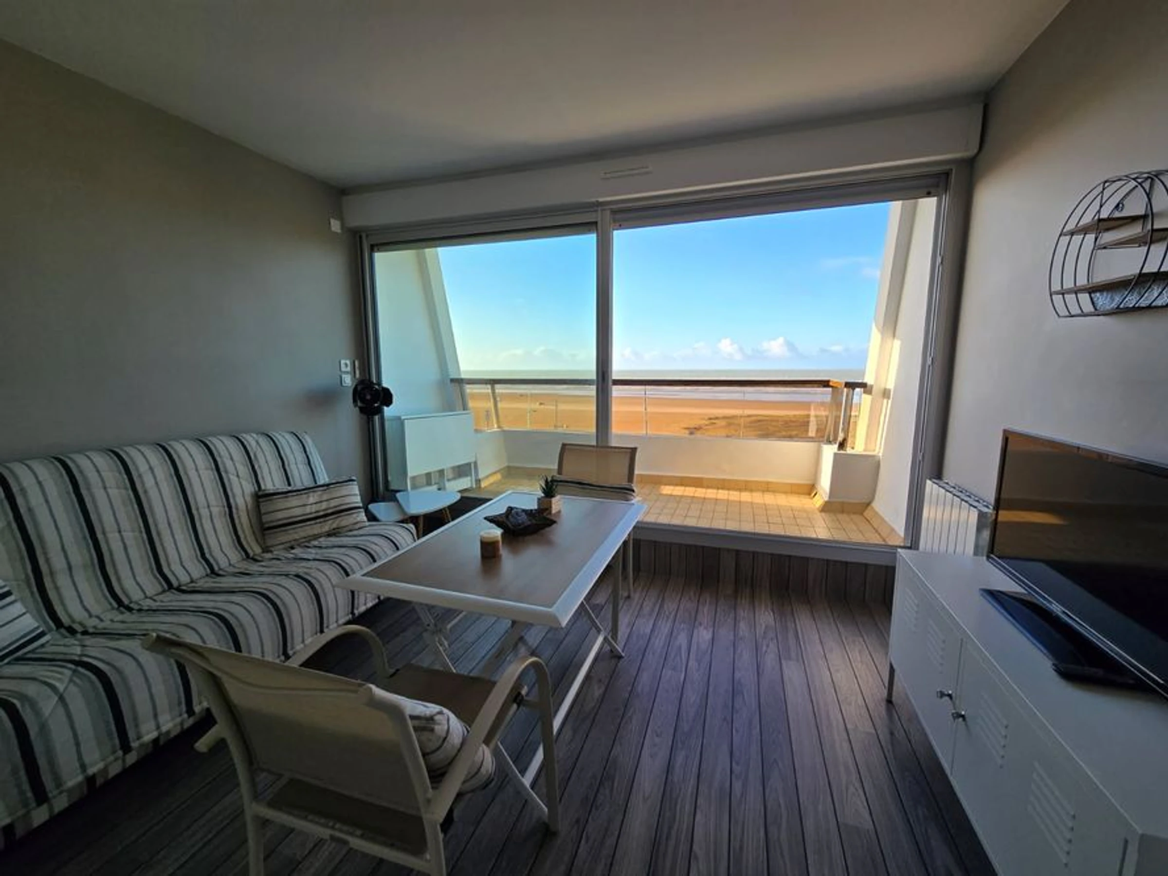 - PIECE DE VIE avec balcon face mer : 2 transats - 1 table/desserte pliante - store banne électrique