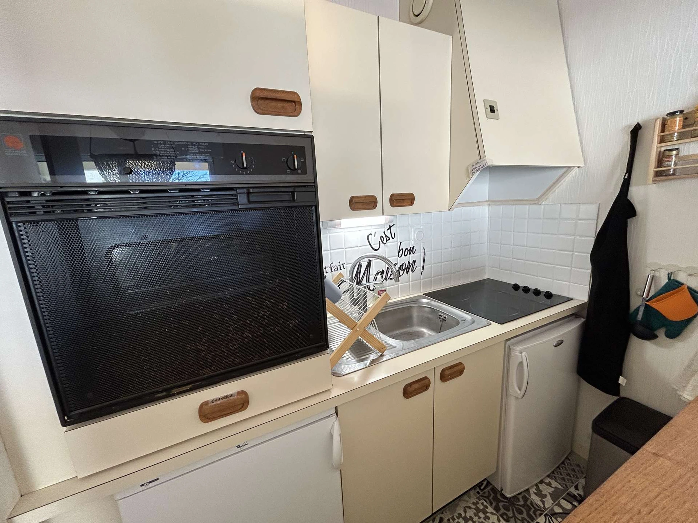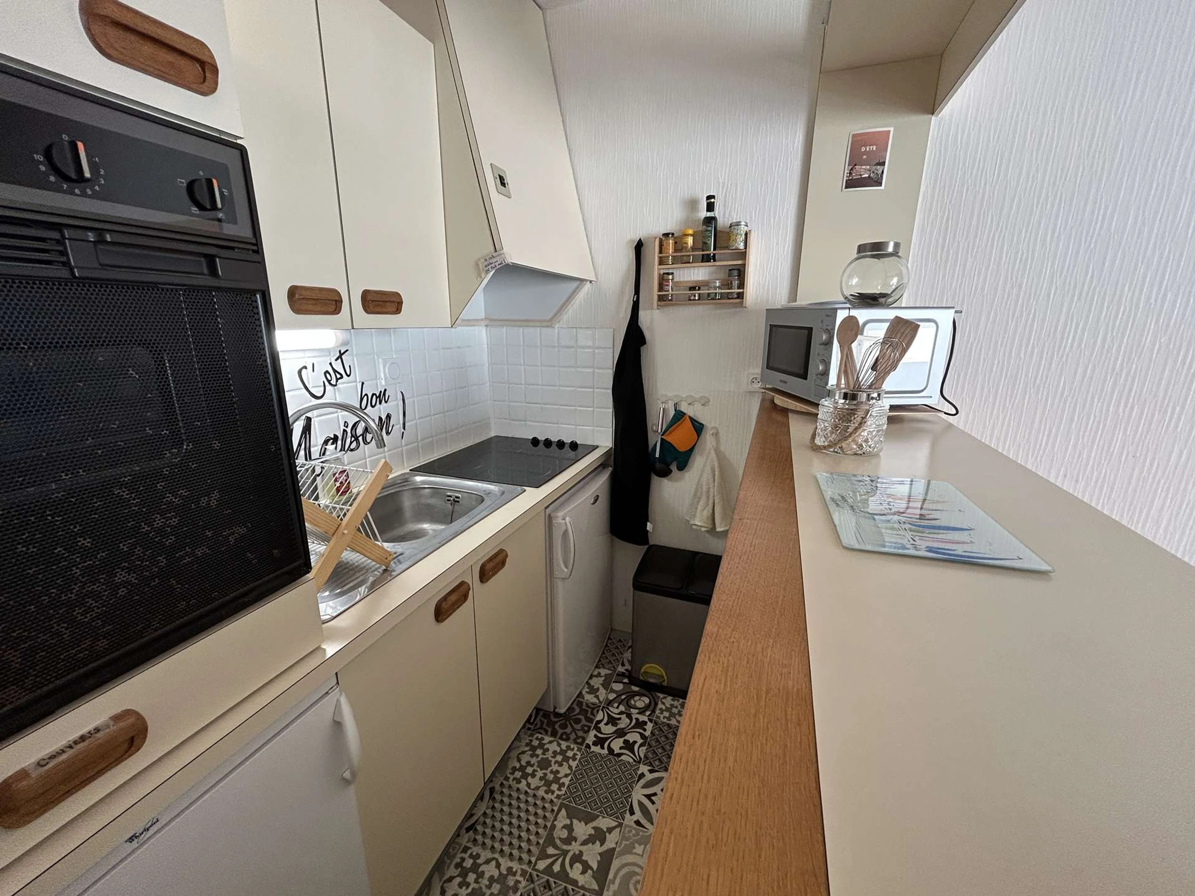 Situé au 1er étage avec ascenseur, cet appartement lumineux et fonctionnel comprend un séjour convivial avec canapé convertible clic-clac, mobilier et télévision, un coin cuisine entièrement équipé (four électrique, micro-ondes, 2 réfrigérateurs table top, 4 plaques vitro), une chambre avec 1 lit double 140, une alcôve avec fenêtre comprenant 1 canapé convertible BZ convertible, ainsi qu'une salle d'eau avec lave-linge et des WC indépendants.