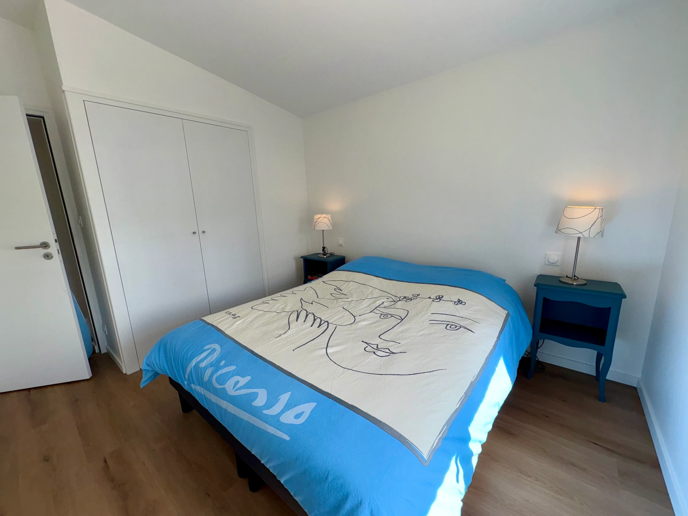 > Chambre N°2 : 1 lit double 160*200, 2 couchages lampes, placard et fenêtre.