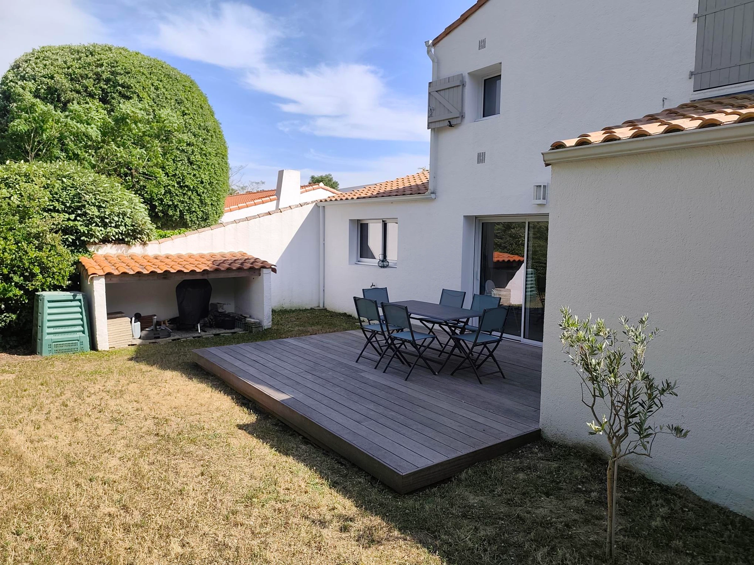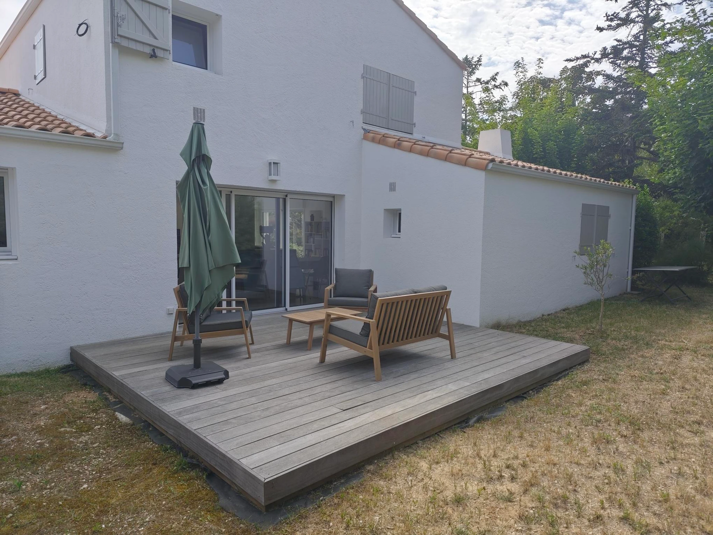 Terrasse exposition sud/ouest : table et transat