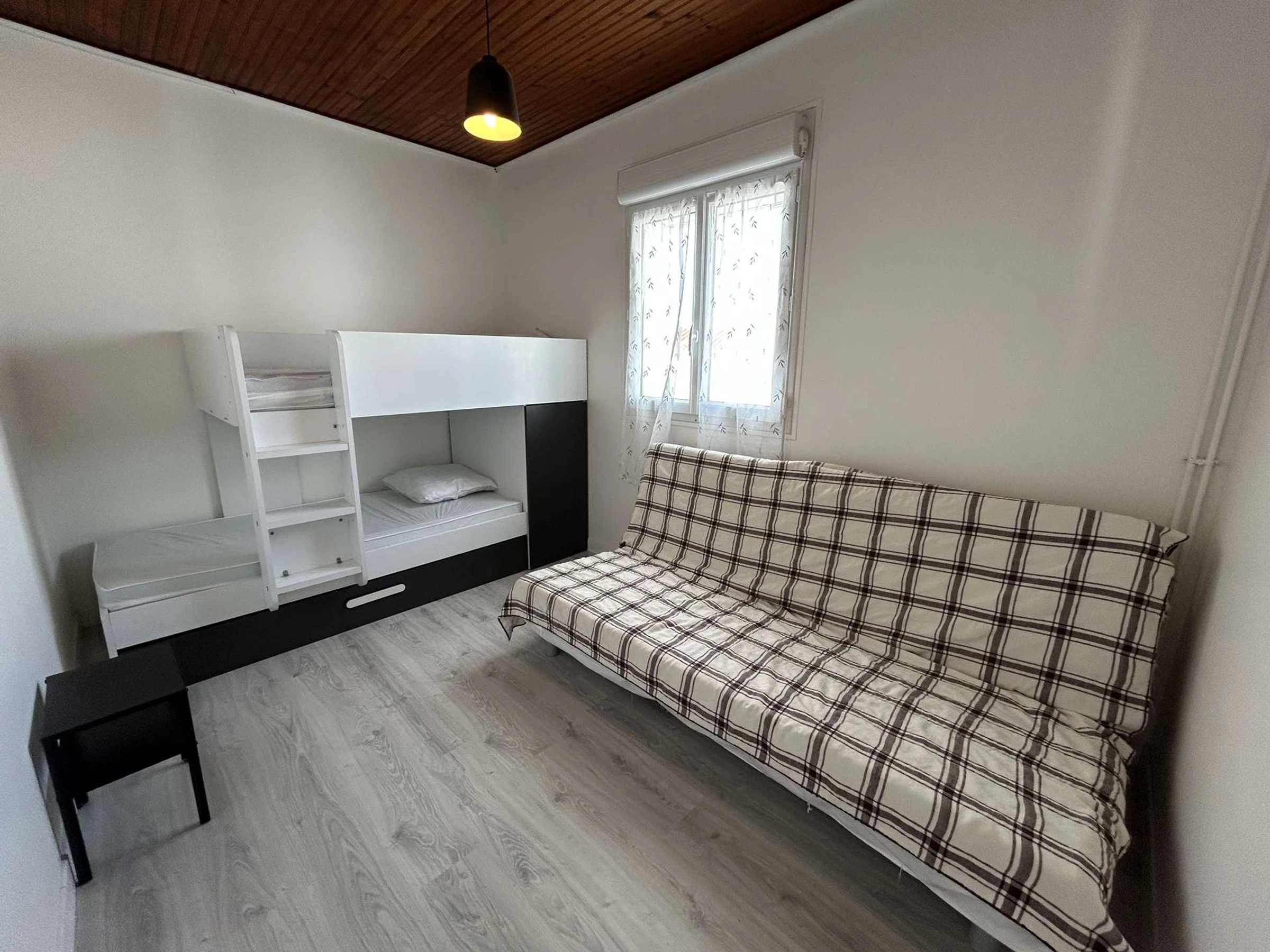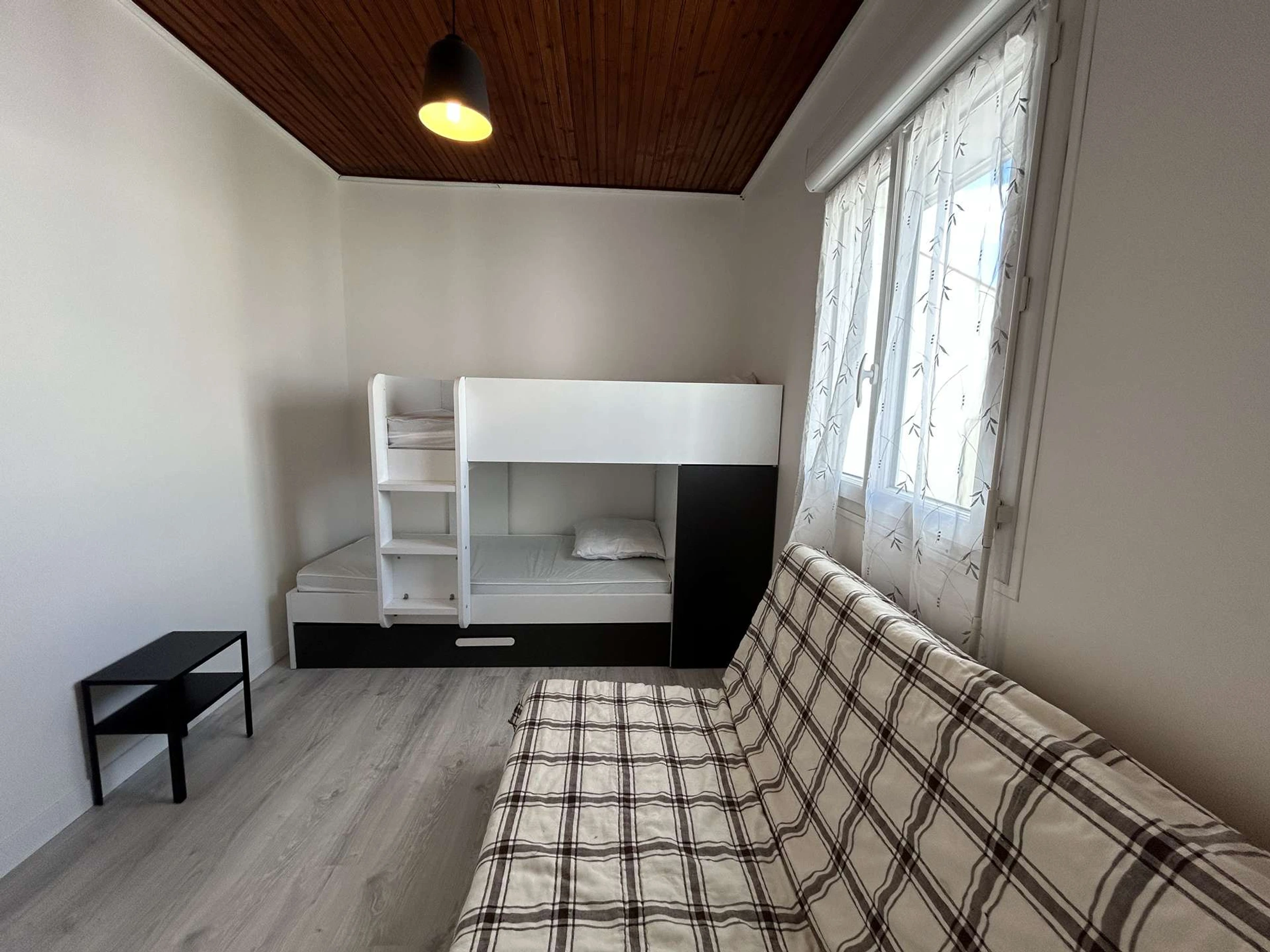Cette agréable et spacieuse maison de vacances offre un grand séjour/salon avec canapé et télévision, une cuisine équipée et aménagée (four électrique, micro-ondes, réfrigérateur/congélateur, 4 feux induction, lave-vaisselle), terrasse/jardinet arrière avec salon de jardin et barbecue, une chambre avec un lit double 160, une 2ème chambre avec un lit double 140, une 3ème chambre avec 2 lits superposés 90 et 1 canapé lit pour un couchage, une salle de bains, un wc indépendant.