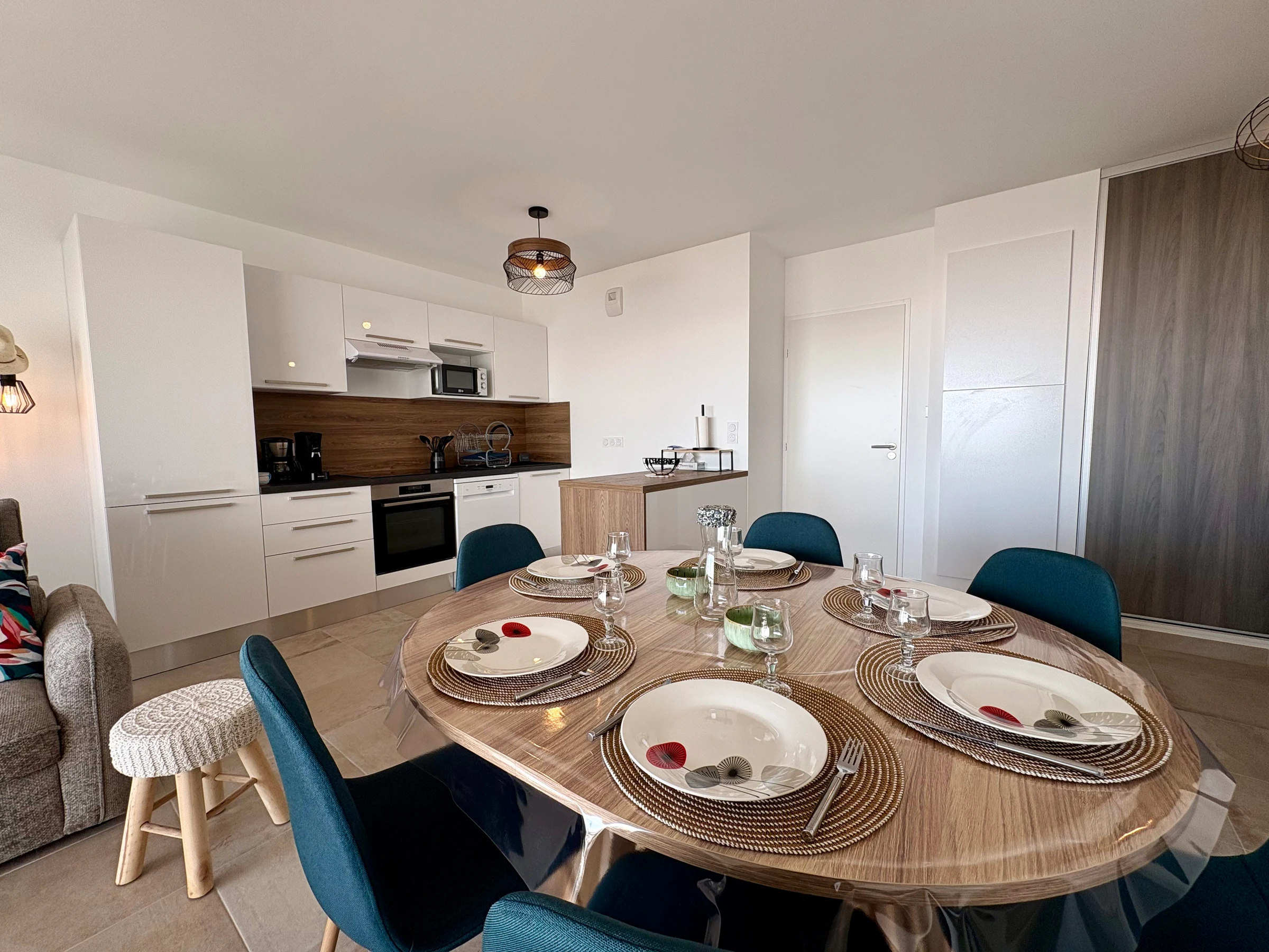Envie de s'évader au bord de l'océan ? Cet appartement neuf, lumineux et exposé sud-ouest offre un cadre idéal pour des vacances en famille ou entre amis. Avec une capacité de 6 personnes, il dispose de 2 chambres confortables et de deux balcons pour profiter de la vue face mer et des couchers de soleil.