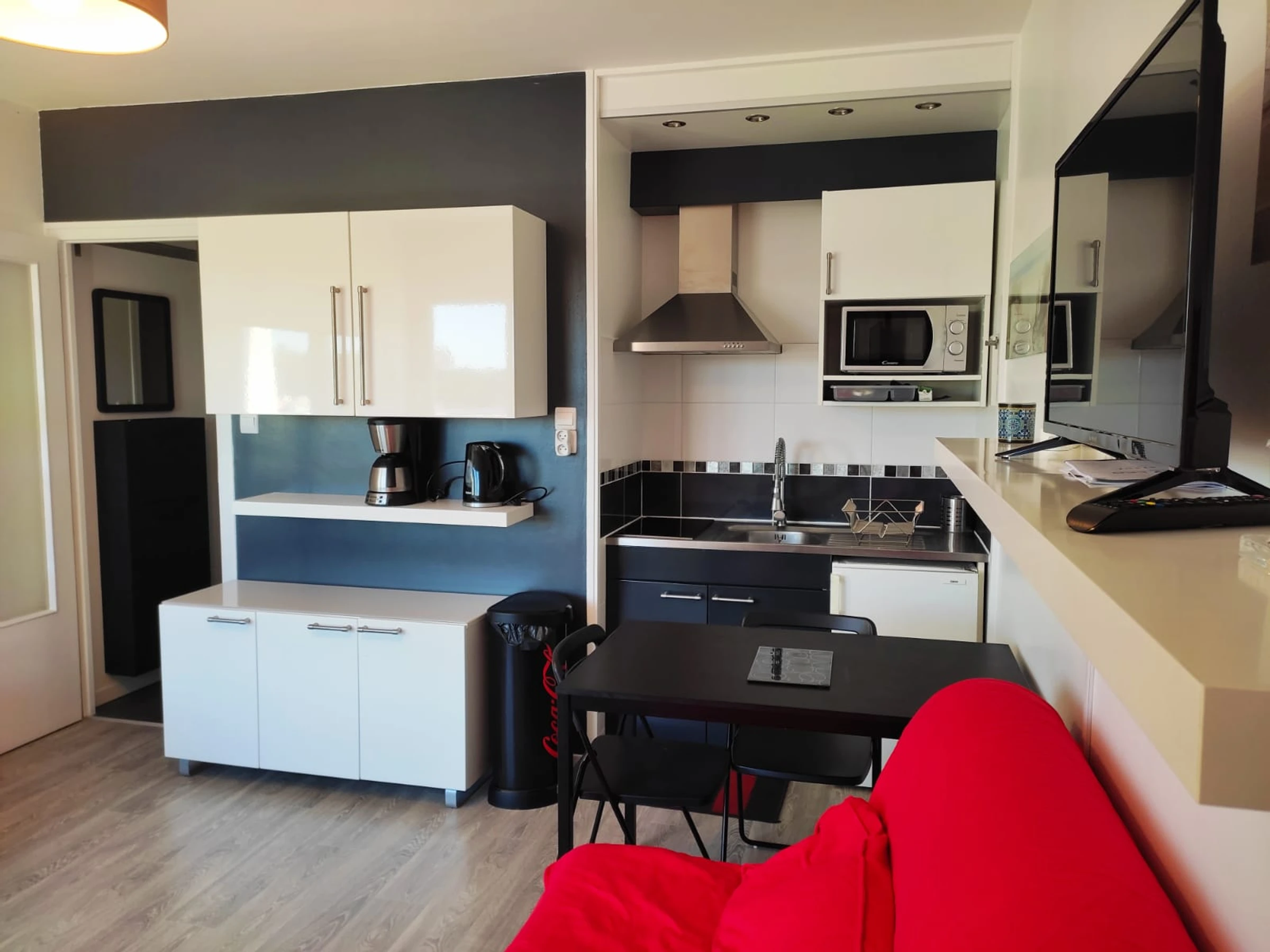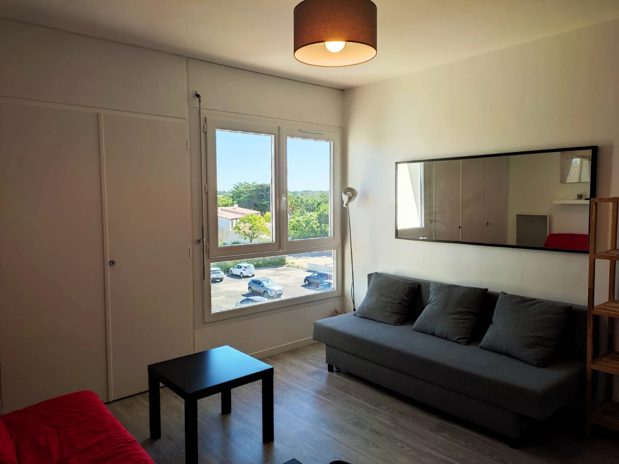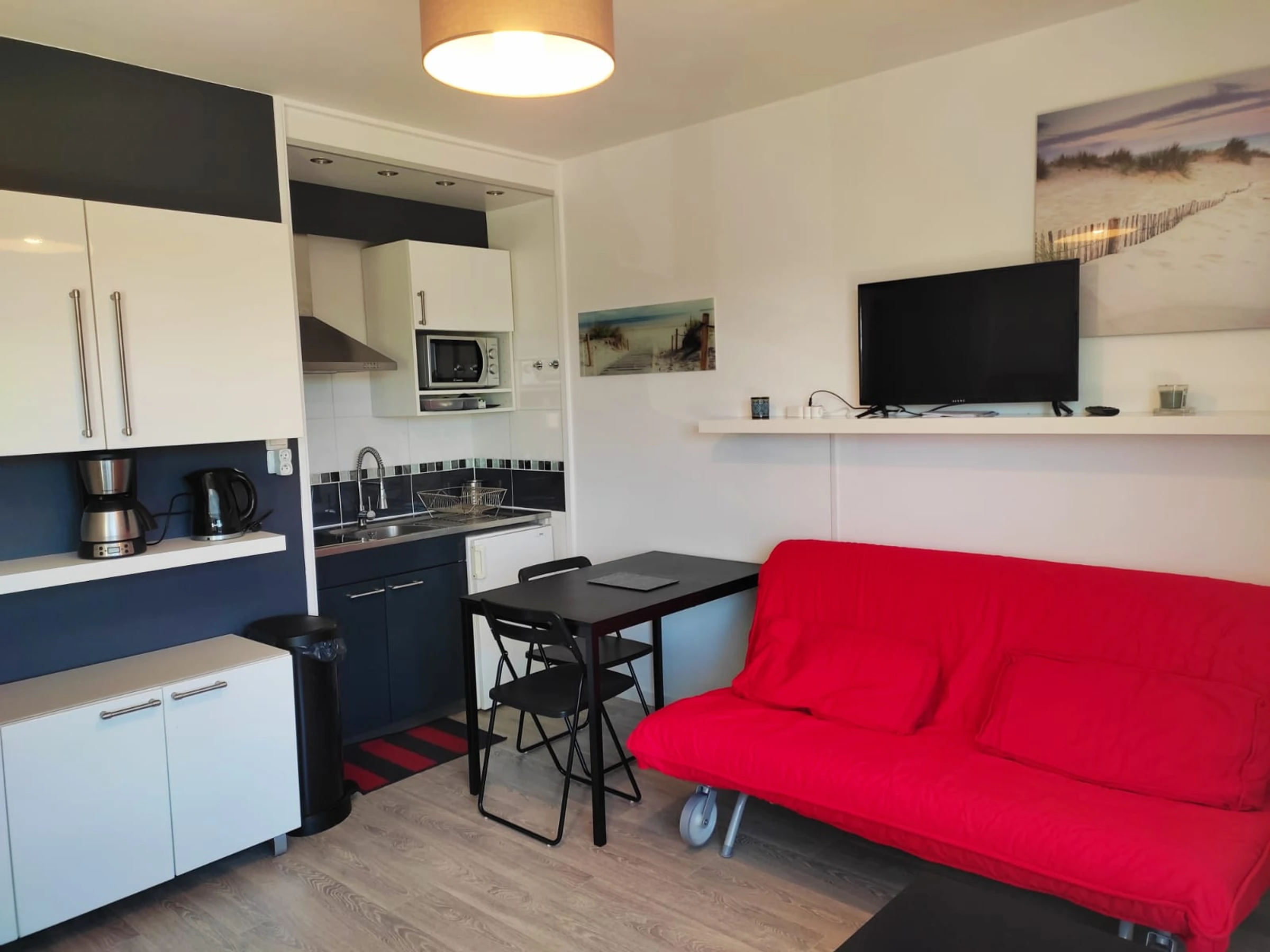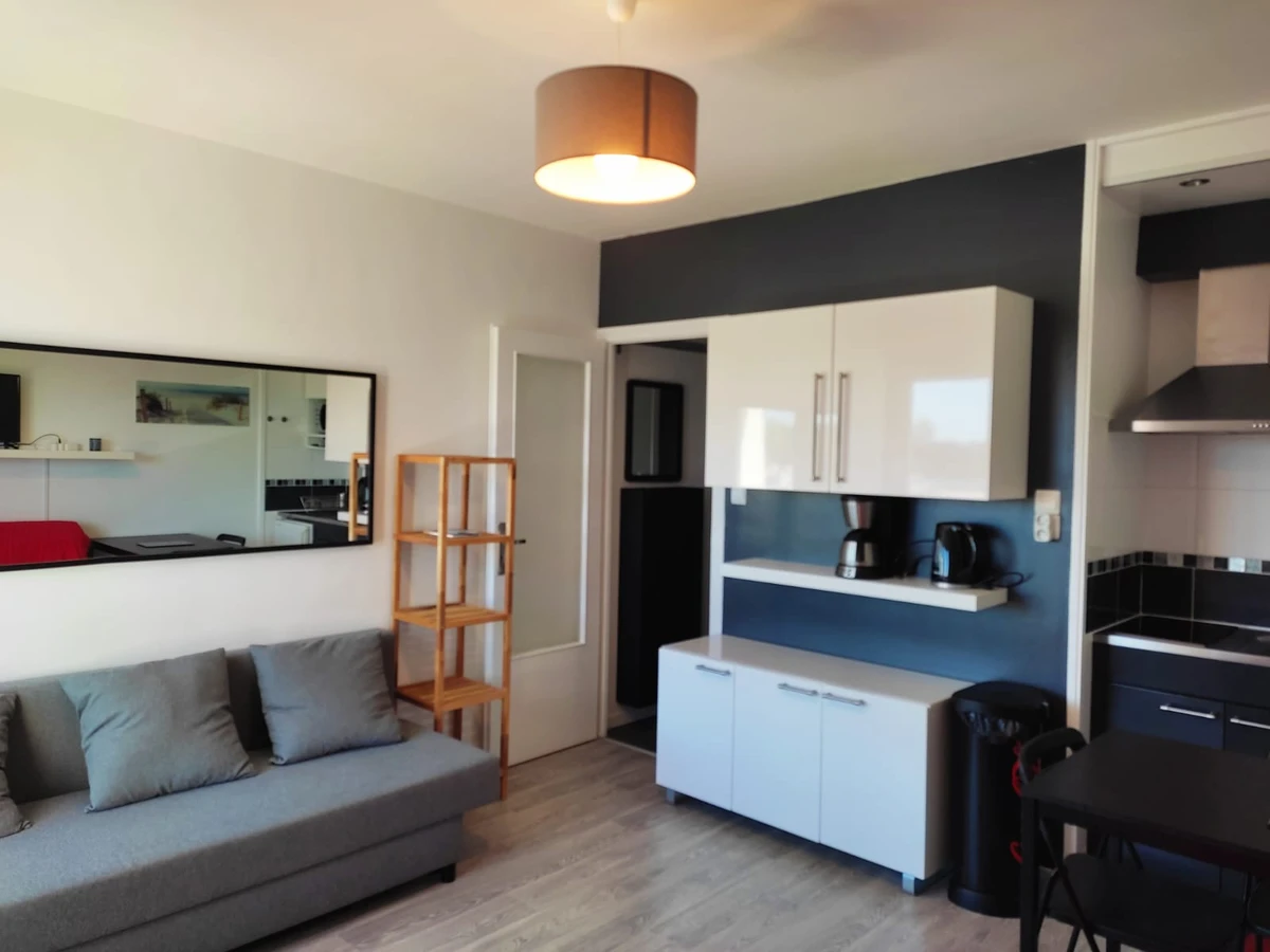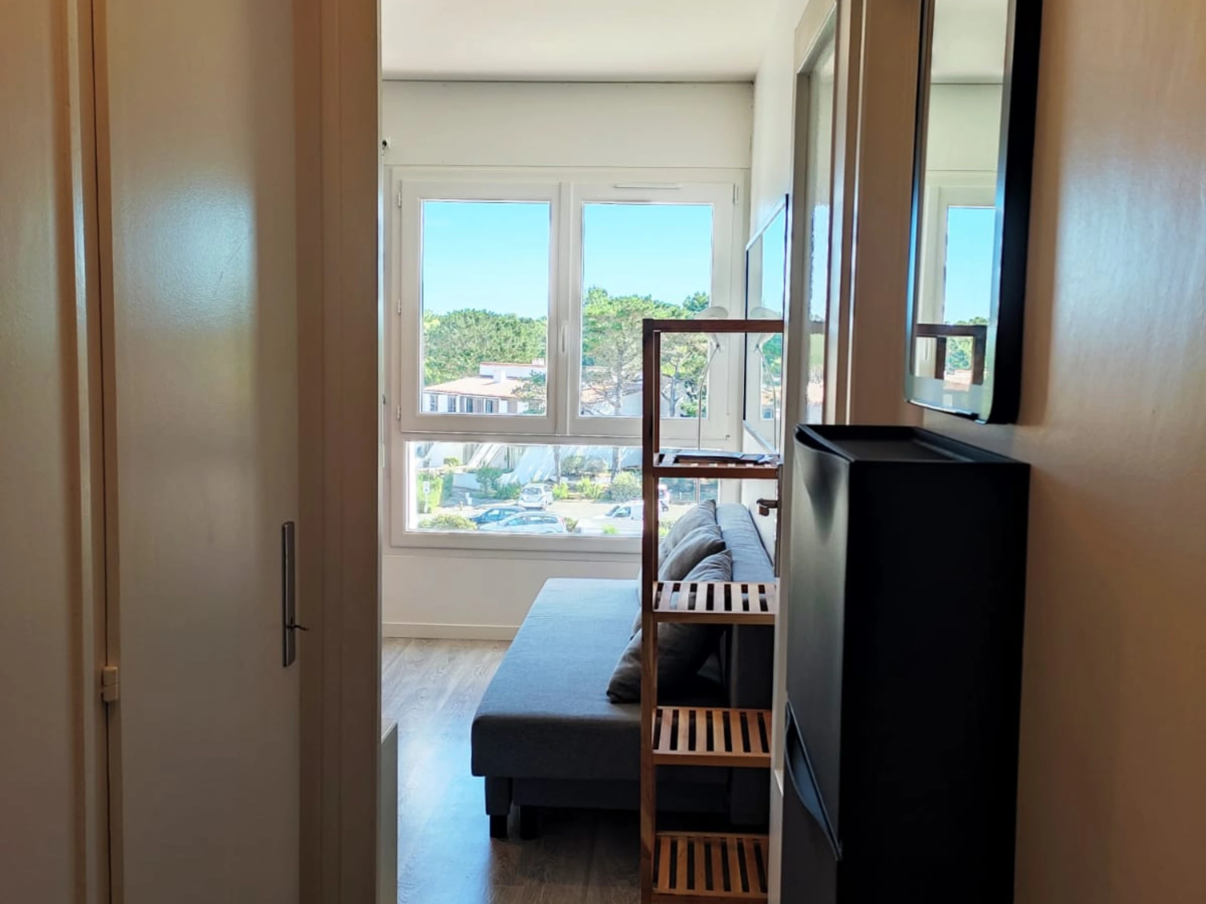 A St Jean de Monts , dans une résidence située en front de mer au 2 ème étage sans ascenseur, charmant studio tout confort offrant une entrée , un séjour avec deux canapés convertibles soit 4 couchages, une kitchenette équipée et aménagée , une salle d'eau avec WC.Place de parking privative.
